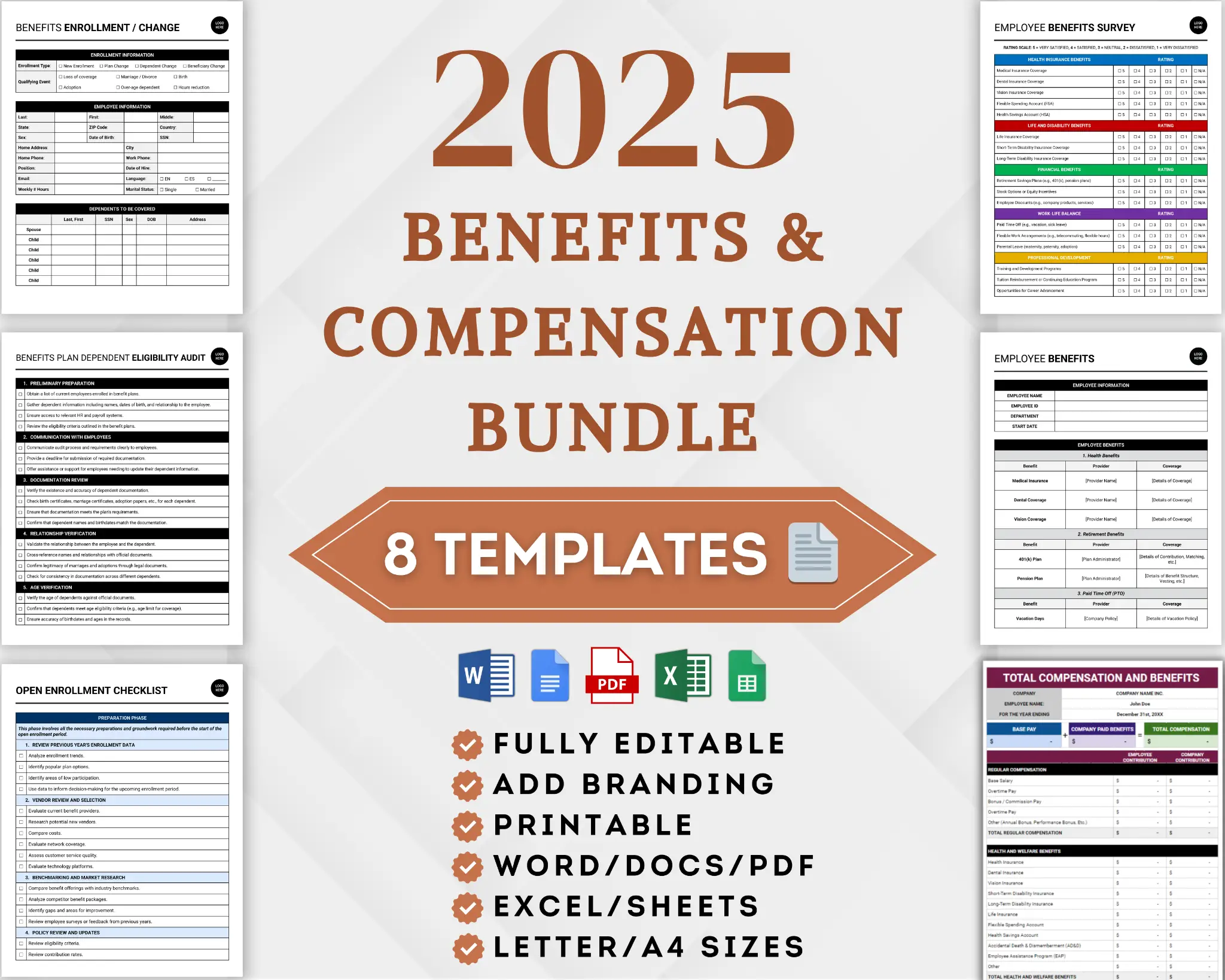 Enhance employee satisfaction with this Benefits & Compensation Bundle. Includes templates for enrollment, assessment, and a bonus total compensation statement.