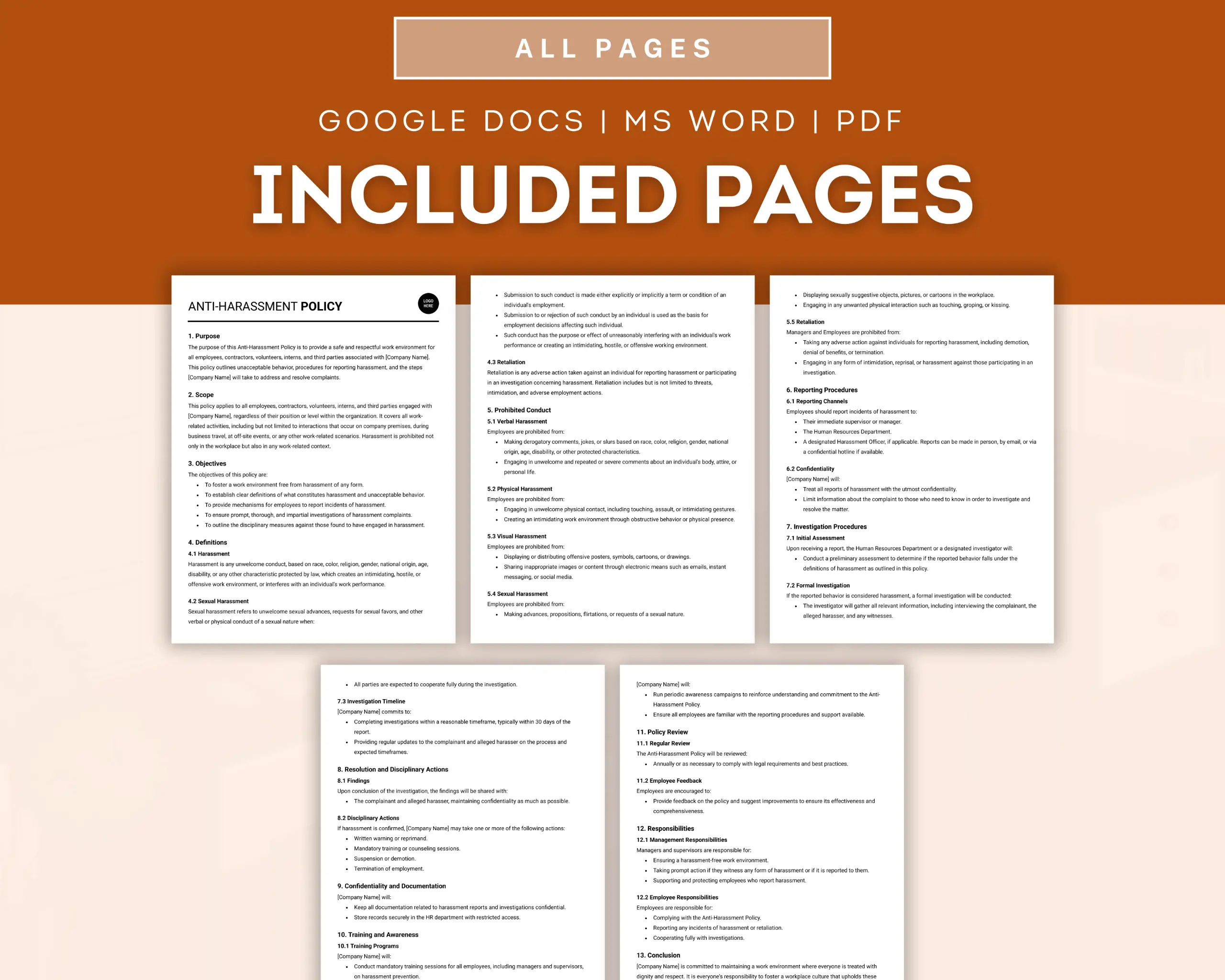 This Anti-Harassment Policy template provides guidelines to prevent and address harassment in the workplace. It includes reporting procedures, disciplinary actions, and support resources. Foster a respectful and safe work environment with this policy.