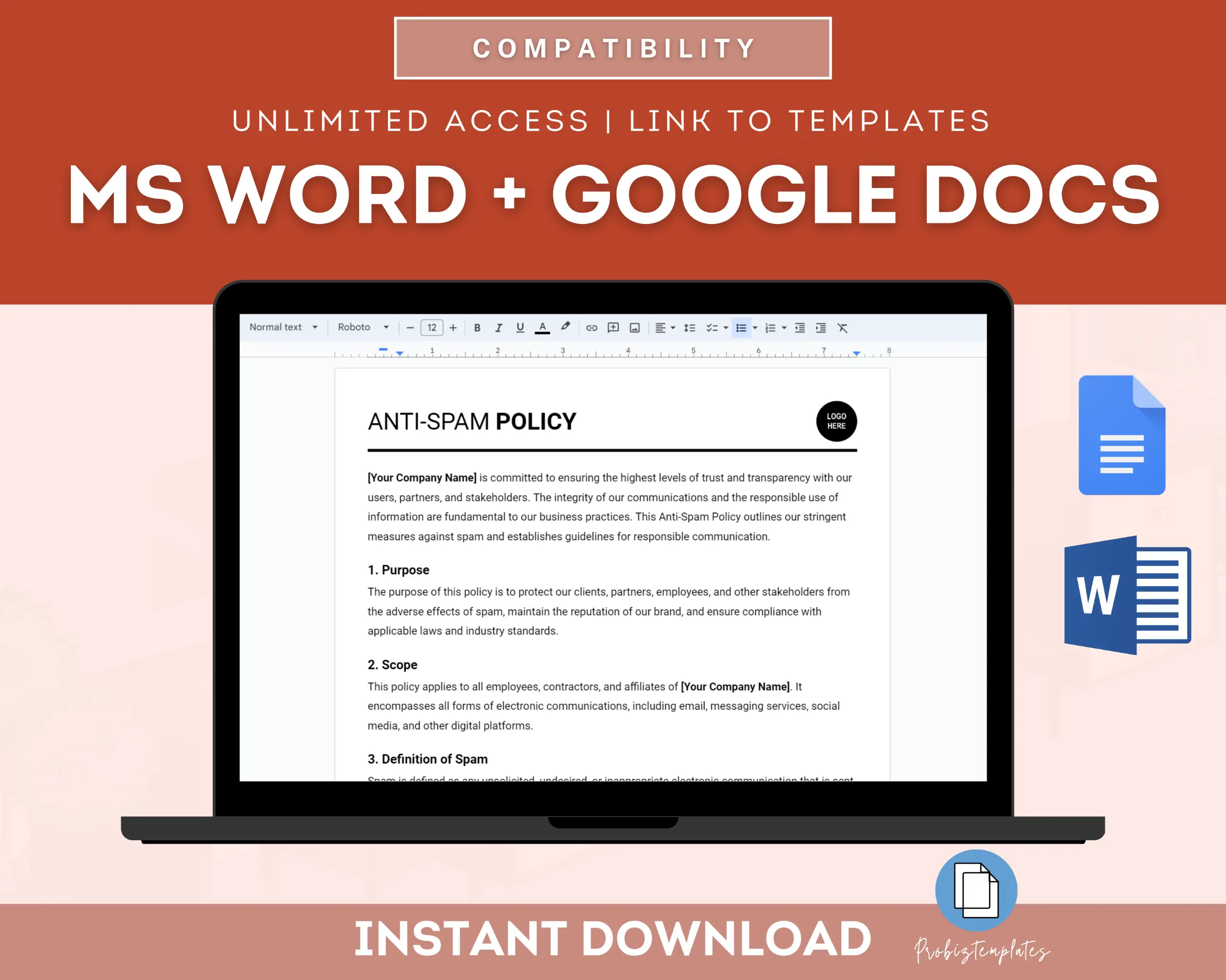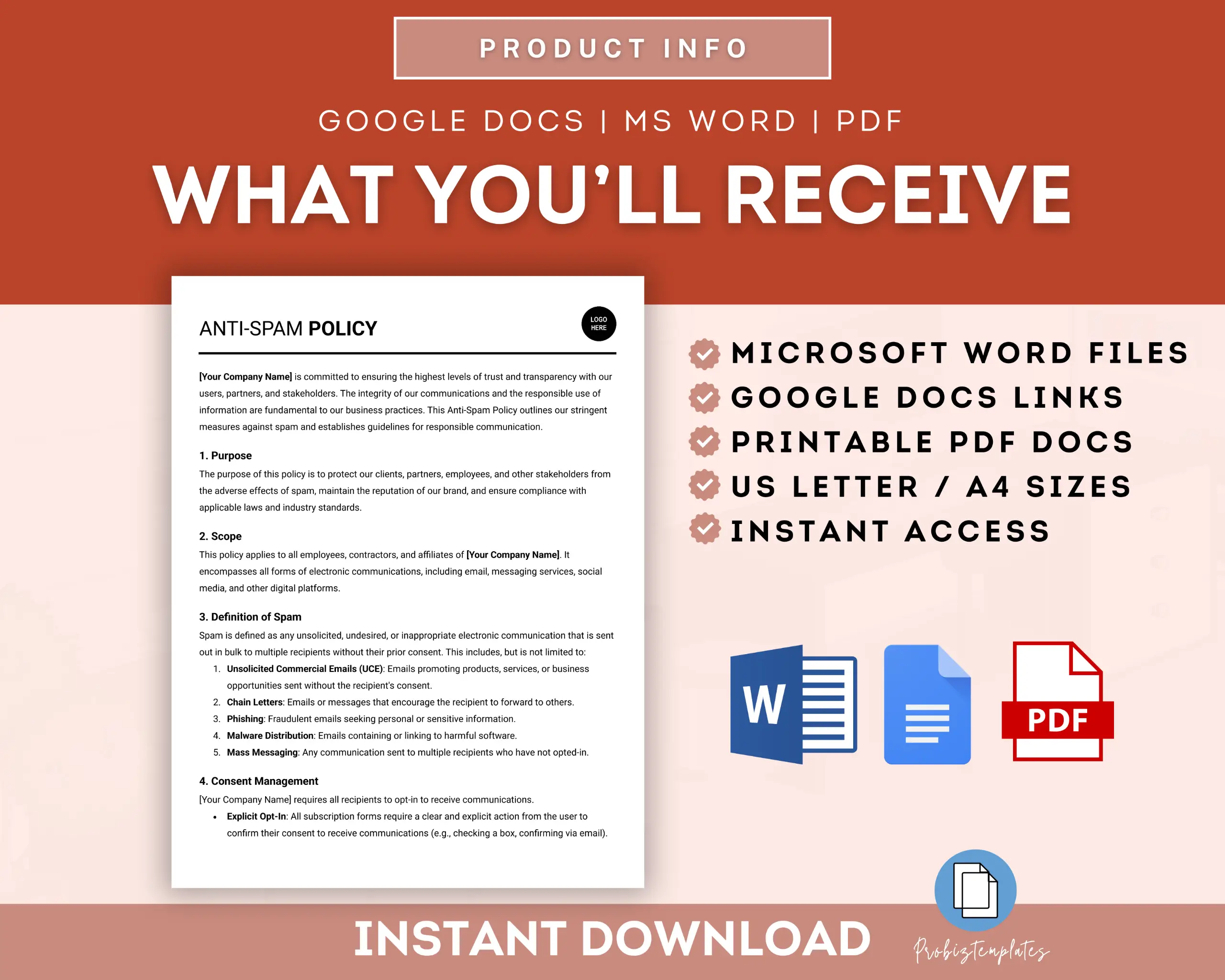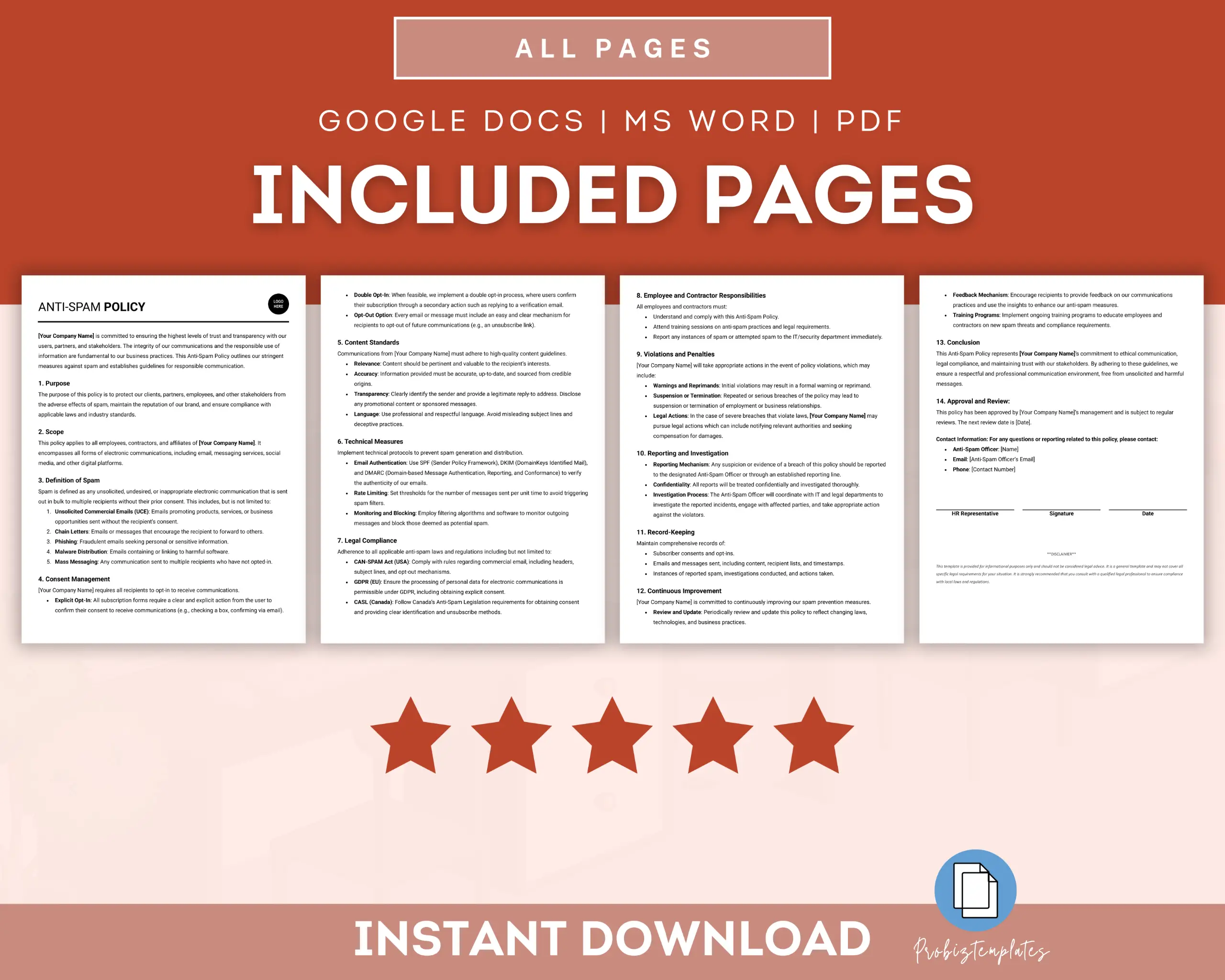 This Anti-Spam Policy template provides guidelines for preventing spam in company communications. It includes compliance with regulations, reporting procedures, and best practices for email marketing. Maintain professional communication standards and avoid legal issues with this policy.