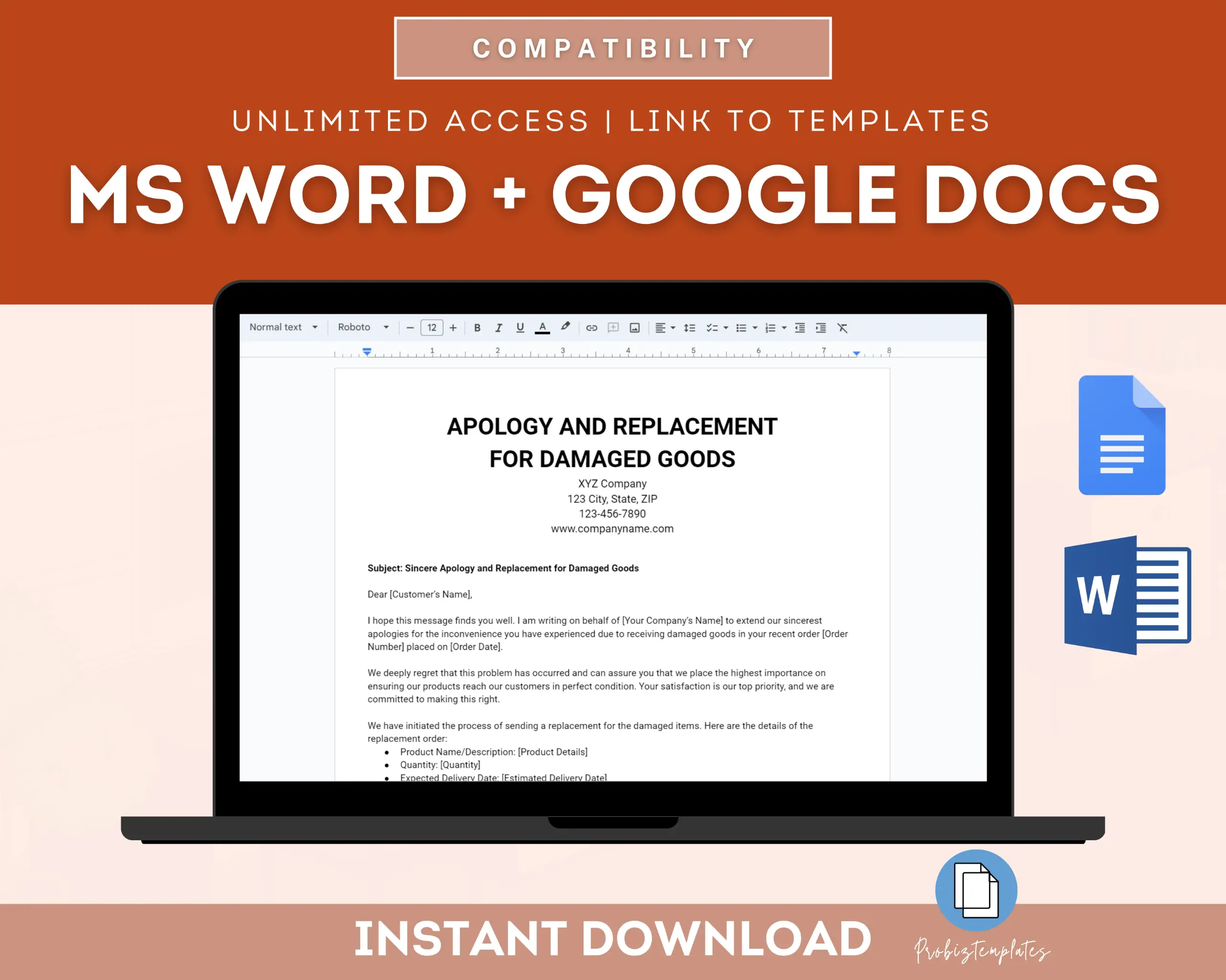 📄 Apology & Replacement of Damaged Goods Letter Template