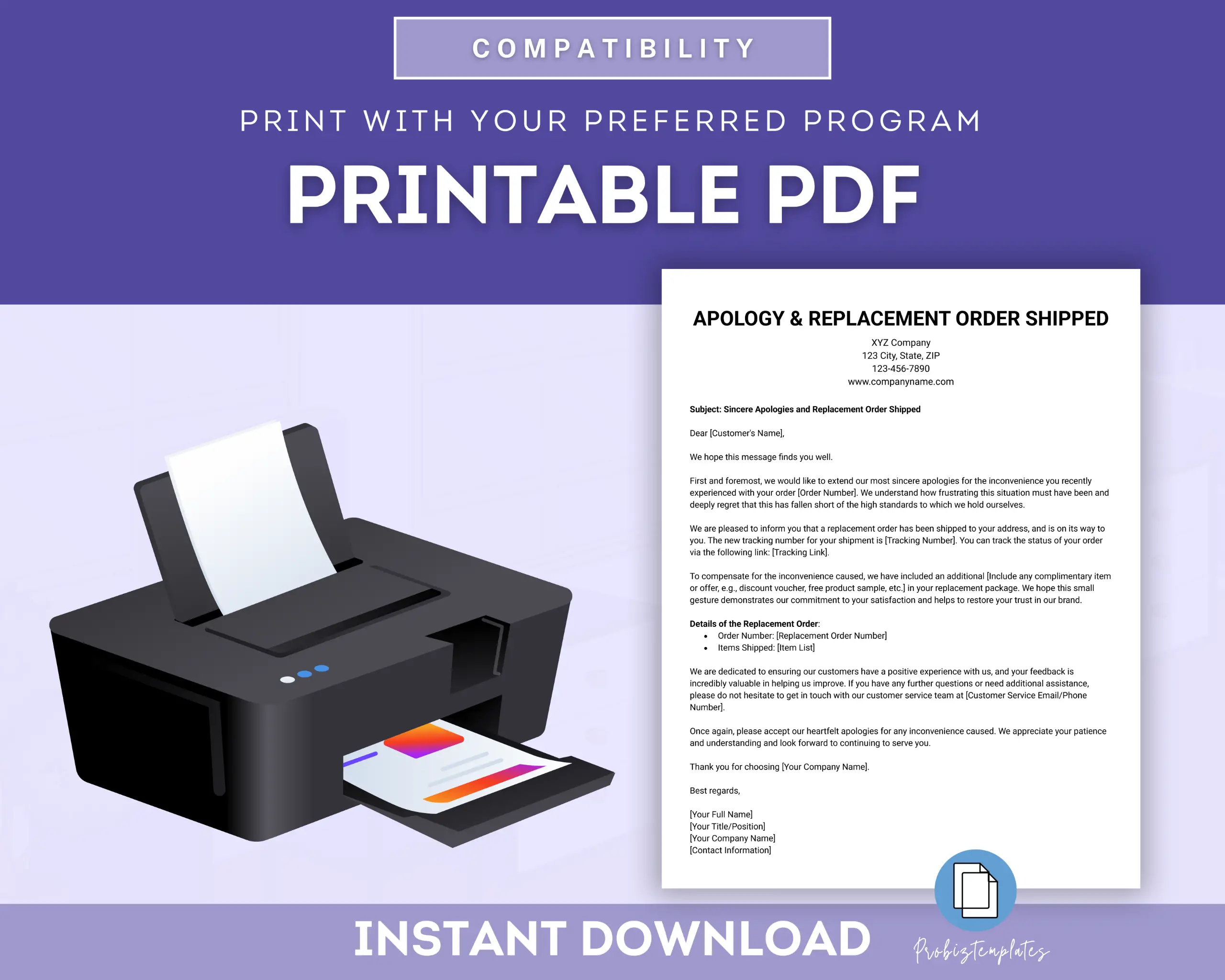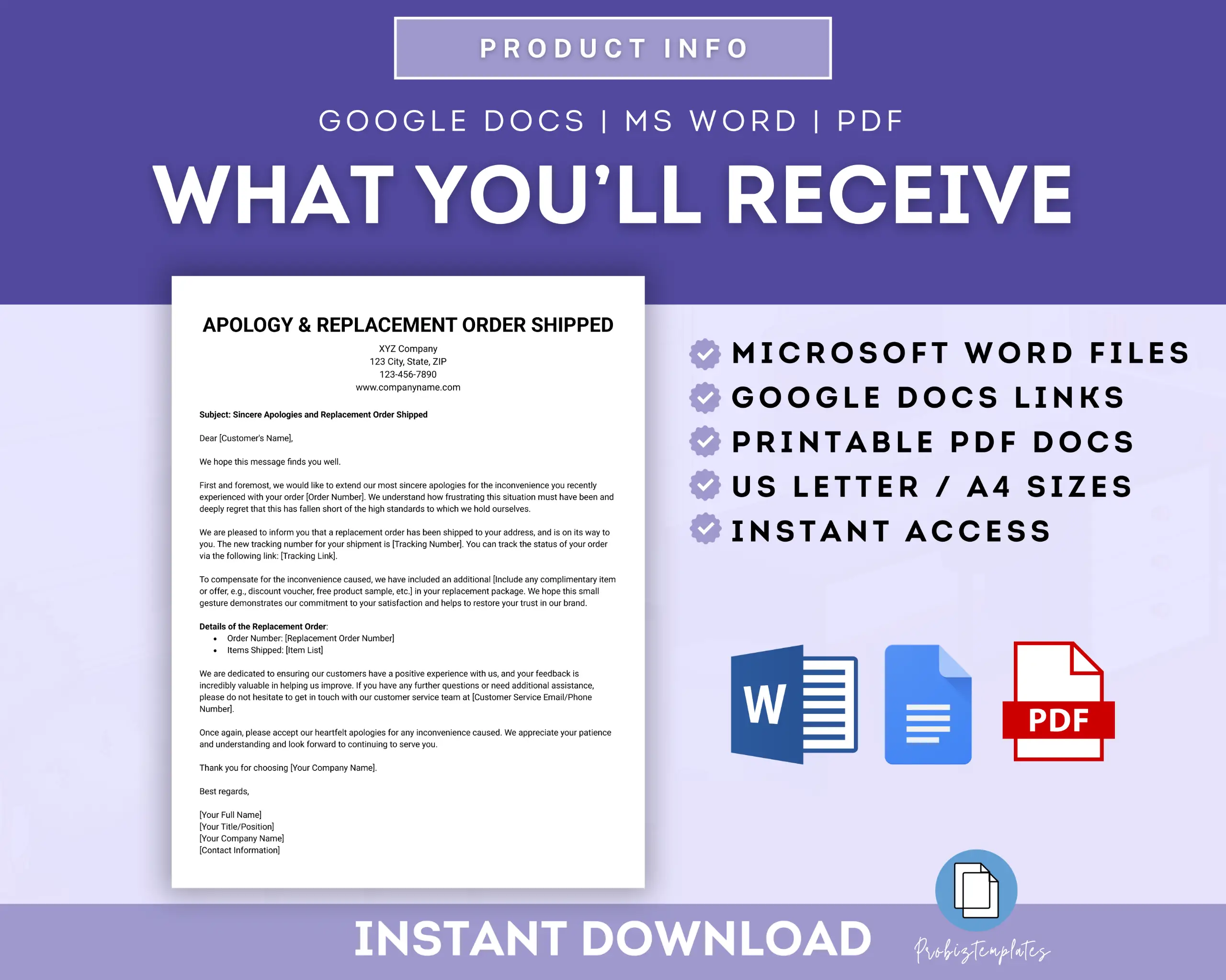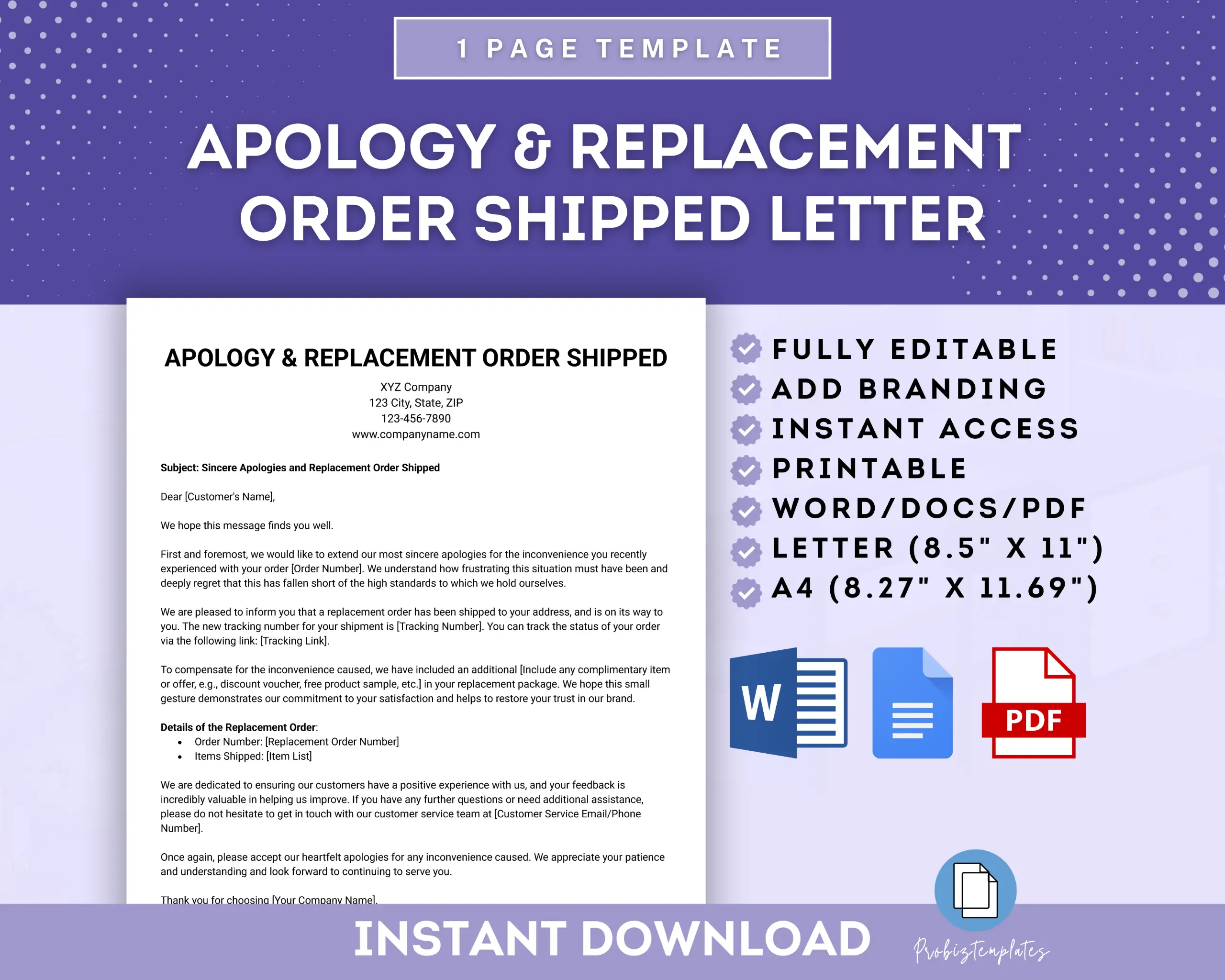 This letter helps apologize for any inconvenience and confirms the shipment of a replacement order. It aims to reassure the customer and maintain a positive relationship. Address customer concerns promptly with this apology letter.