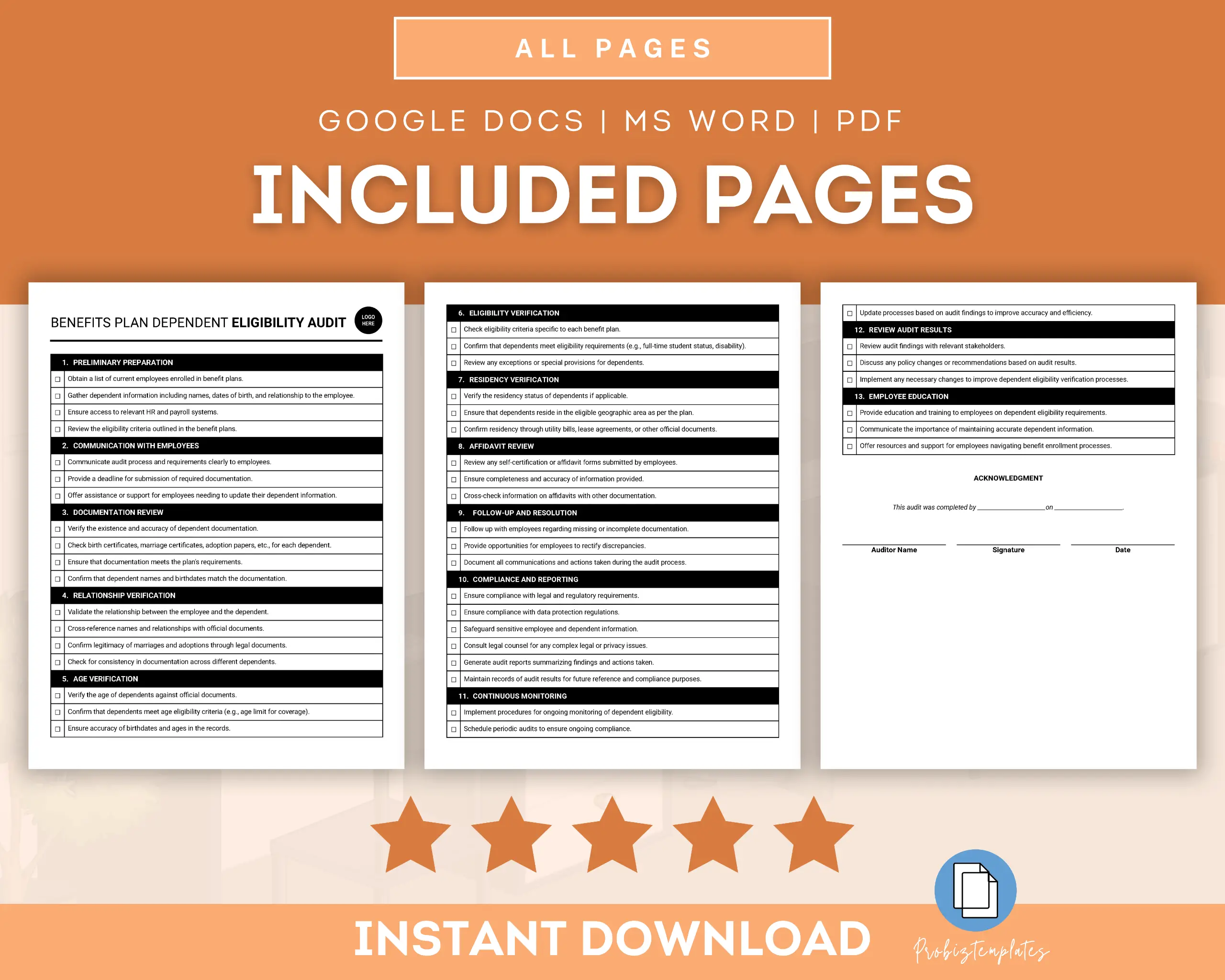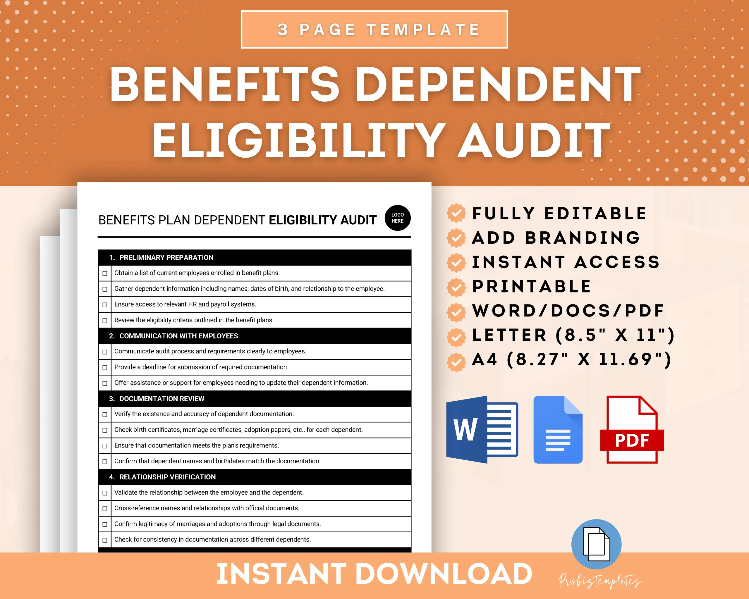 This Benefits Plan Dependent Eligibility Audit Checklist is designed to assist in verifying the eligibility of dependents enrolled in your organization’s benefits plan. This checklist helps ensure compliance with eligibility guidelines and assists in identifying any discrepancies or inaccuracies in dependent enrollments, facilitating the maintenance of an accurate and cost-effective benefits program.
