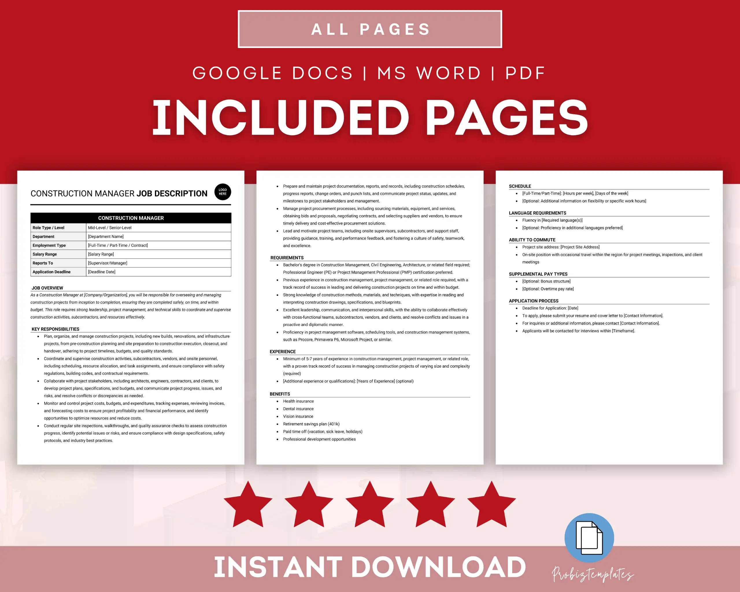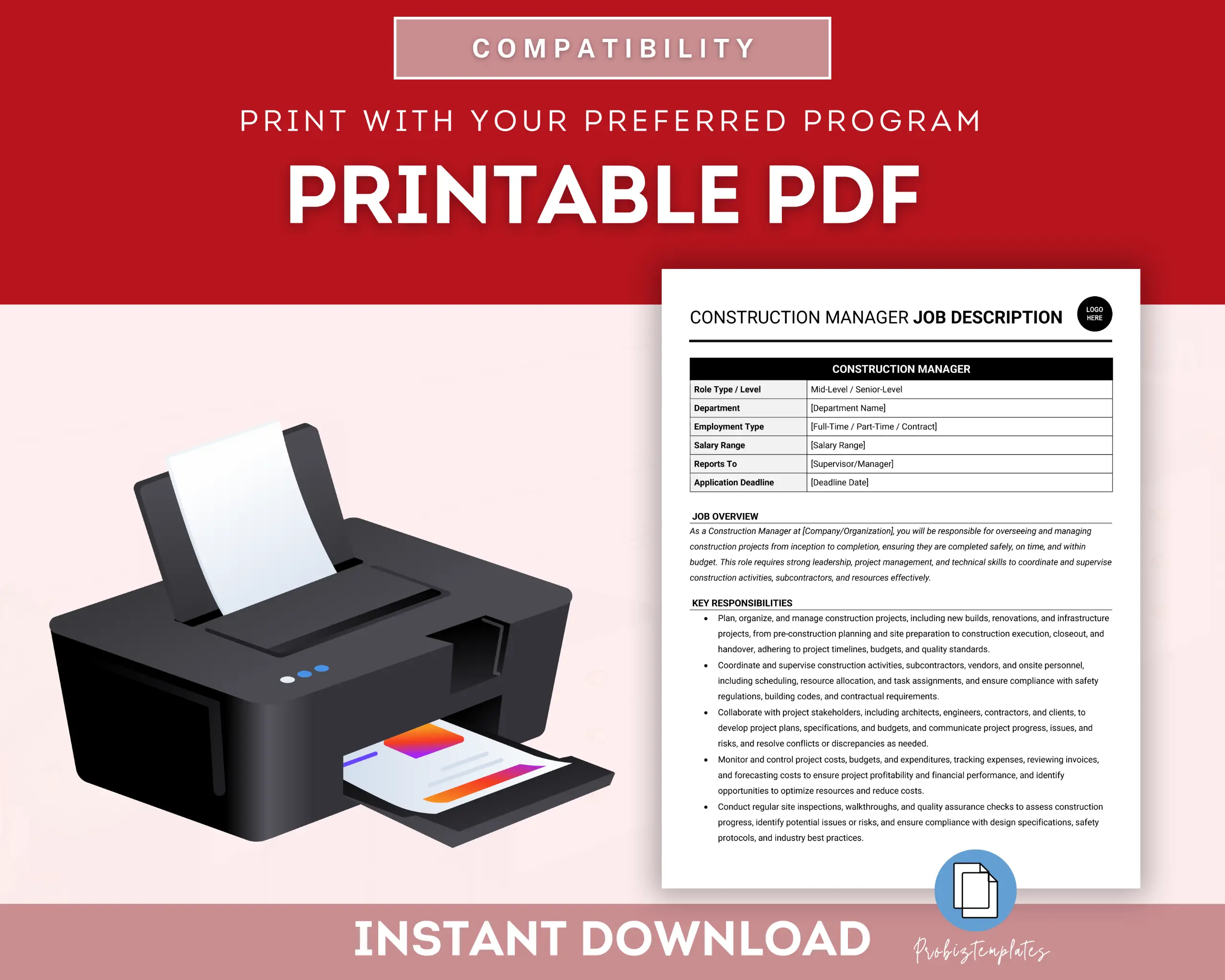 Construction Manager Job Description Template
