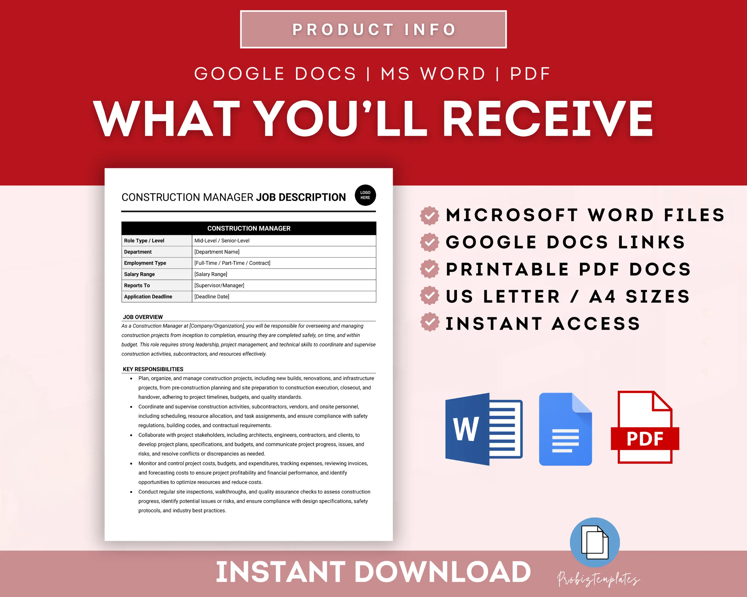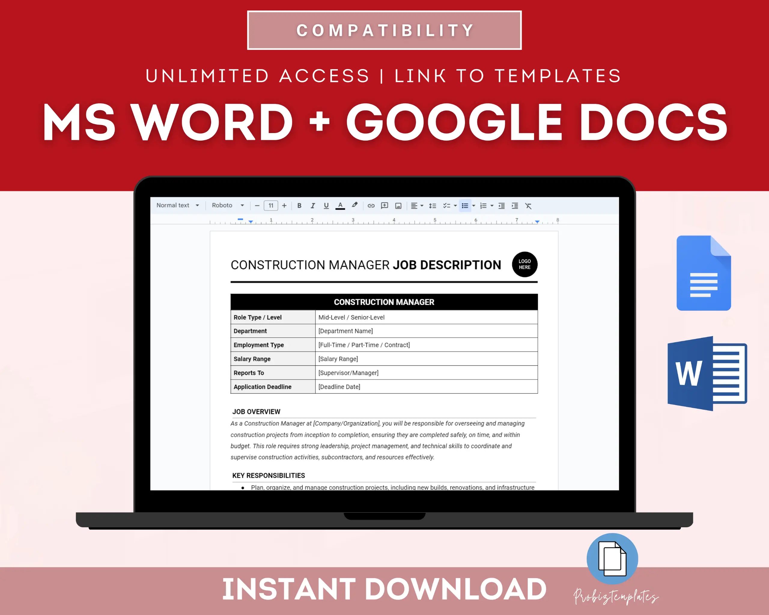 • Fully editable in Google Docs OR Microsoft Word
