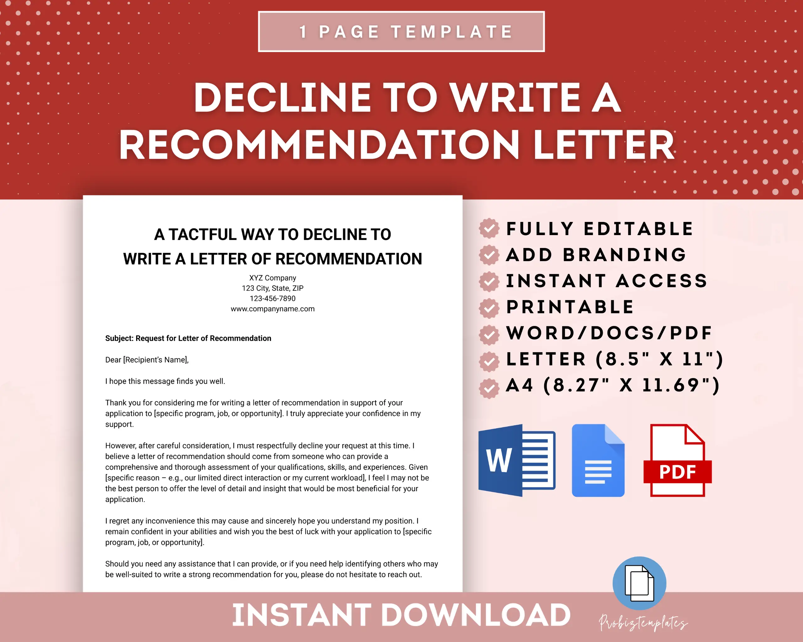 - Fully editable in Google Docs OR Microsoft Word