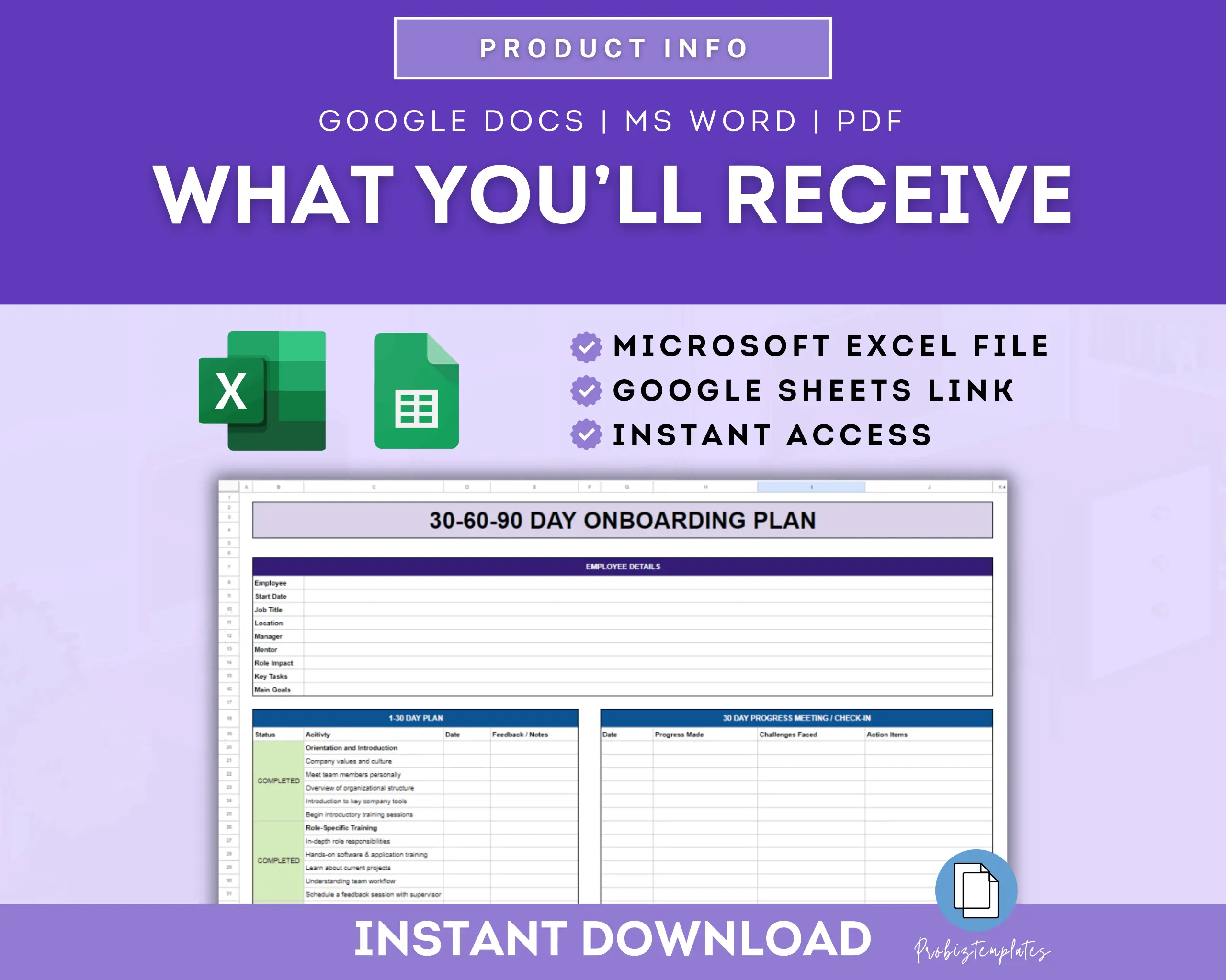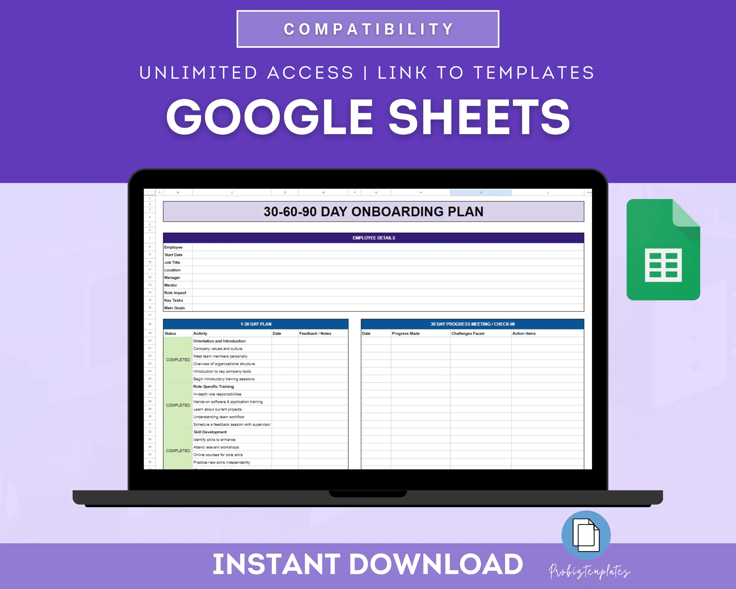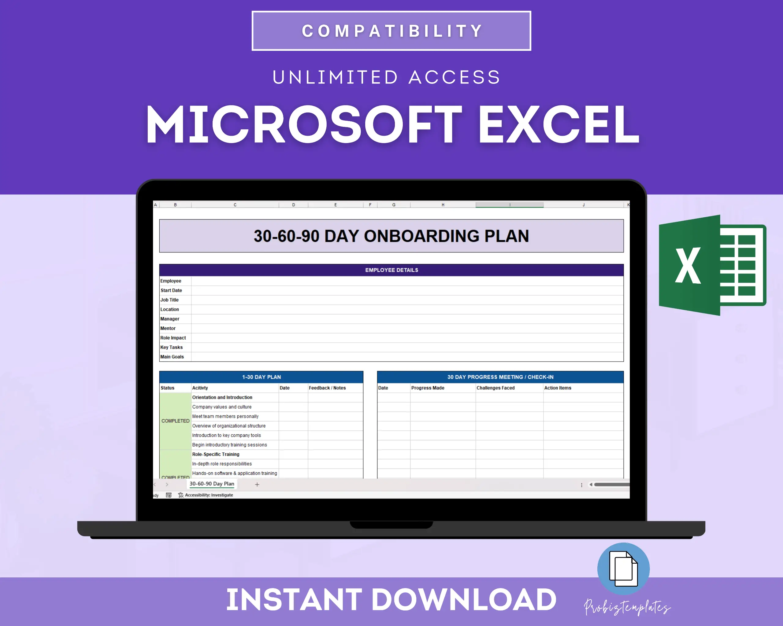 📊 Employee 30-60-90 Day Onboarding Plan Spreadsheet