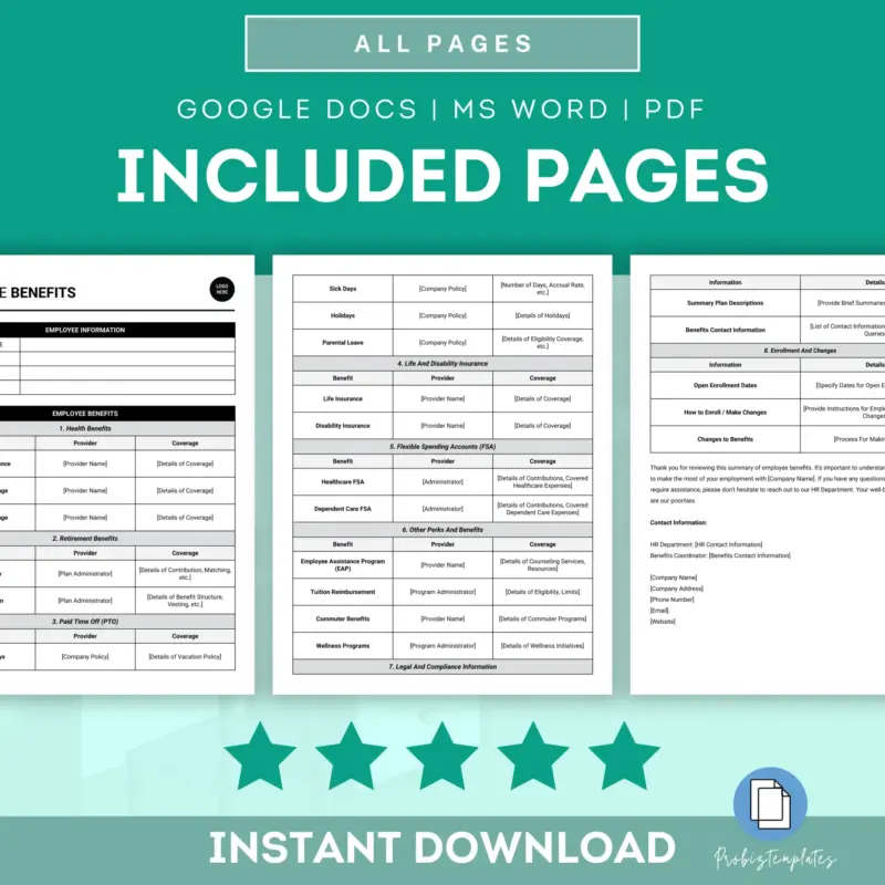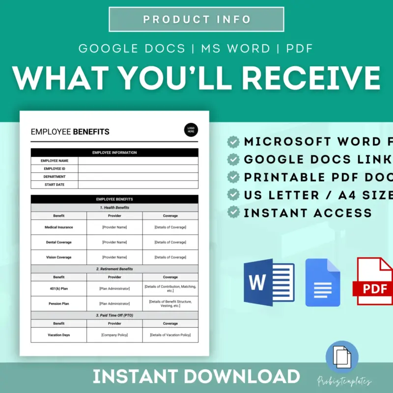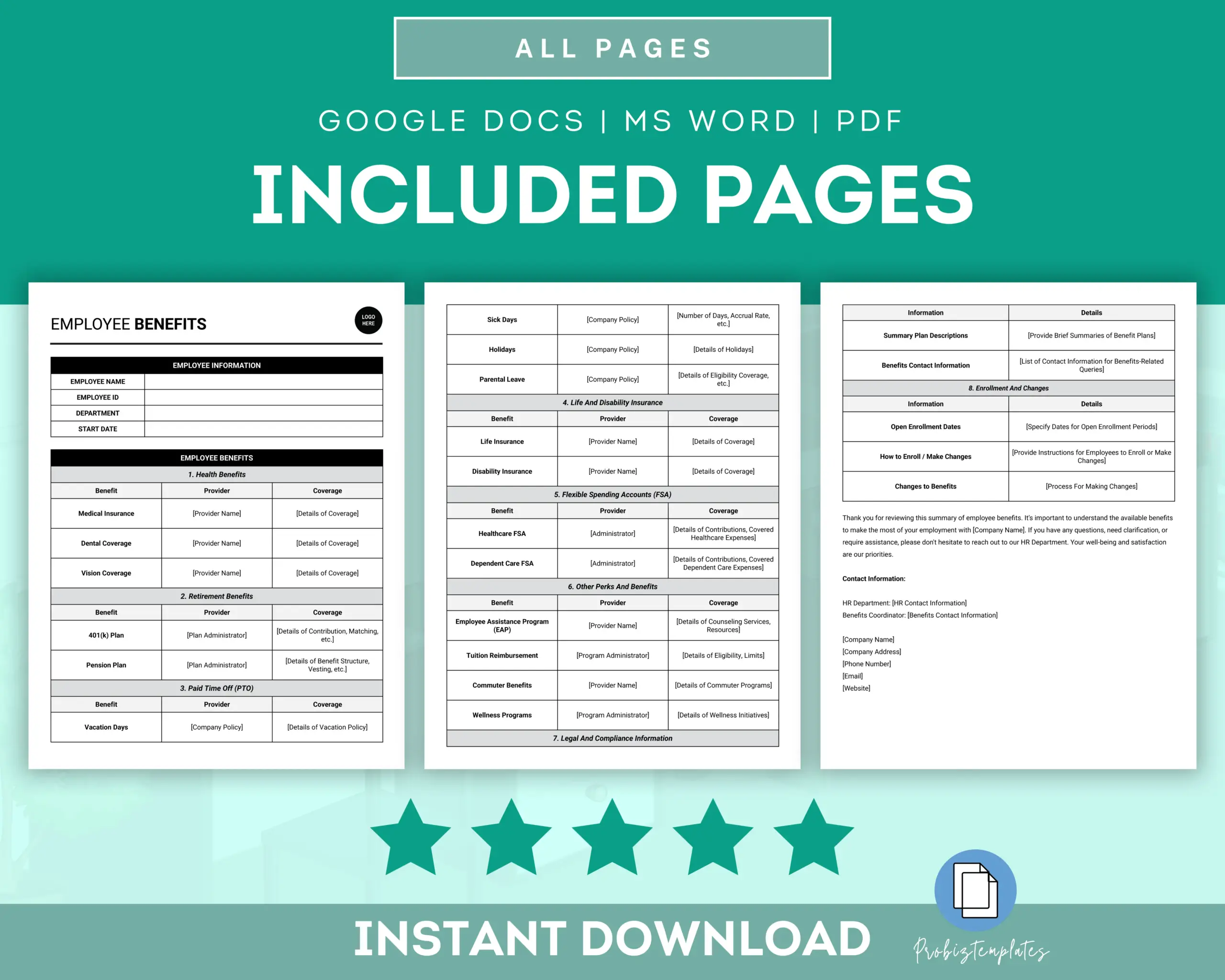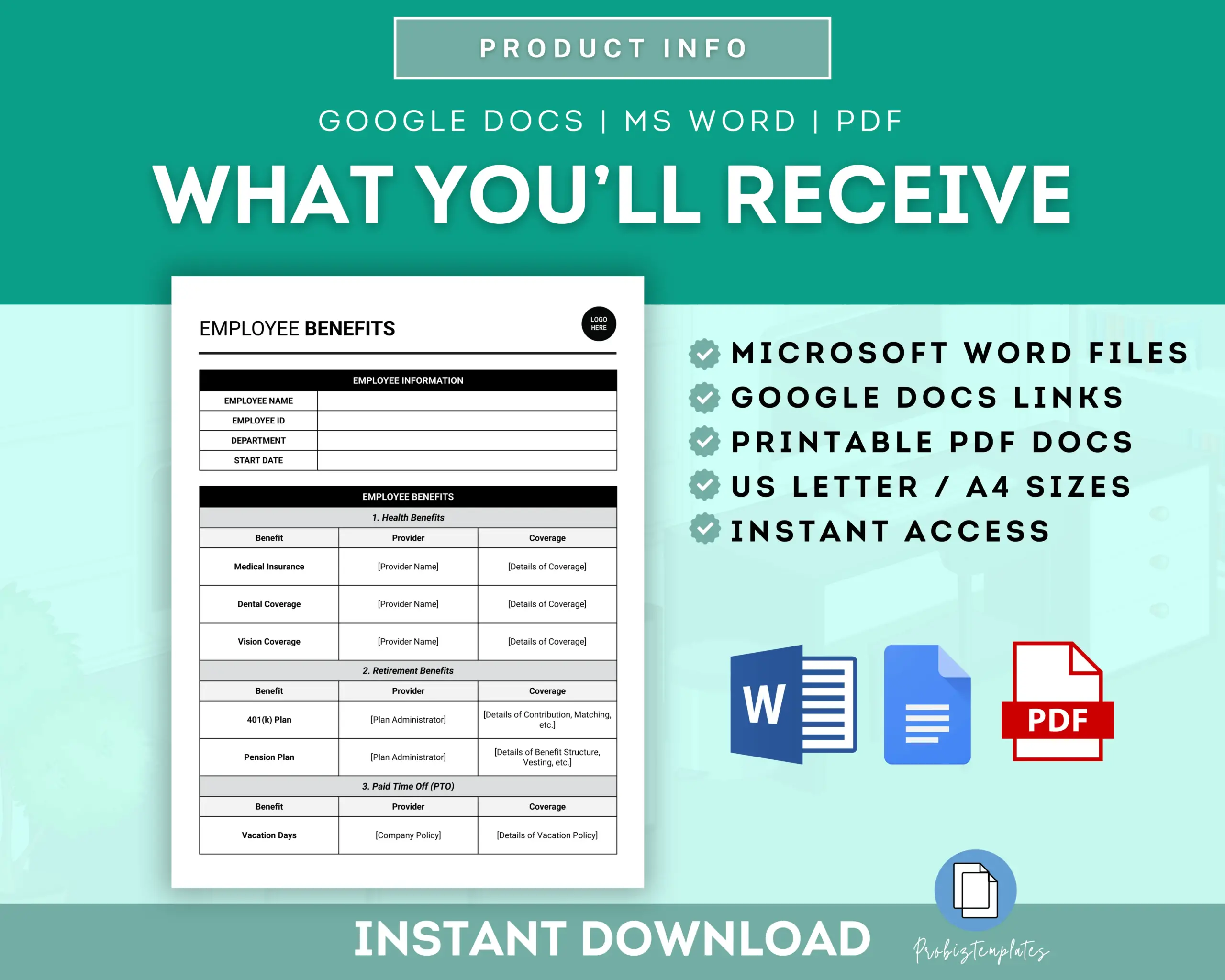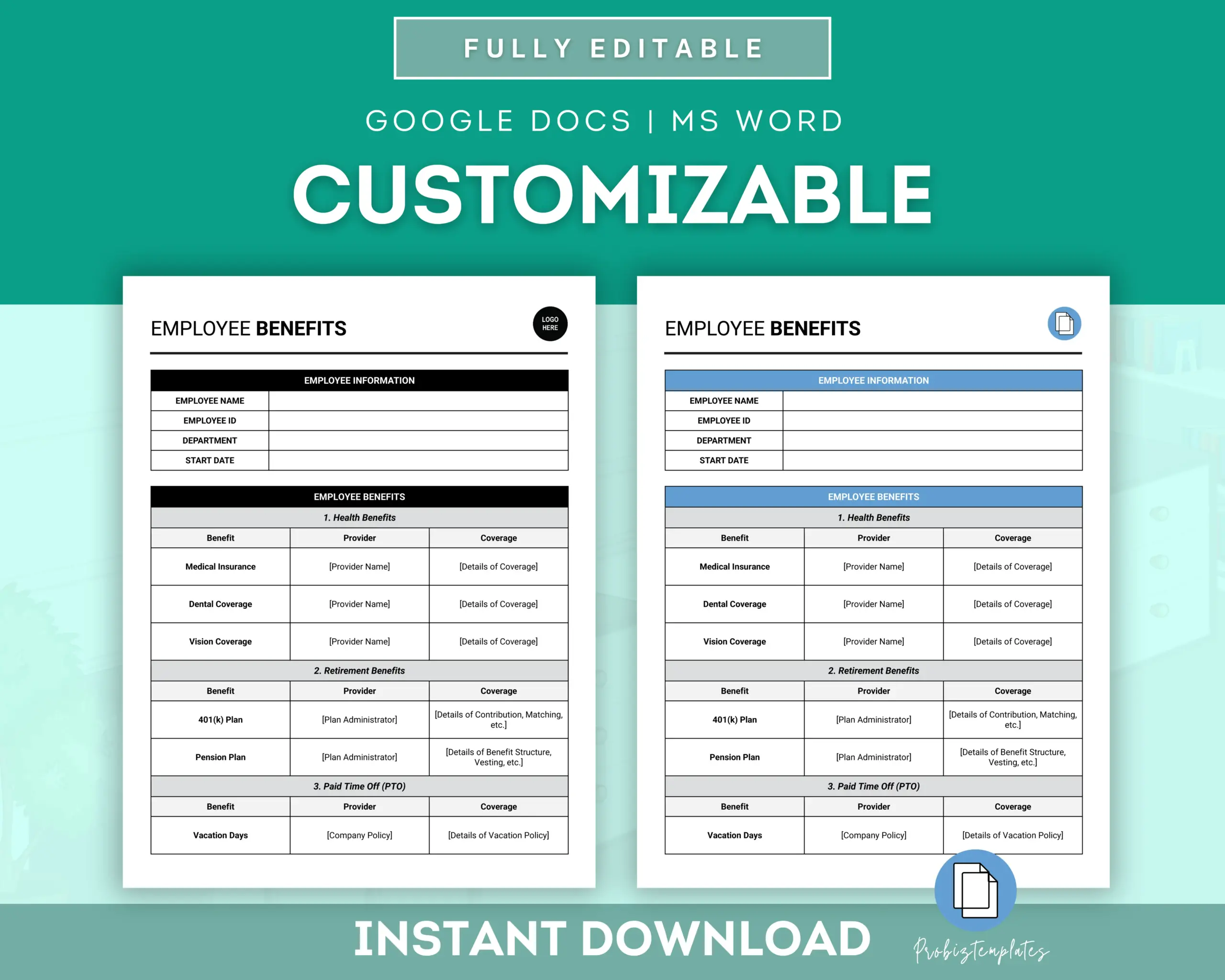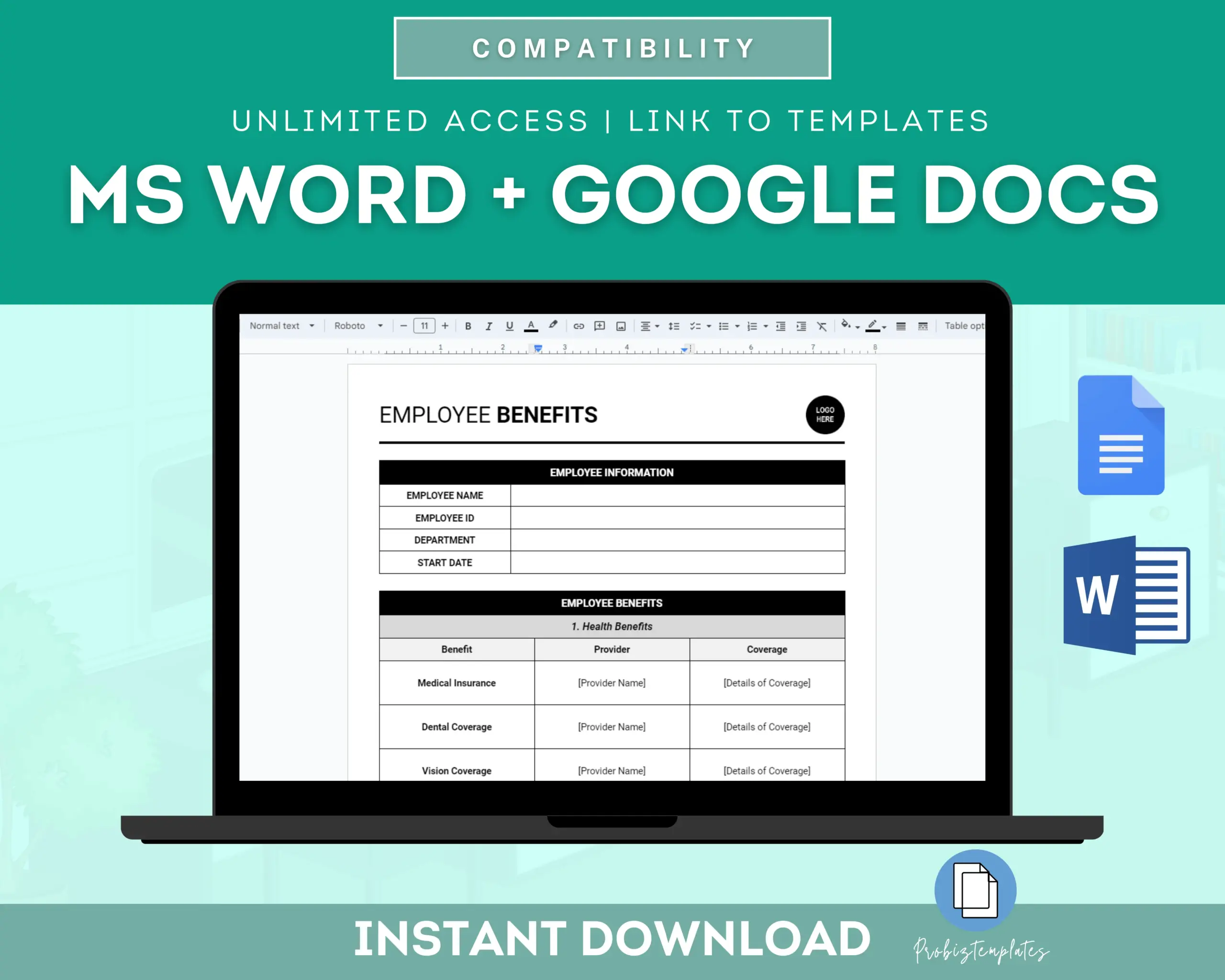 This Employee Benefits Template is a straightforward solution designed to streamline the communication of employee perks and policies. Simplify the process of conveying crucial benefits information to your team with this user-friendly template. From health coverage to retirement plans, present it all with clarity and efficiency.