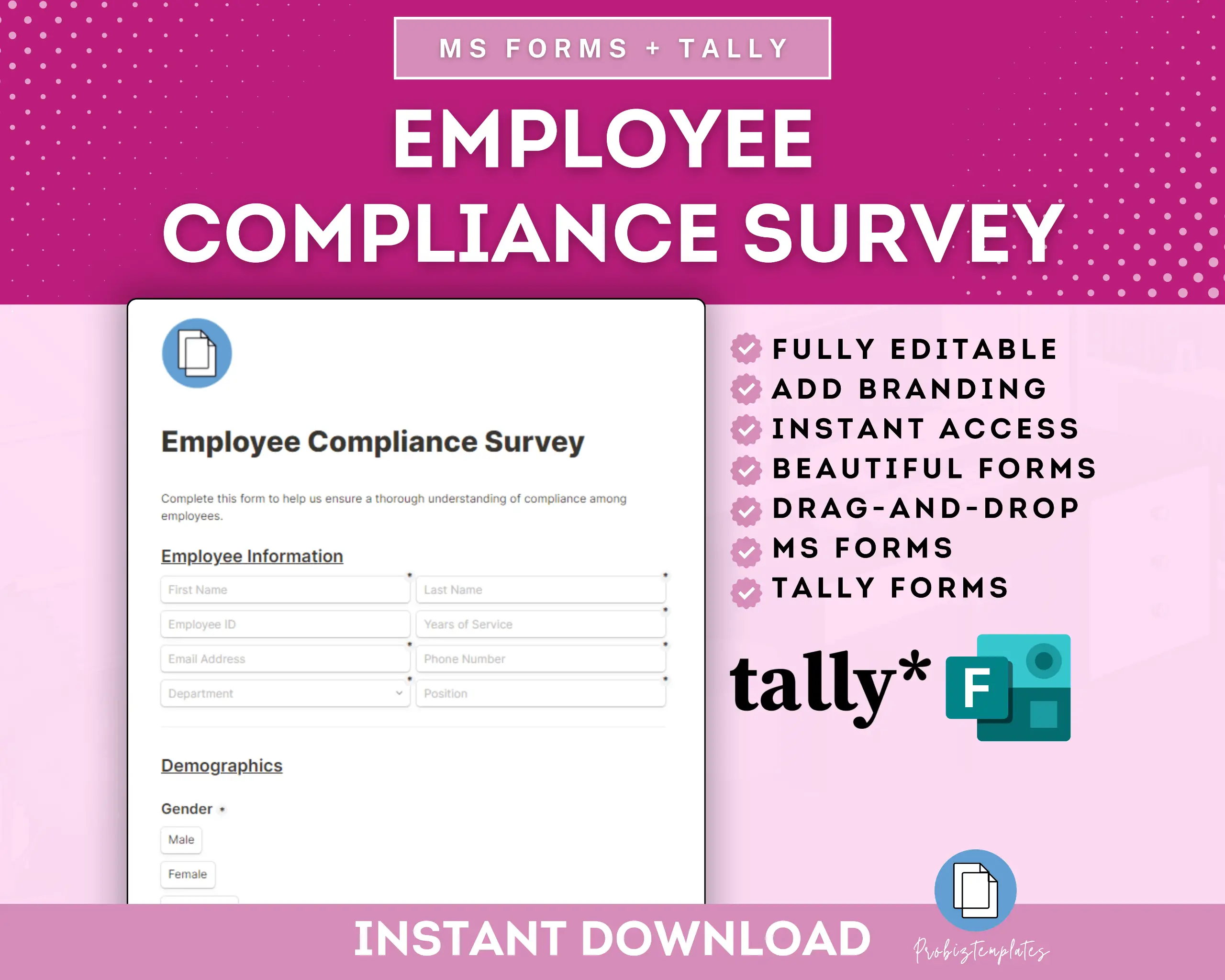 Assess adherence to company policies and procedures with this Employee Compliance Online Survey. This survey promotes a compliant and ethical workplace by identifying areas needing attention.
