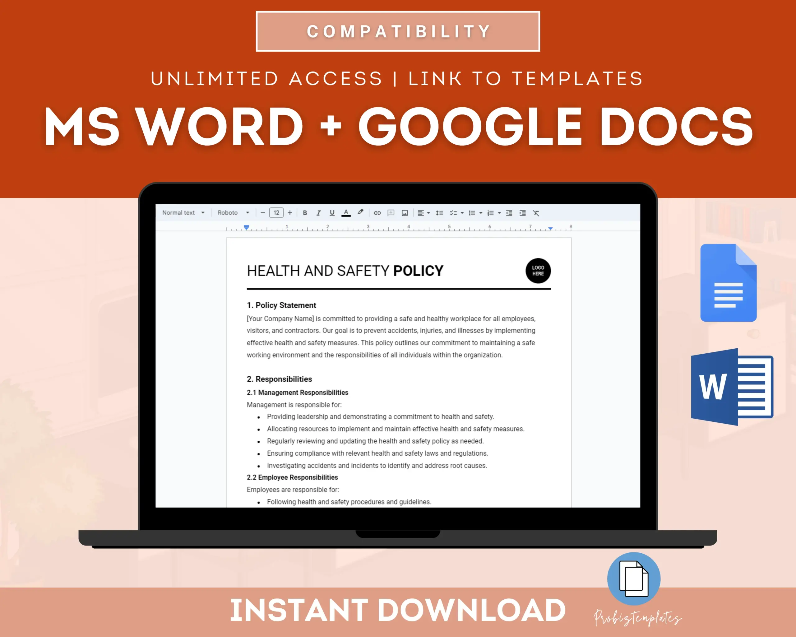 This Employee Health and Safety Policy template is a straightforward and comprehensive document to guide your organization in fostering a safe and healthy workplace. This template outlines essential guidelines and protocols, ensuring compliance with industry standards and promoting a secure environment for your team.
