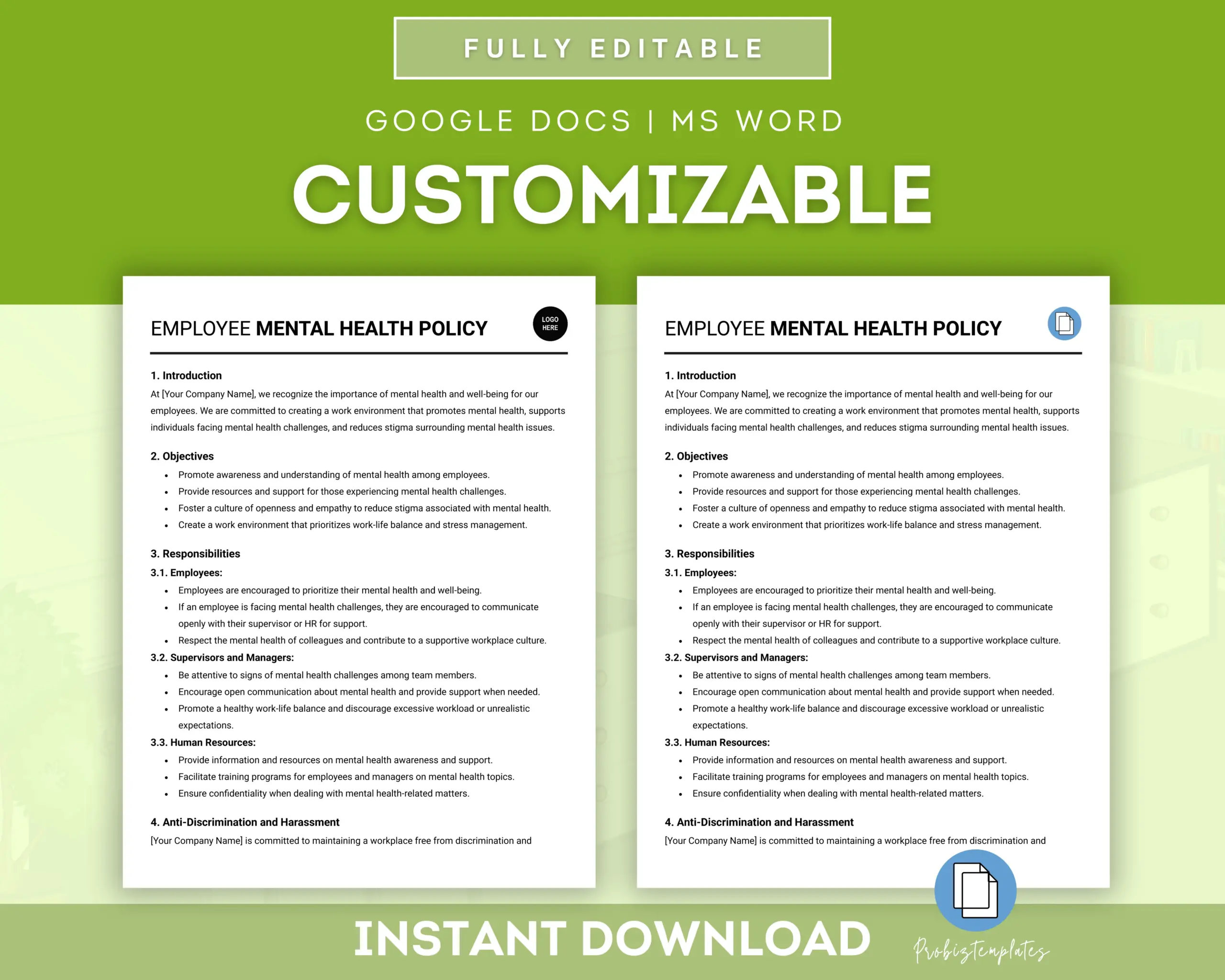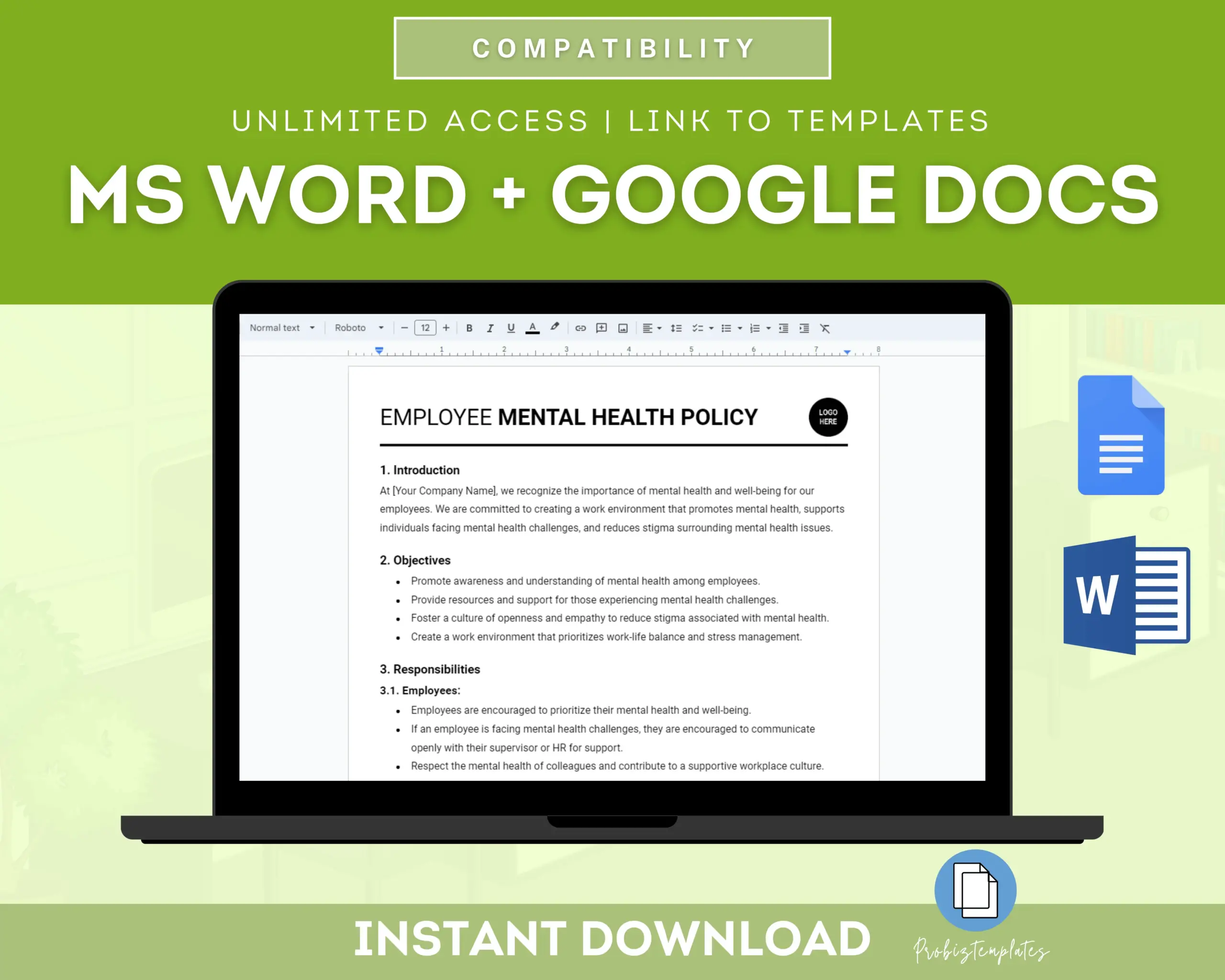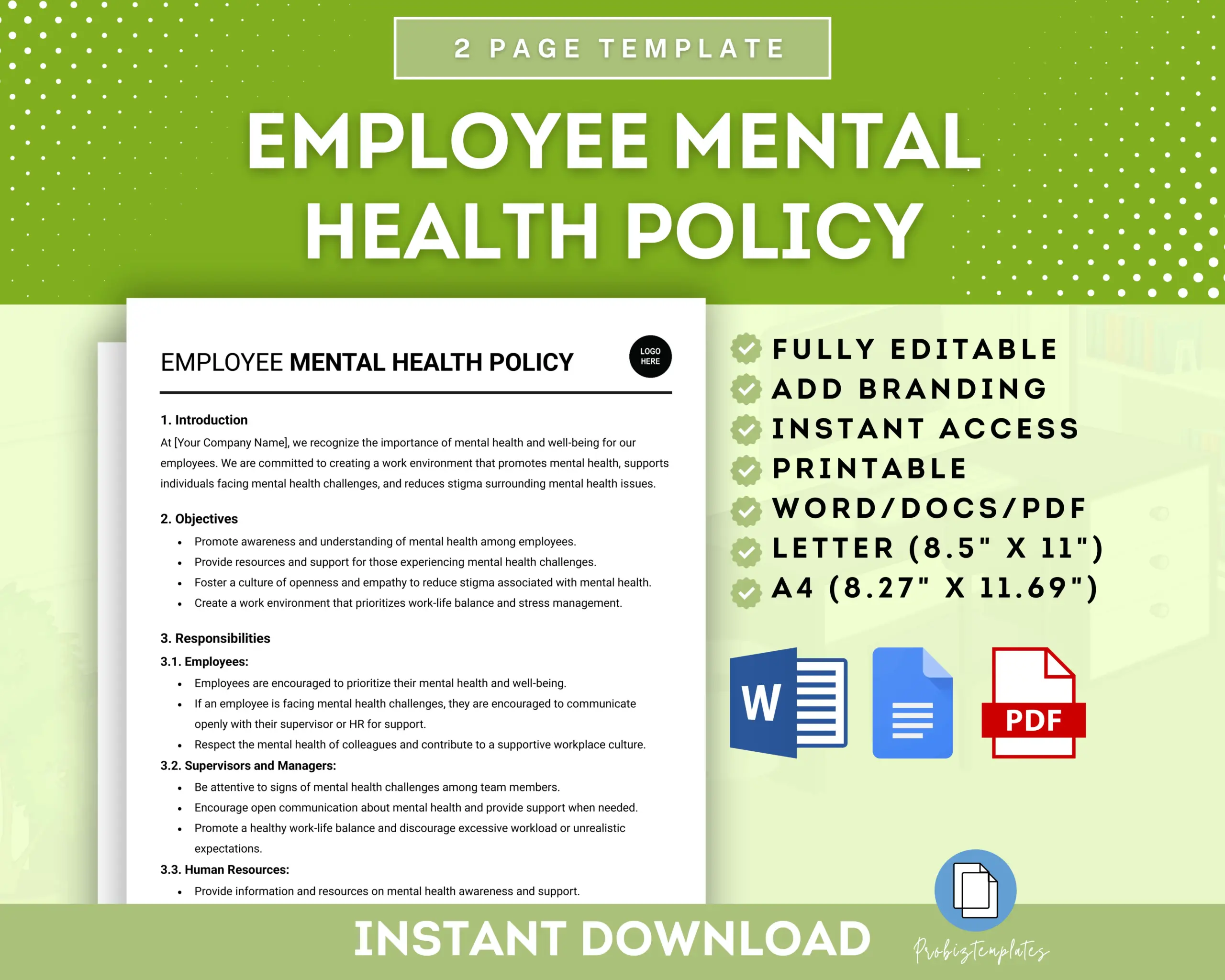 - Fully editable in Google Docs OR Microsoft Word