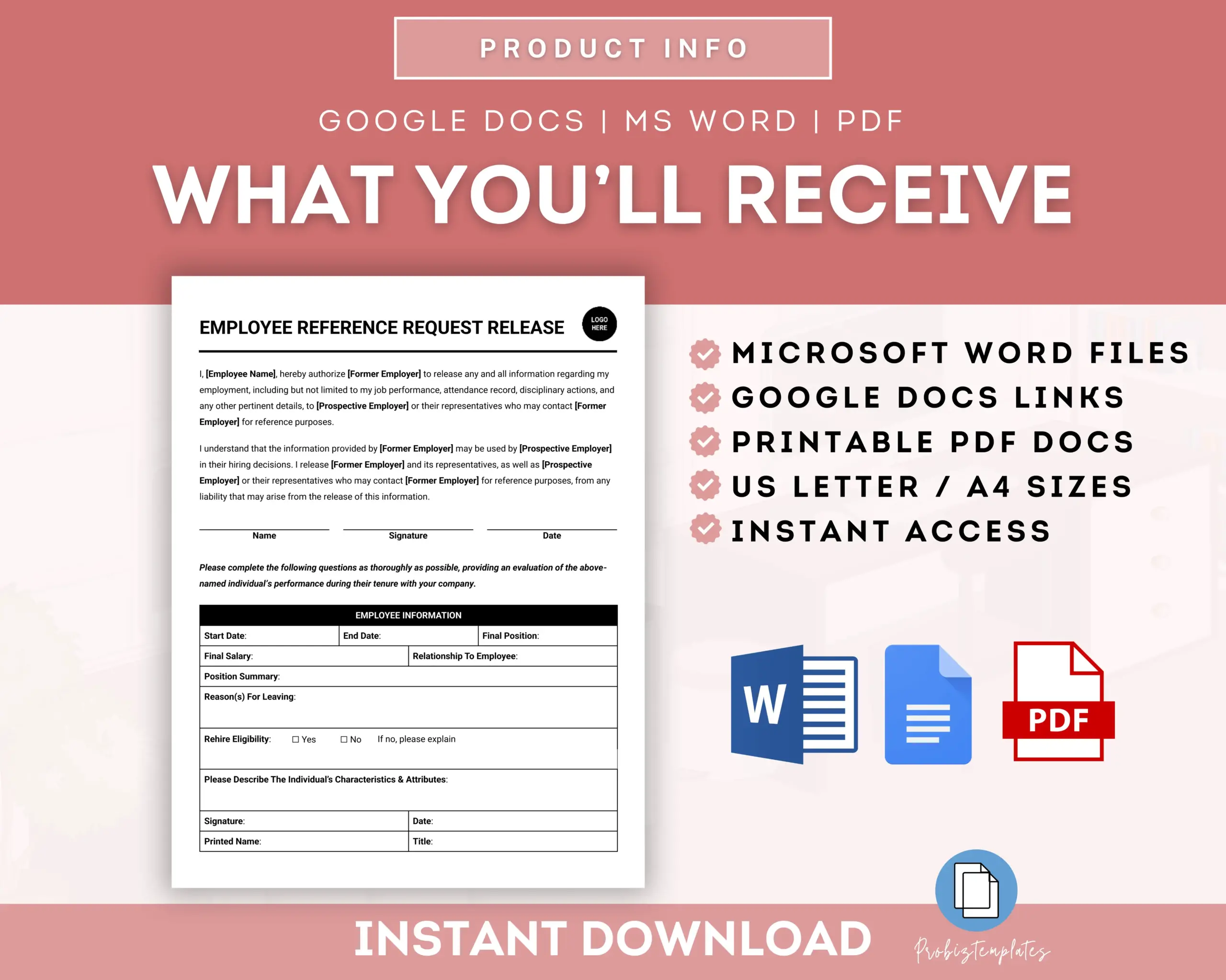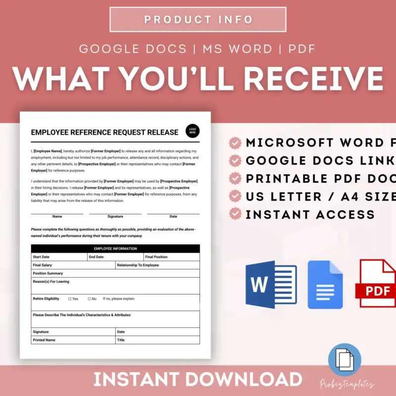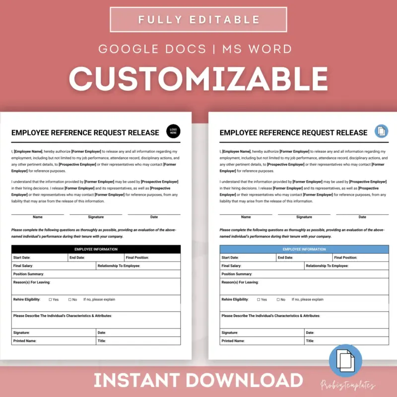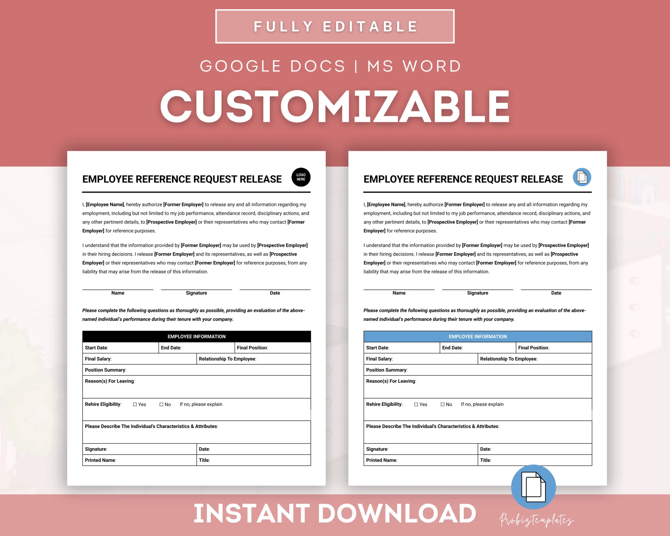 This Employee Reference Request Release Form Template simplifies the process of obtaining references from previous employers, perfect for hiring managers and recruiters.
