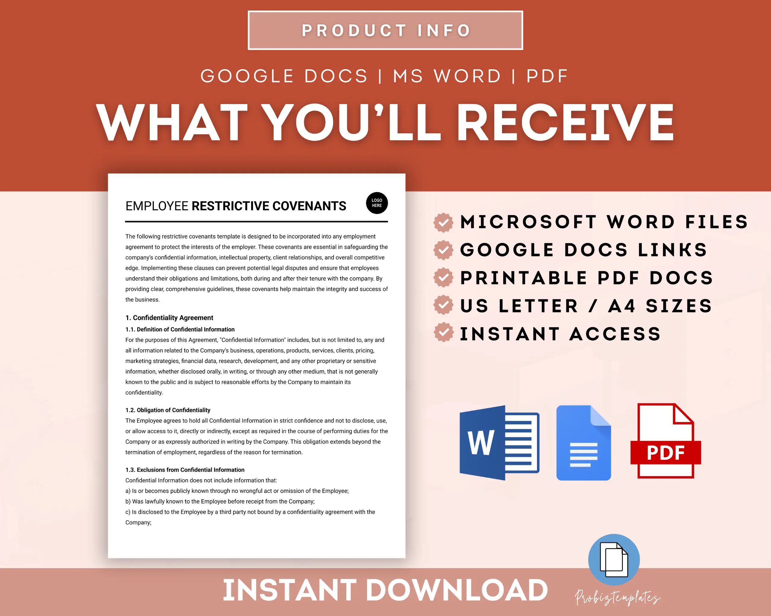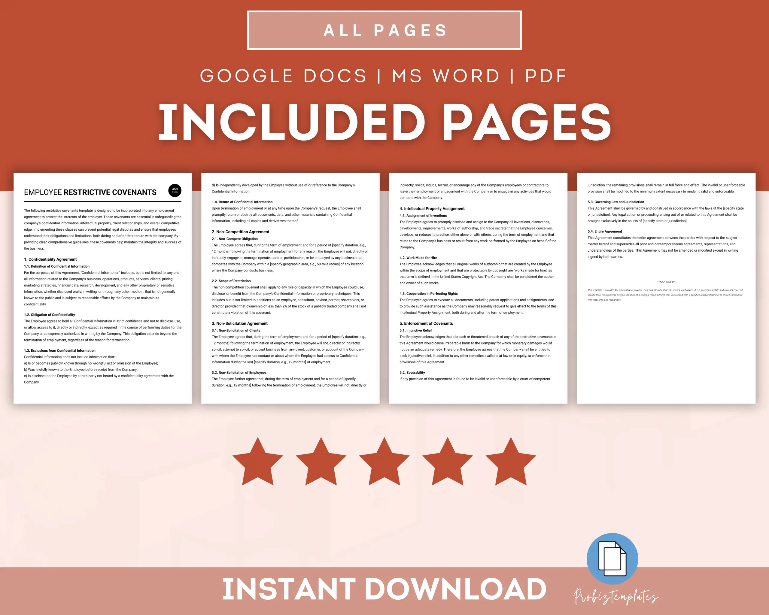 This Employee Restrictive Covenants template outlines the terms and conditions of non-compete, non-disclosure, and other restrictive covenants for employees. It ensures protection of company interests and confidential information.