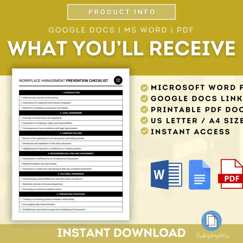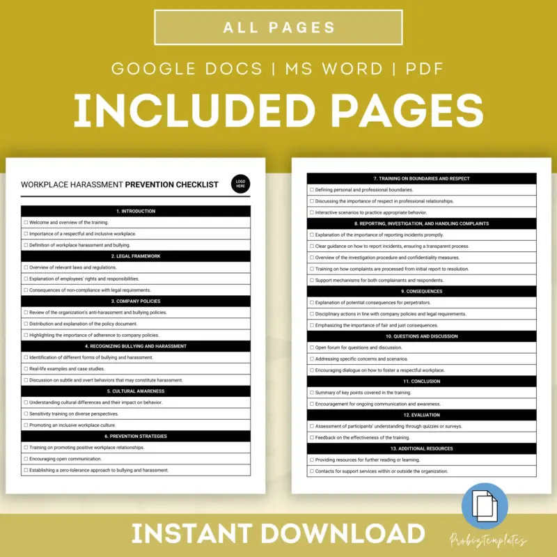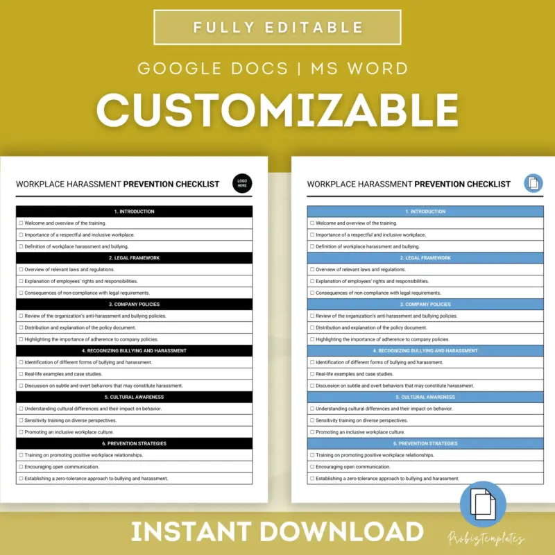 📄 Employee Workplace Bullying & Harassment Prevention Checklist