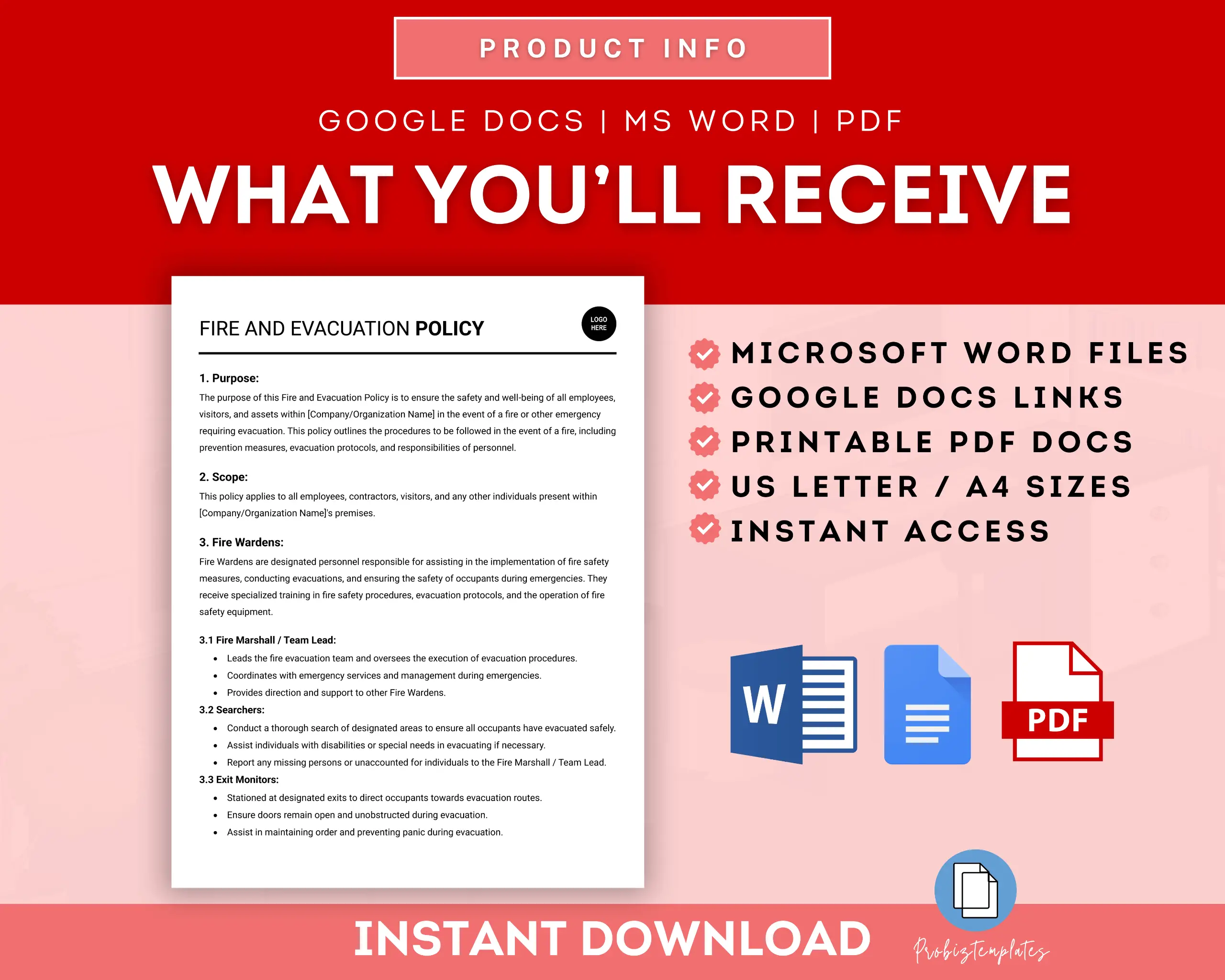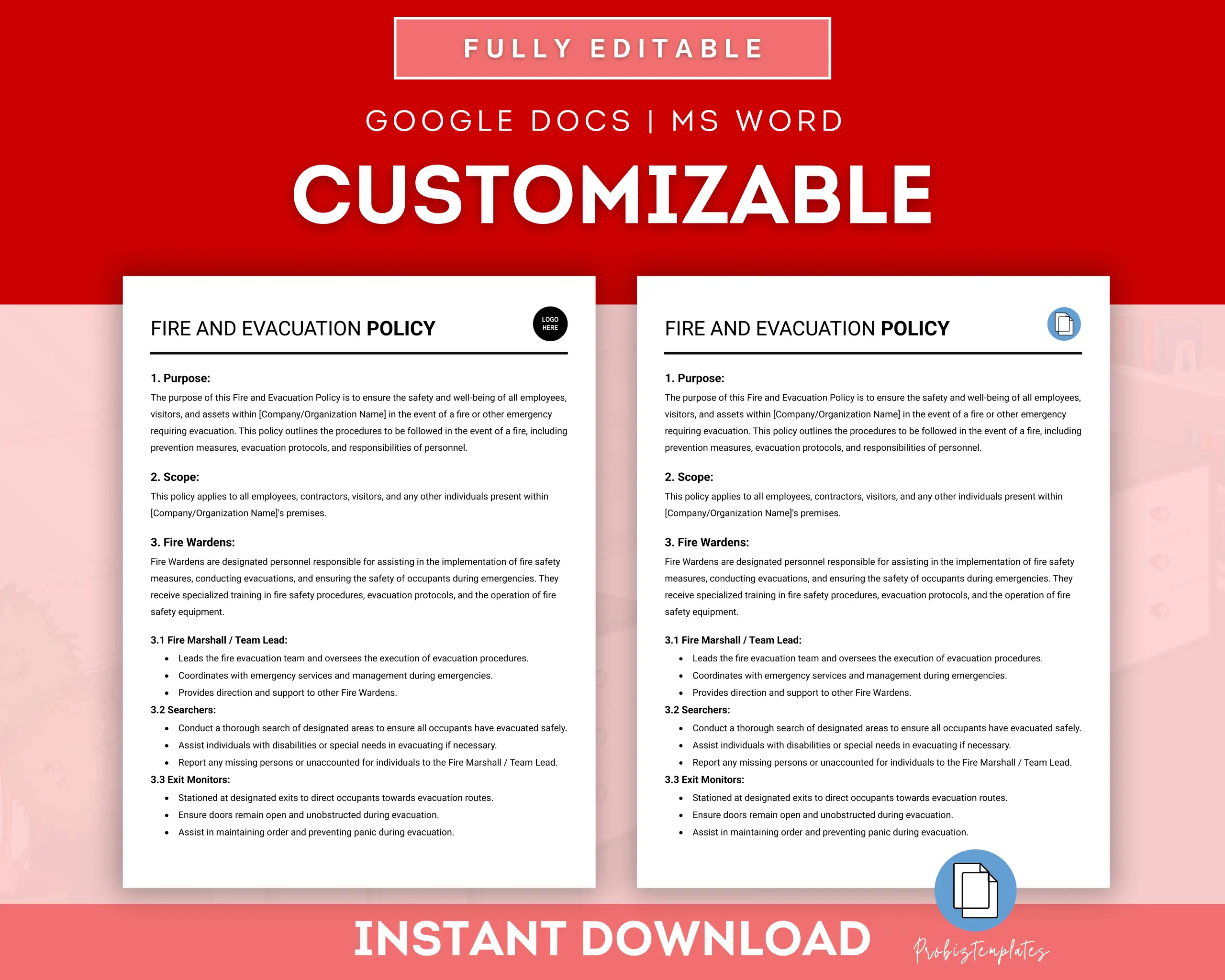 This Fire And Evacuation Policy Template offers a structured plan for managing fire emergencies and conducting evacuations in your workplace. Customize it easily to establish clear protocols and ensure the safety of everyone in your premises.