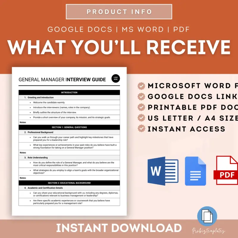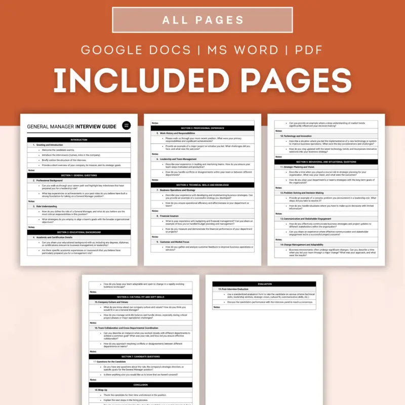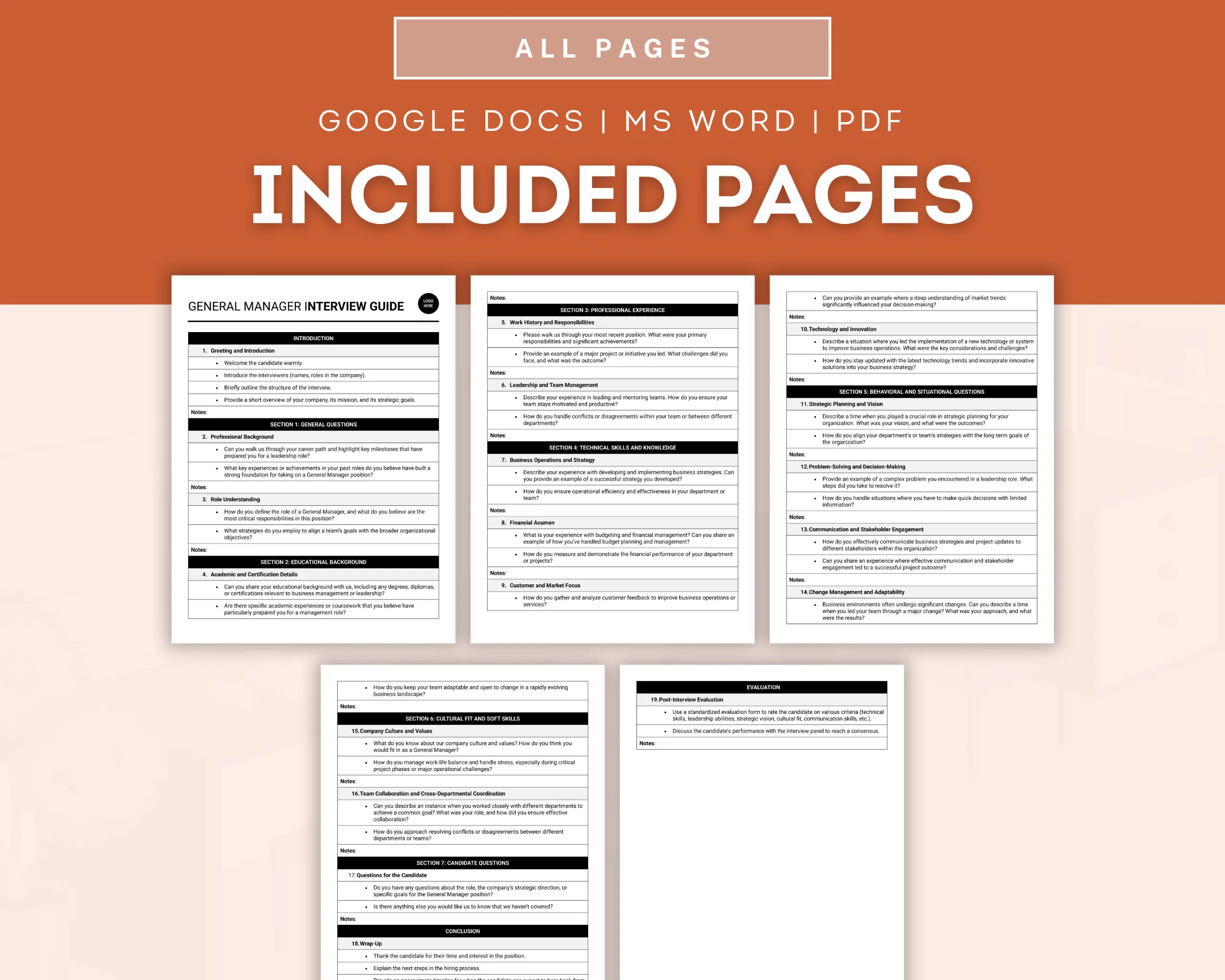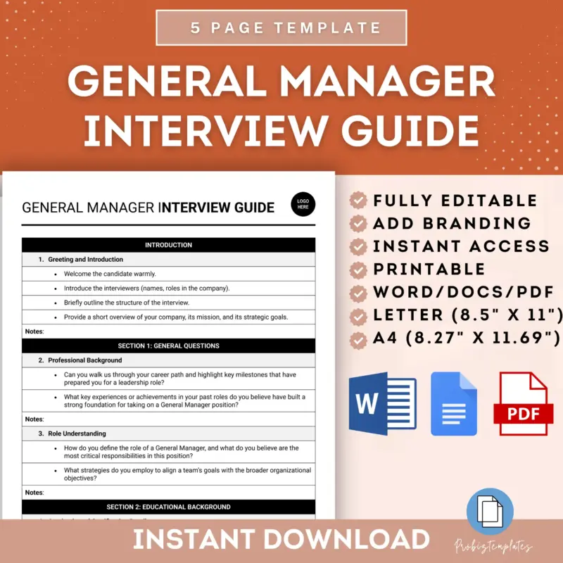 This General Manager Interview Guide provides a comprehensive set of questions and tips for interviewing general manager candidates. It includes questions on leadership, strategy, and performance, ensuring effective hiring decisions.