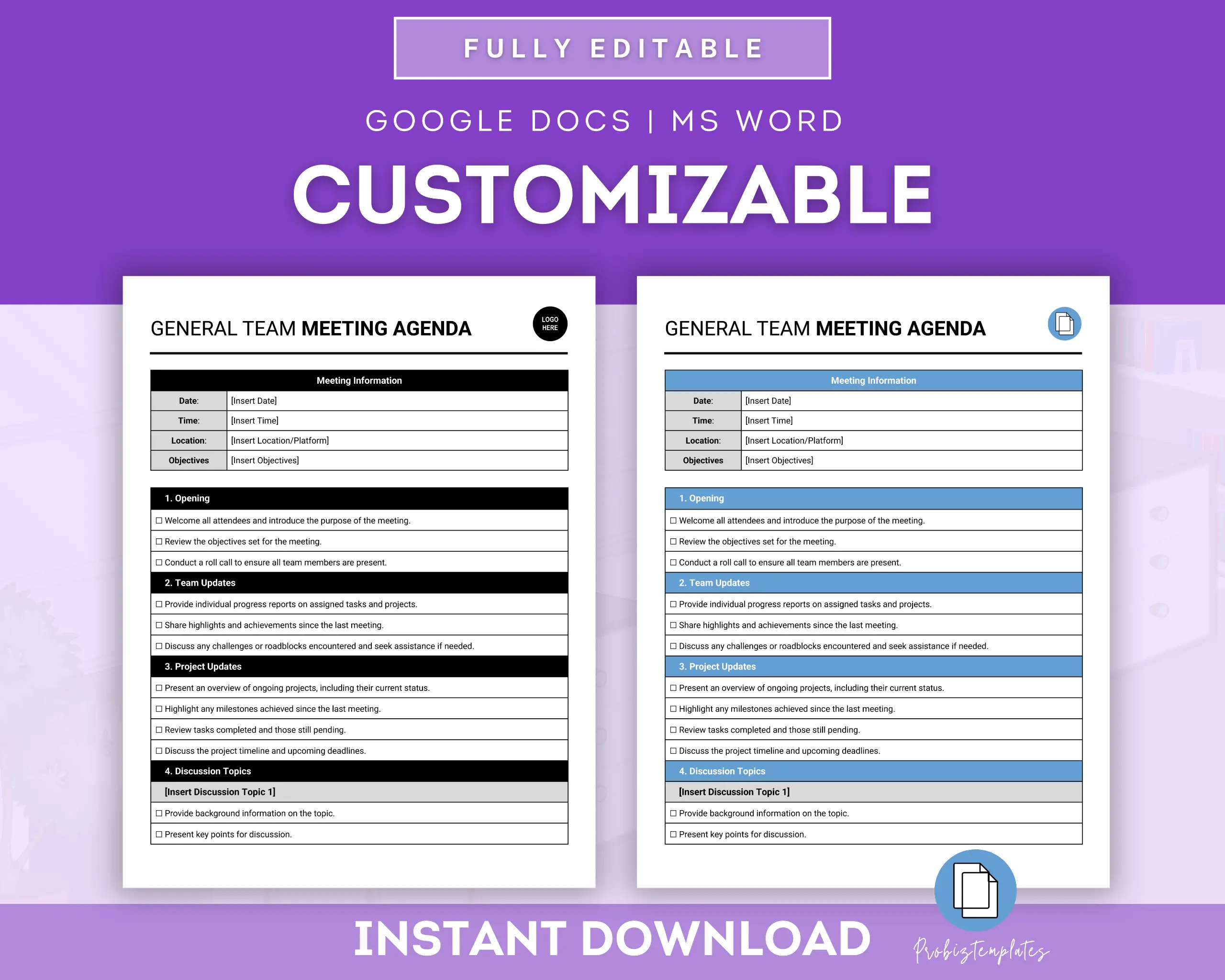 - Fully editable in Google Docs OR Microsoft Word
