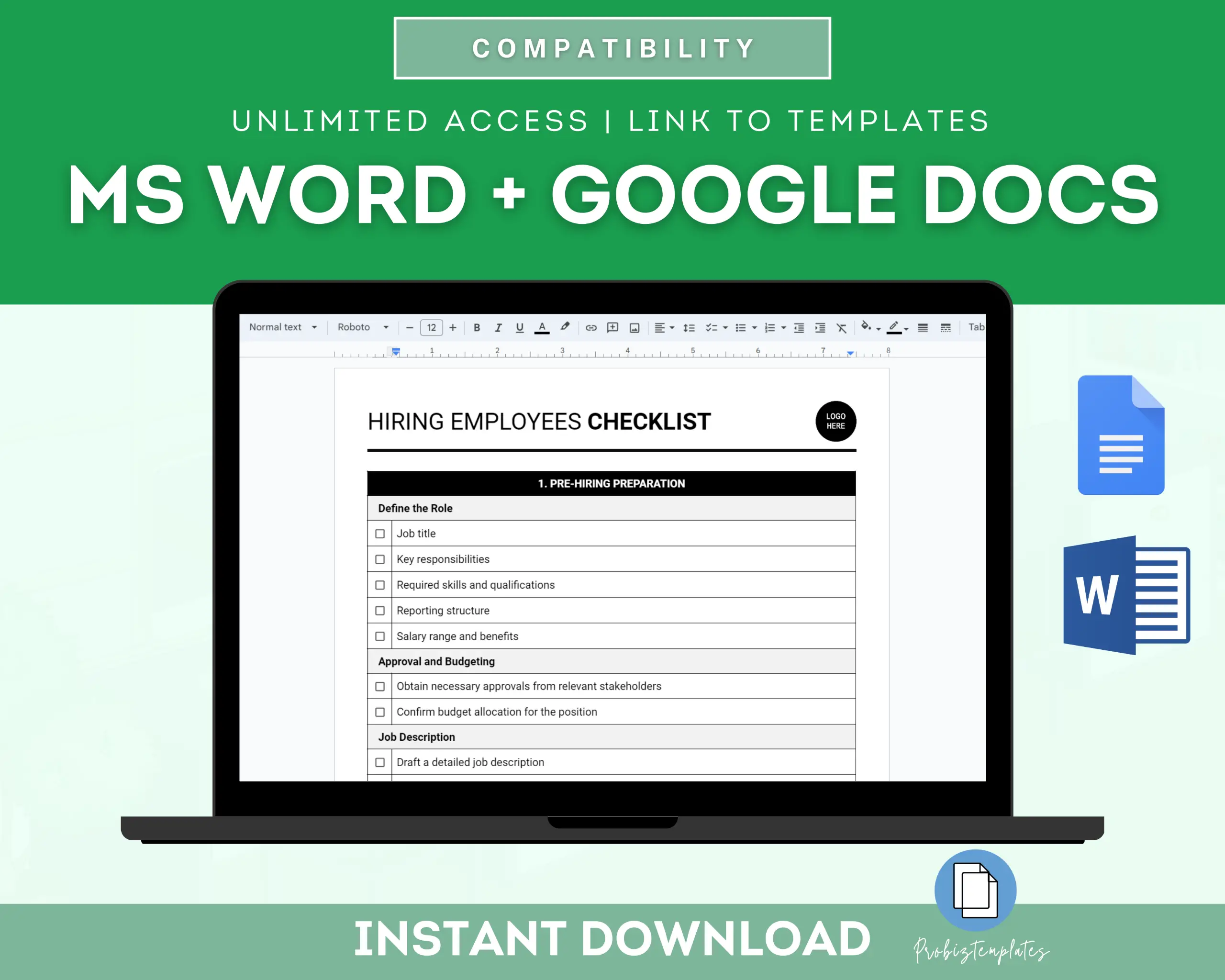 - Fully editable in Google Docs OR Microsoft Word