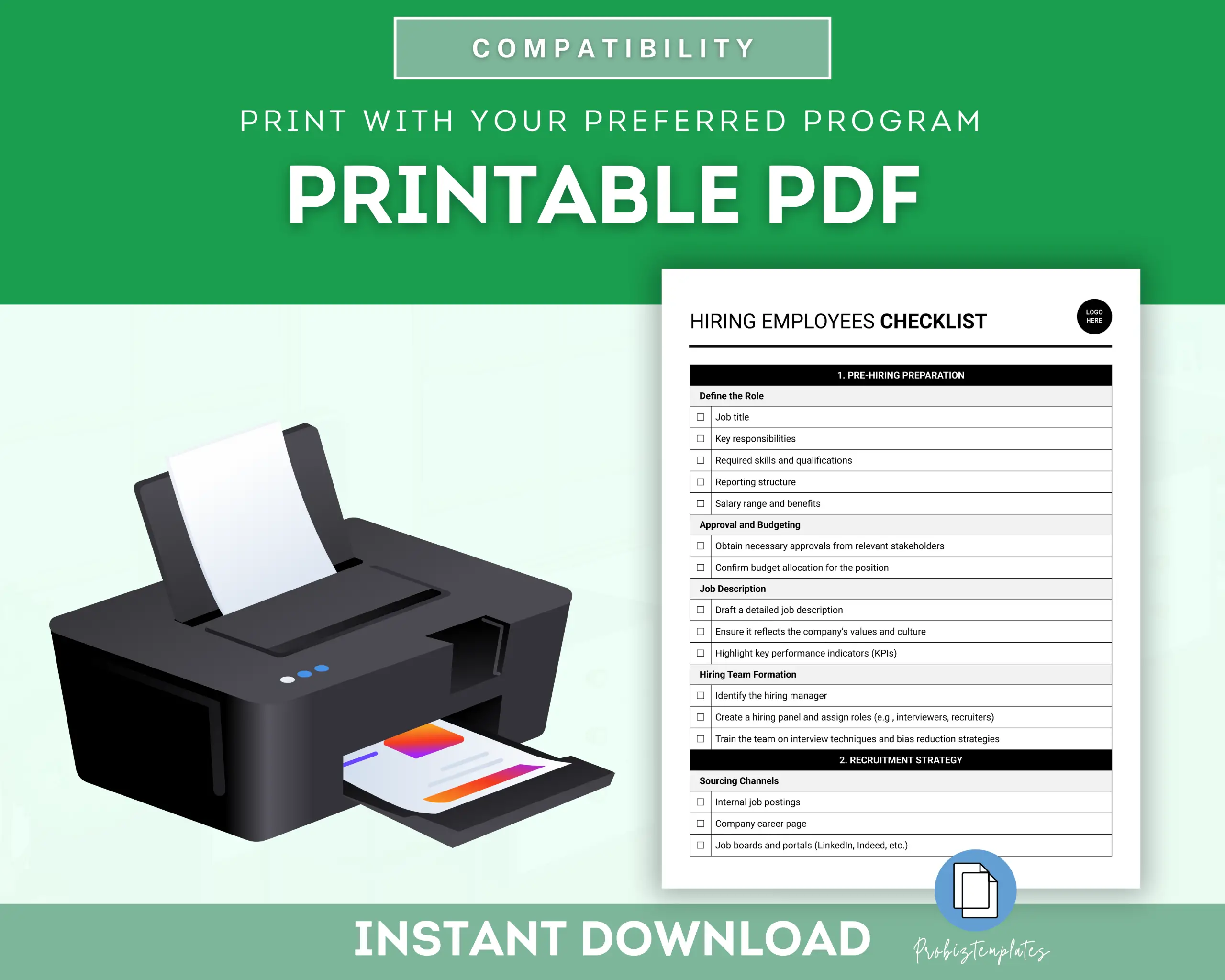 This checklist provides a comprehensive guide for hiring employees. It includes steps for recruitment, interviewing, and onboarding, ensuring a smooth and efficient hiring process for employers.