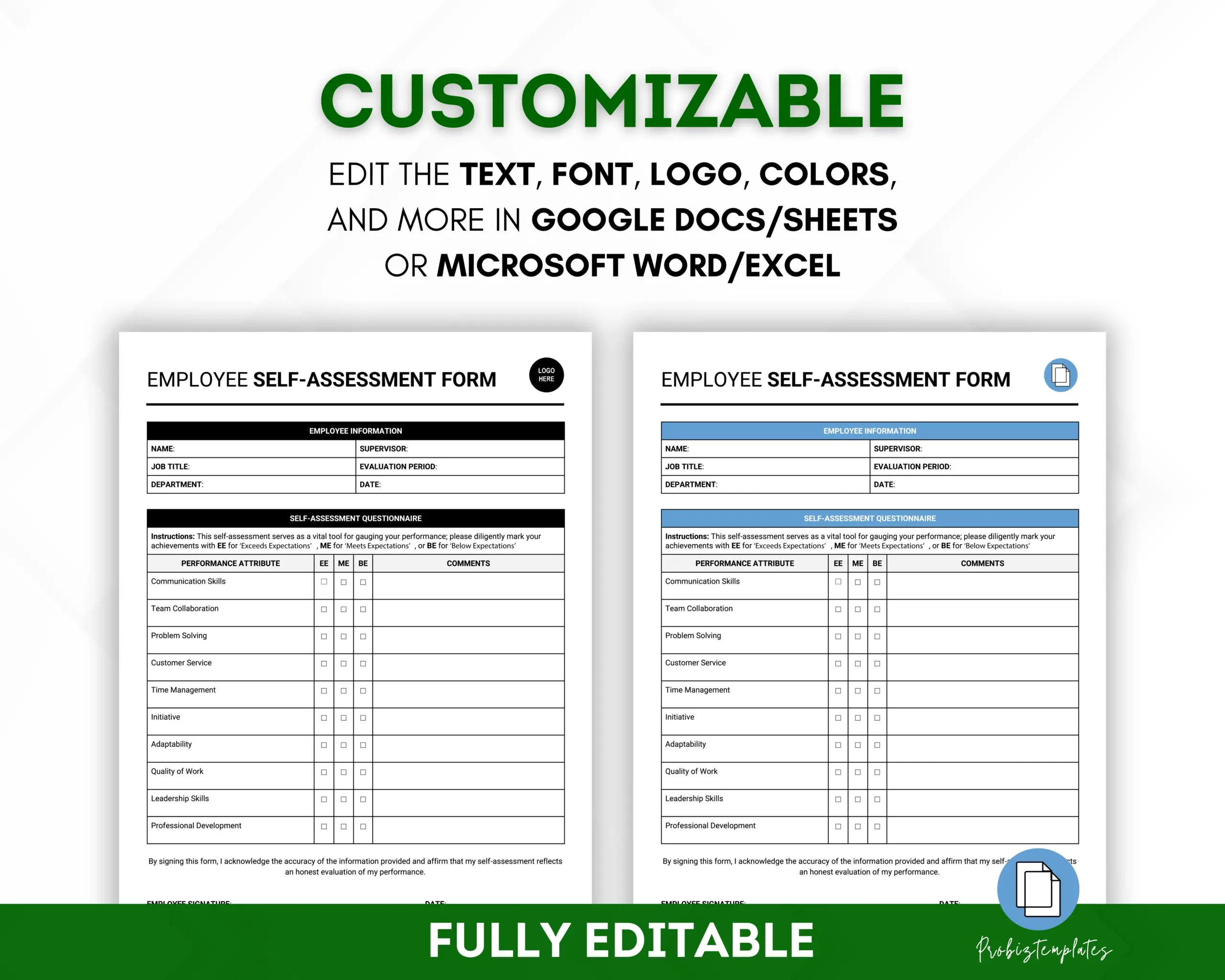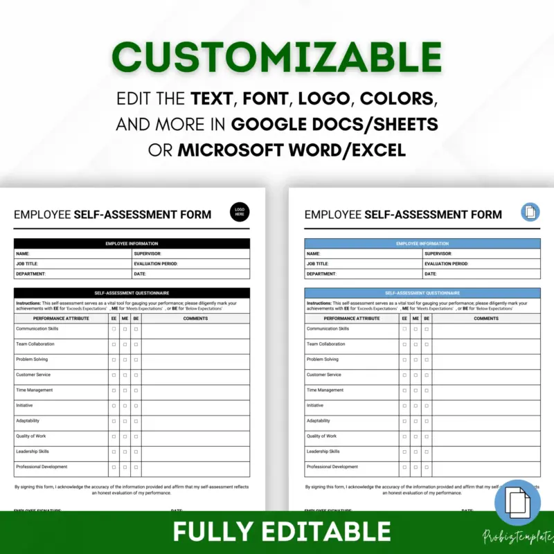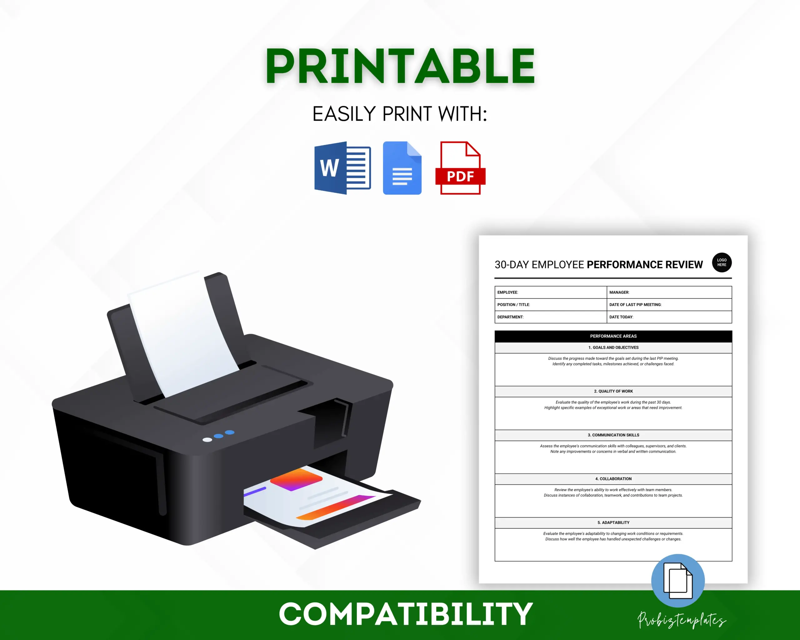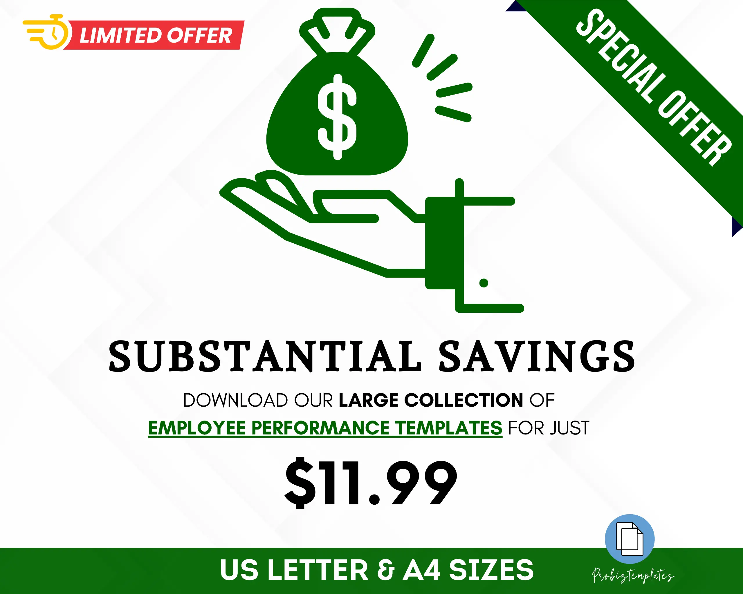 Our HR Employee Performance Review Bundle is a practical collection of essential tools to streamline your employee management processes. This bundle includes key documents such as Performance Improvement Plans, Evaluation Forms, Self-Assessment Forms, Probation Reviews, Disciplinary Forms, Status Change templates, Written Warnings, and more.