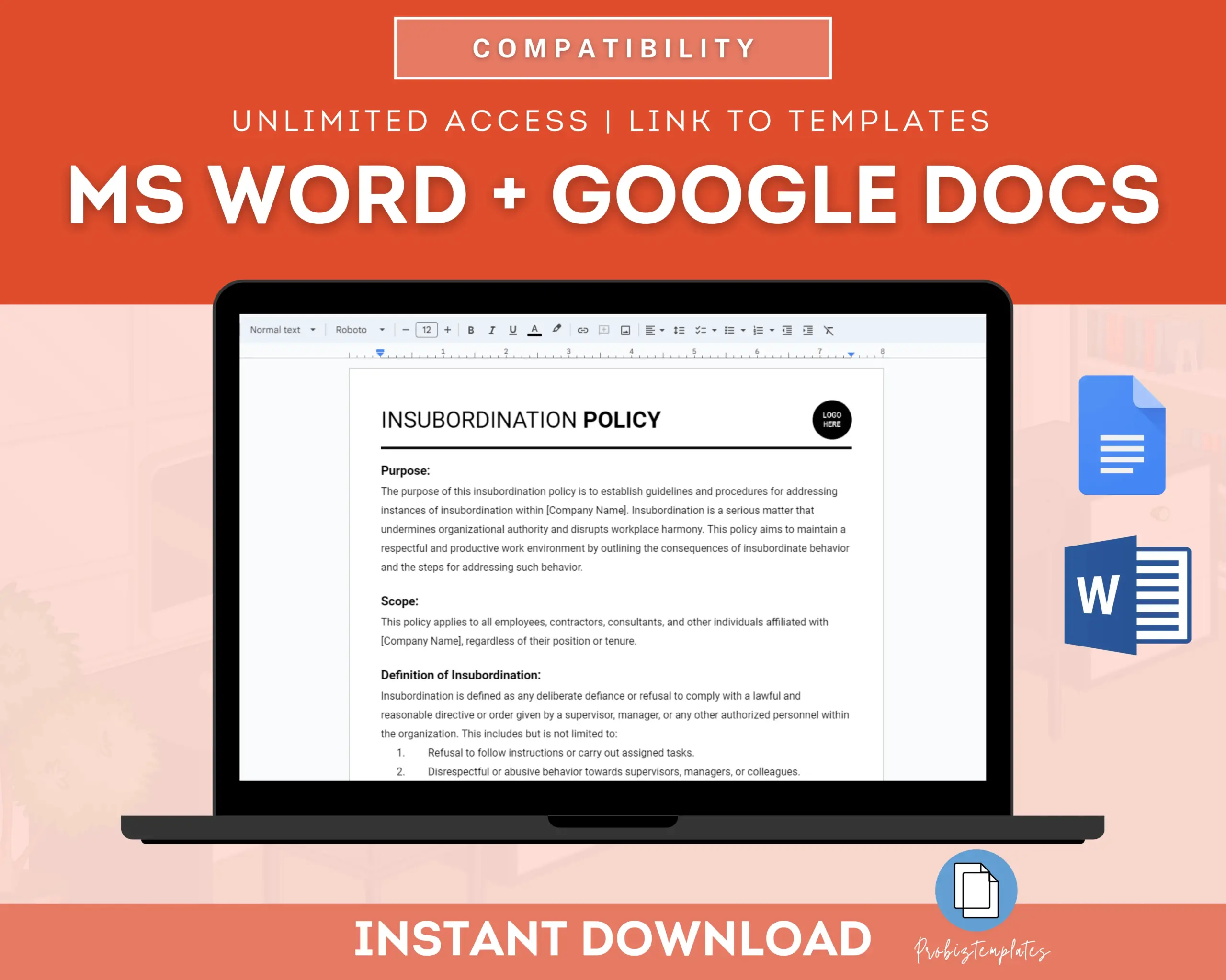 This Insubordination Policy Template offers a comprehensive document outlining the guidelines and procedures for handling instances of insubordination within your organization. It provides a structured approach for addressing and resolving conflicts related to employee behavior and non-compliance with company policies.