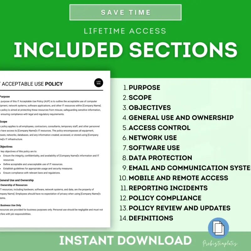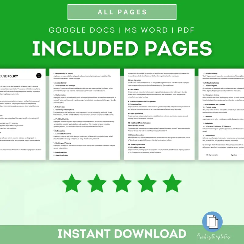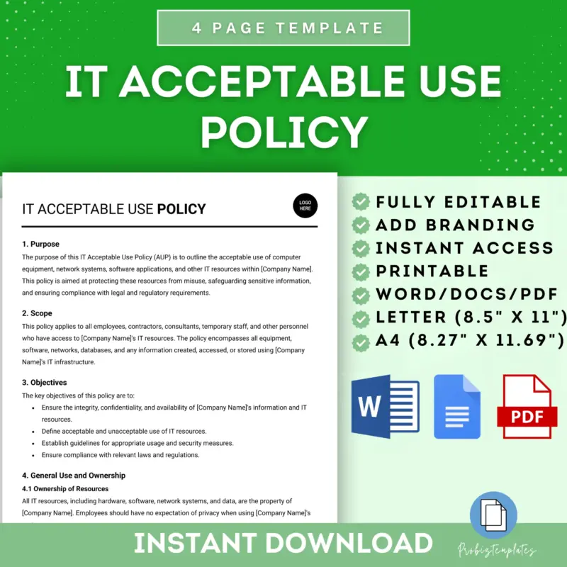 This IT Acceptable Use Policy template outlines the rules and guidelines for using company IT resources. It includes acceptable and prohibited uses, security measures, and compliance requirements to ensure responsible IT usage.
