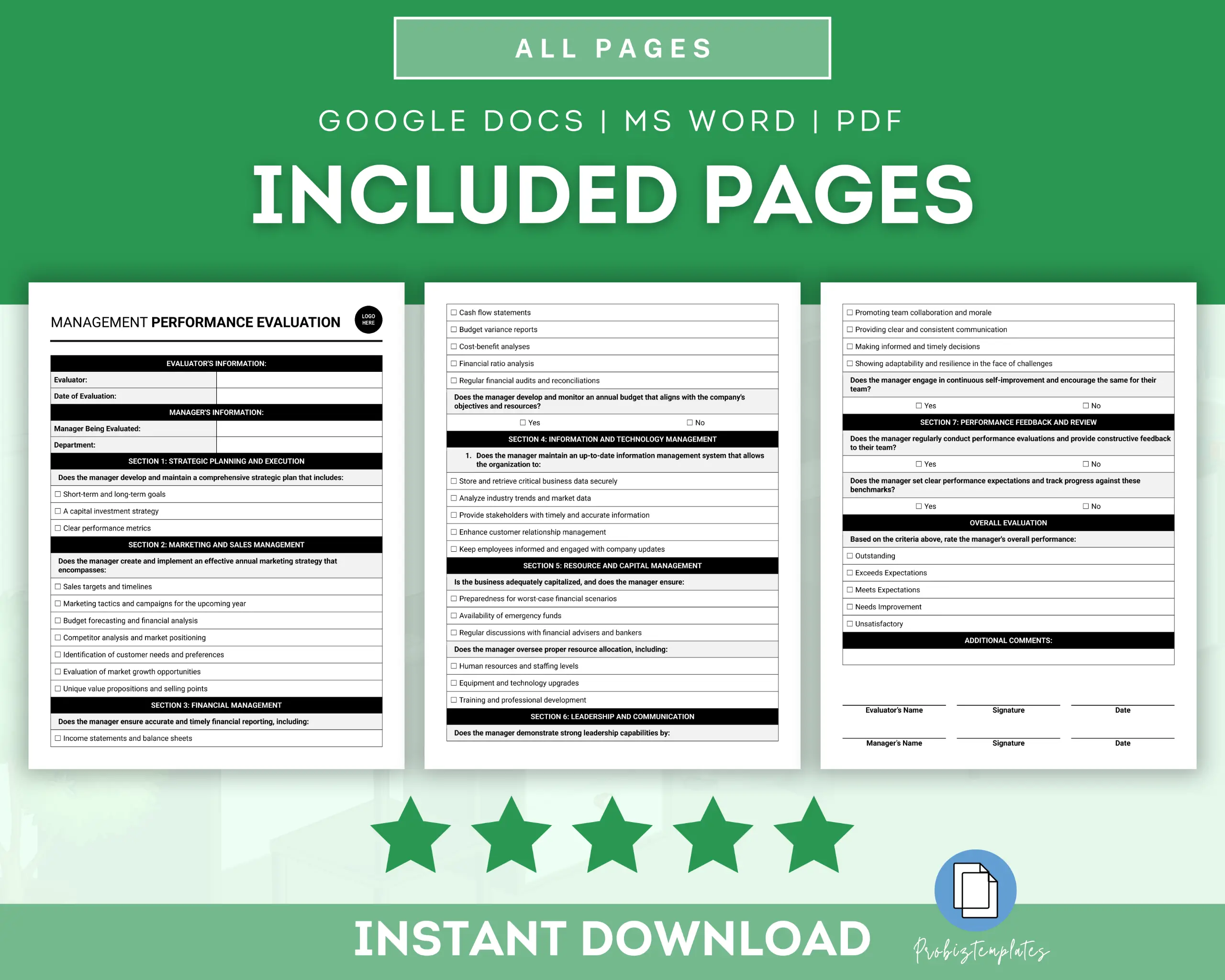 Management Performance Evaluation Form Template
