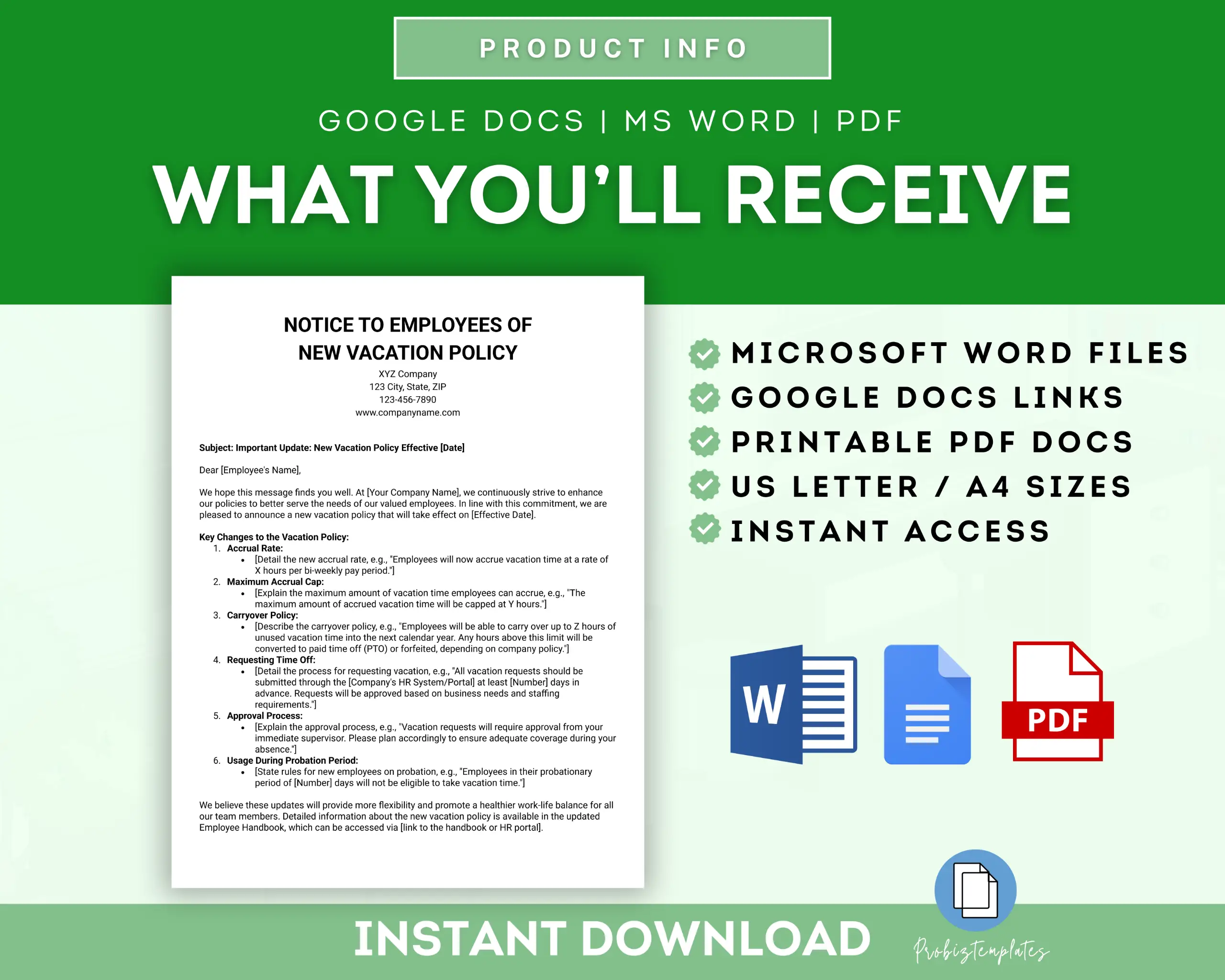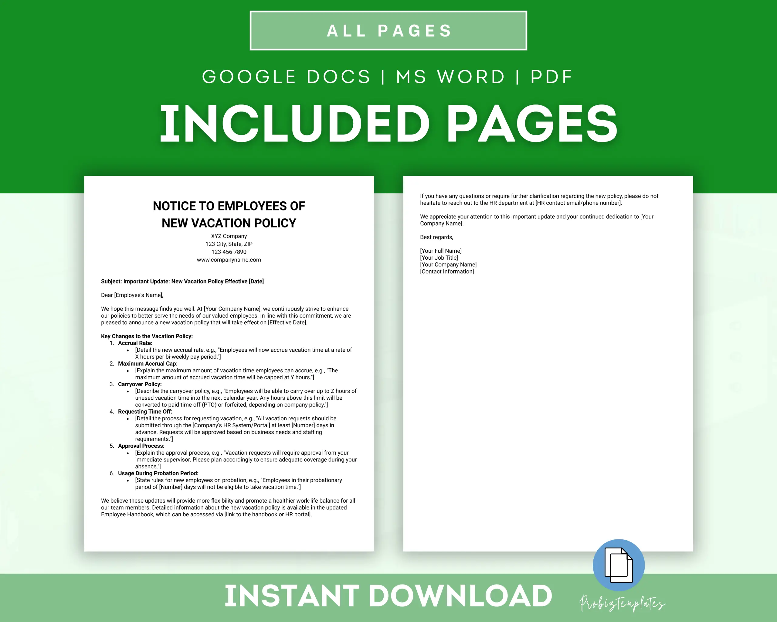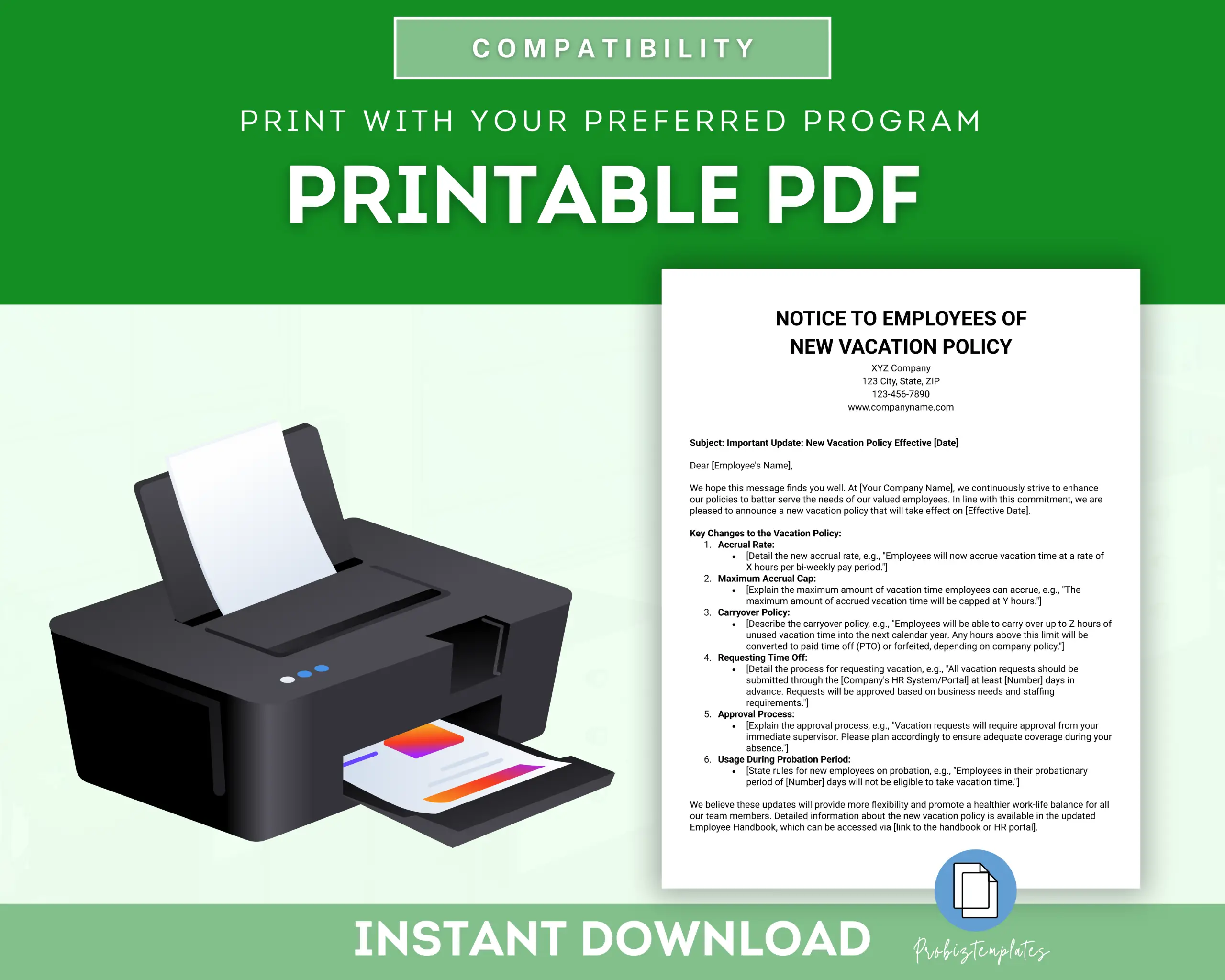 📄 Notice To Employees Of New Vacation Policy Letter Template