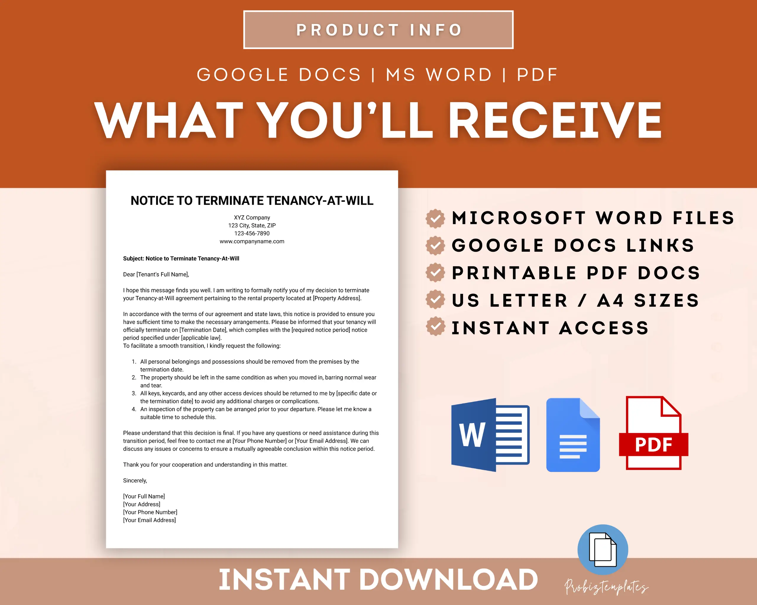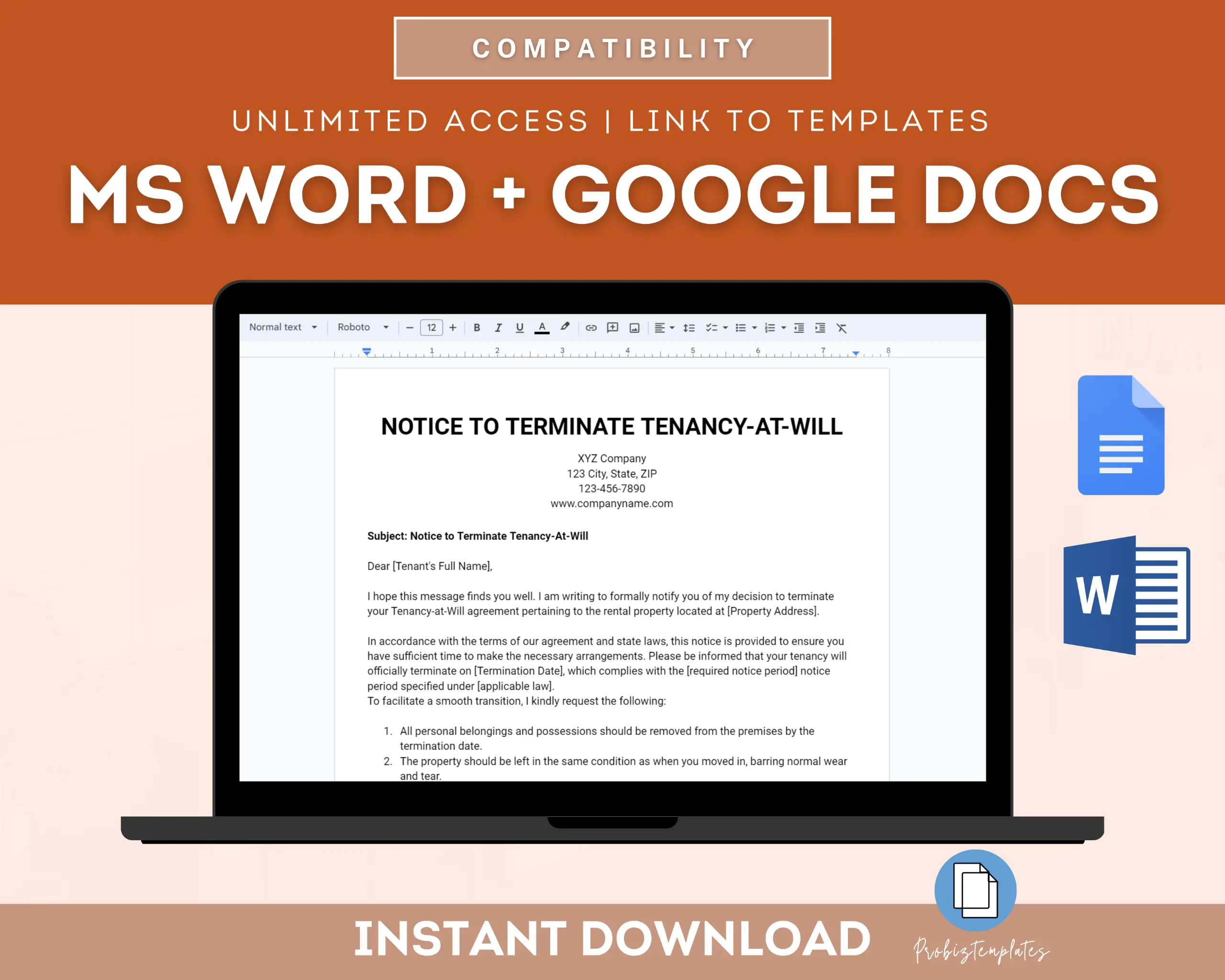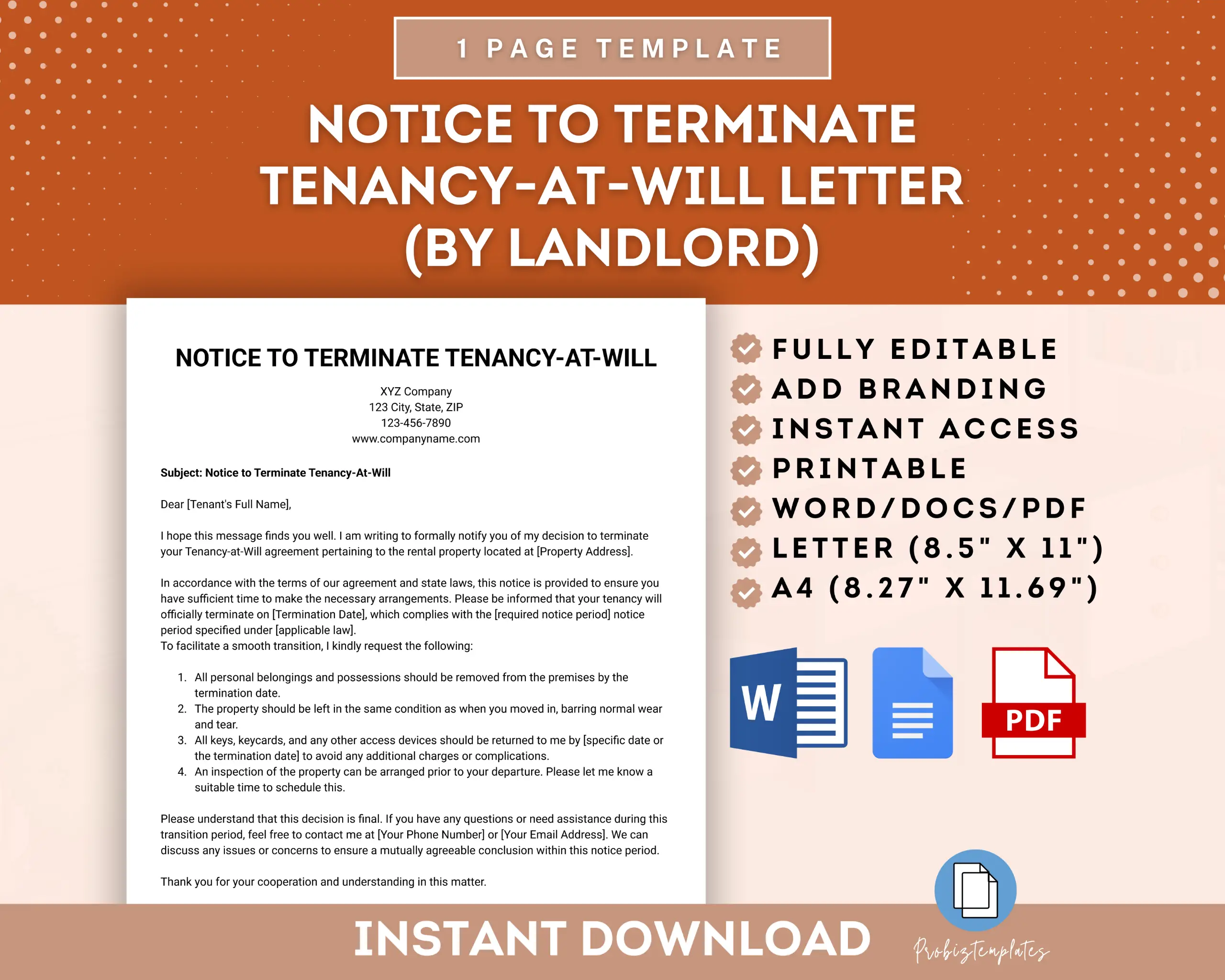 📄 Notice To Terminate Tenancy-At-Will Letter (By Landlord) Template