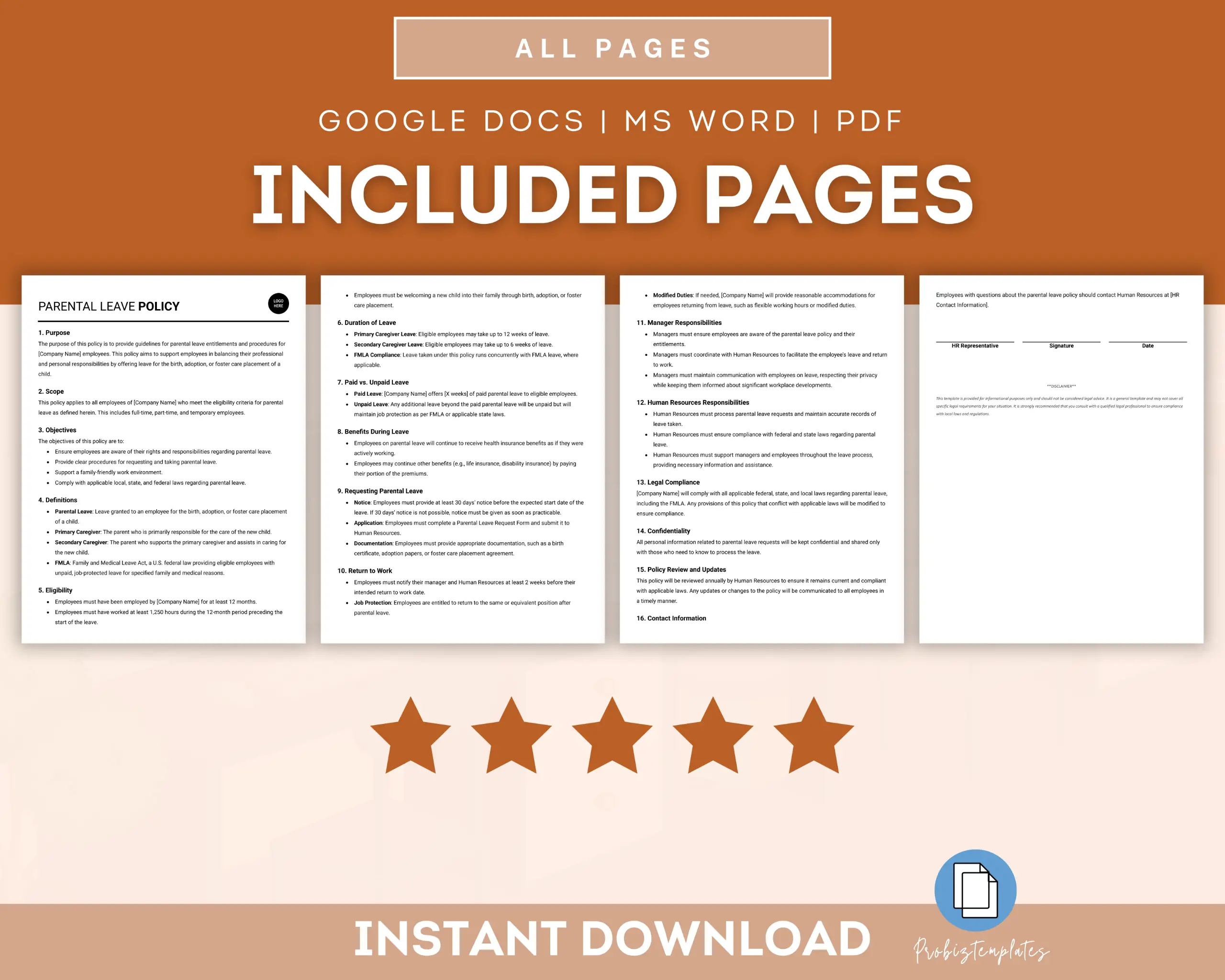 This policy provides a comprehensive framework for parental leave, detailing eligibility, duration, and application procedures. It ensures employees understand their entitlements and responsibilities during their leave period, supporting work-life balance.