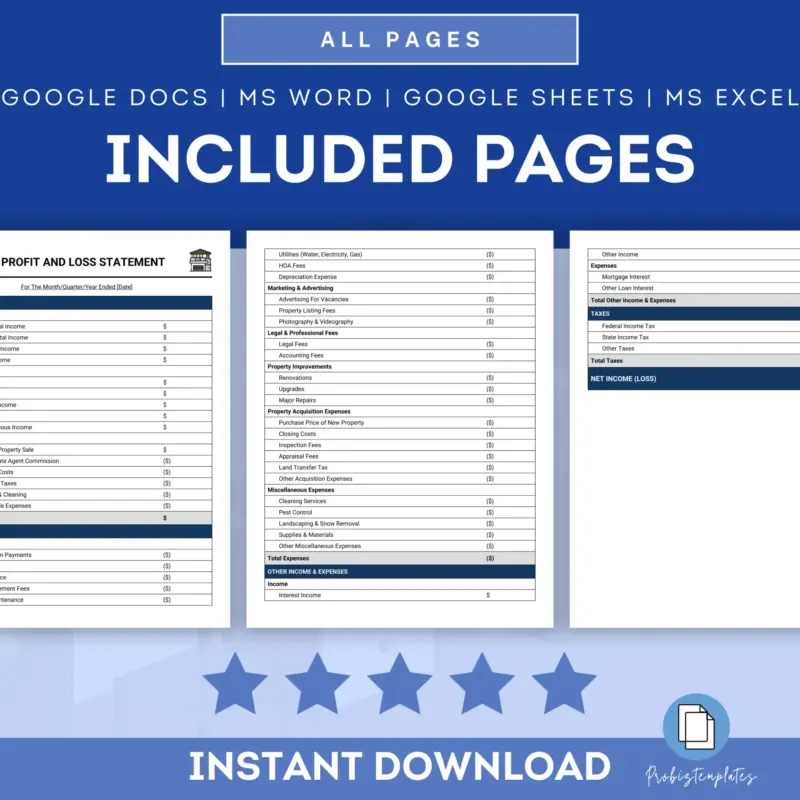 Rental Property Profit & Loss Template