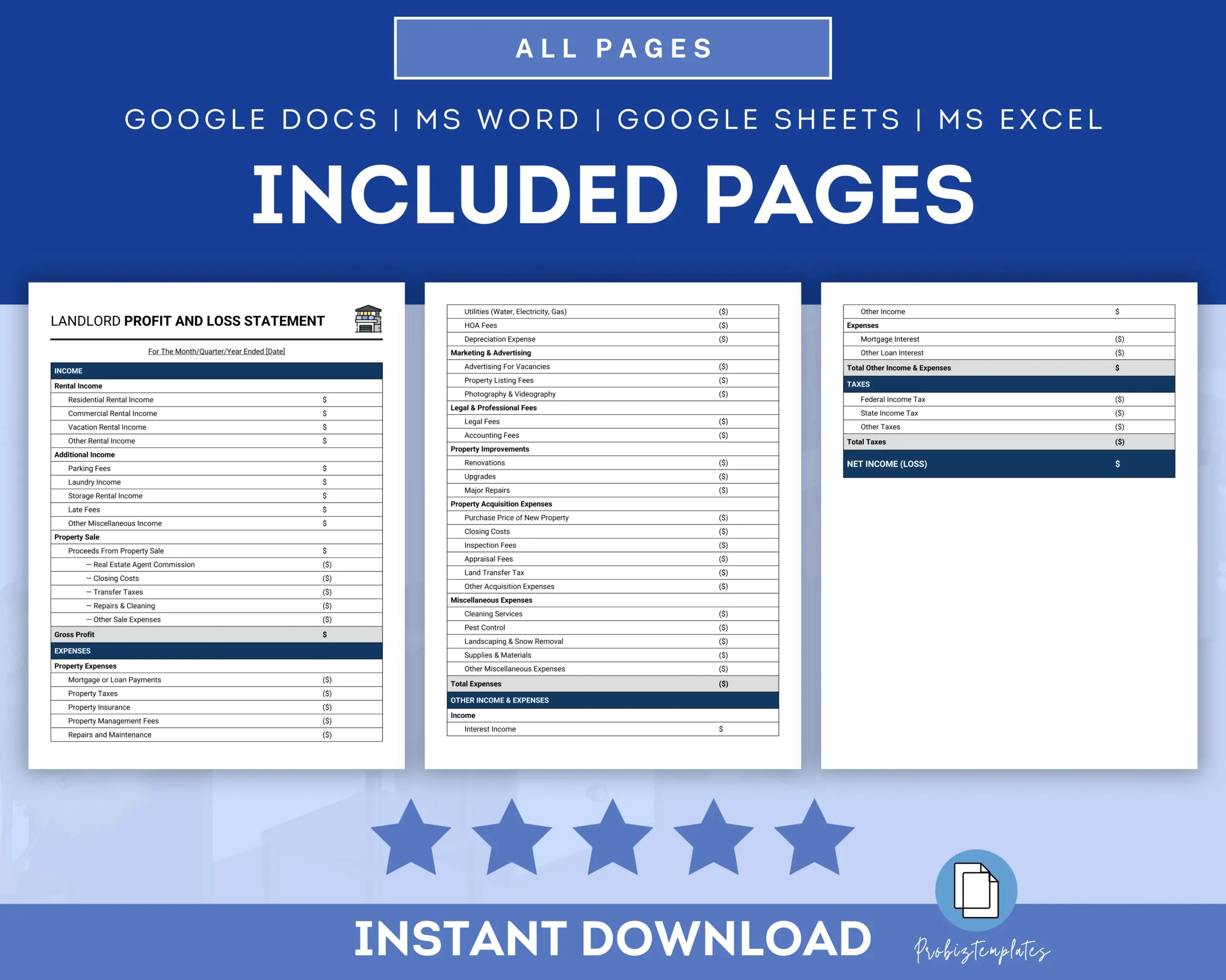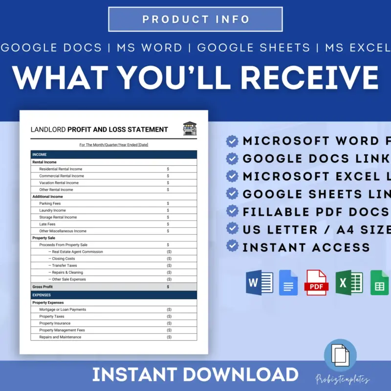 - Fully editable in Google Docs / Microsoft Word / Google Sheets / Microsoft Excel / Adobe Acrobat