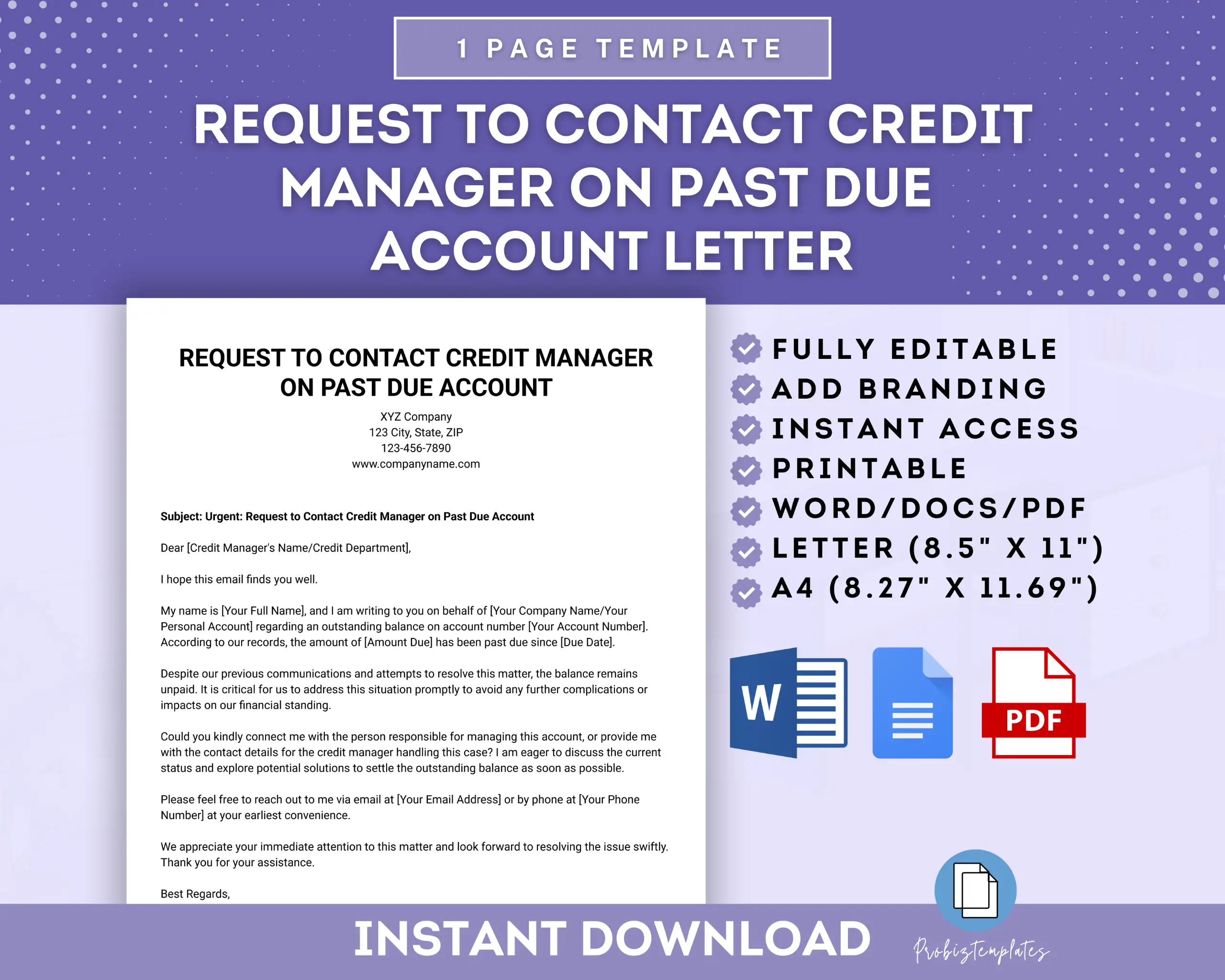 📄 Request To Contact Credit Manager On Past Due Account Letter Template