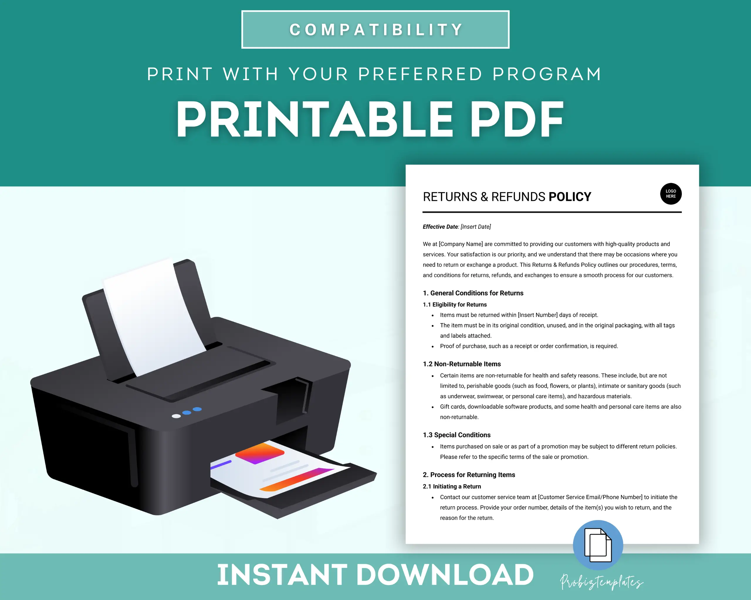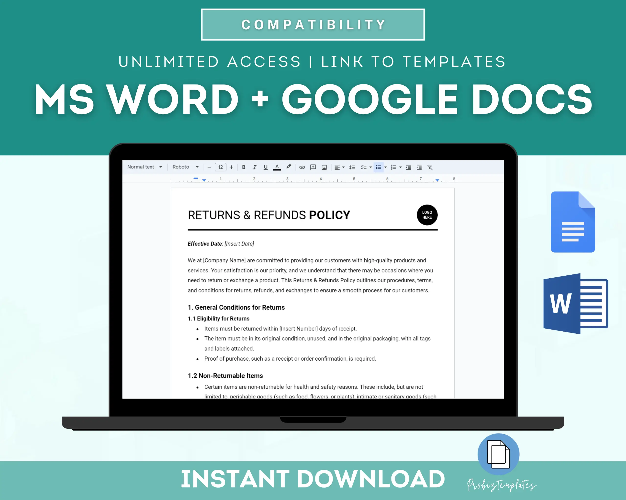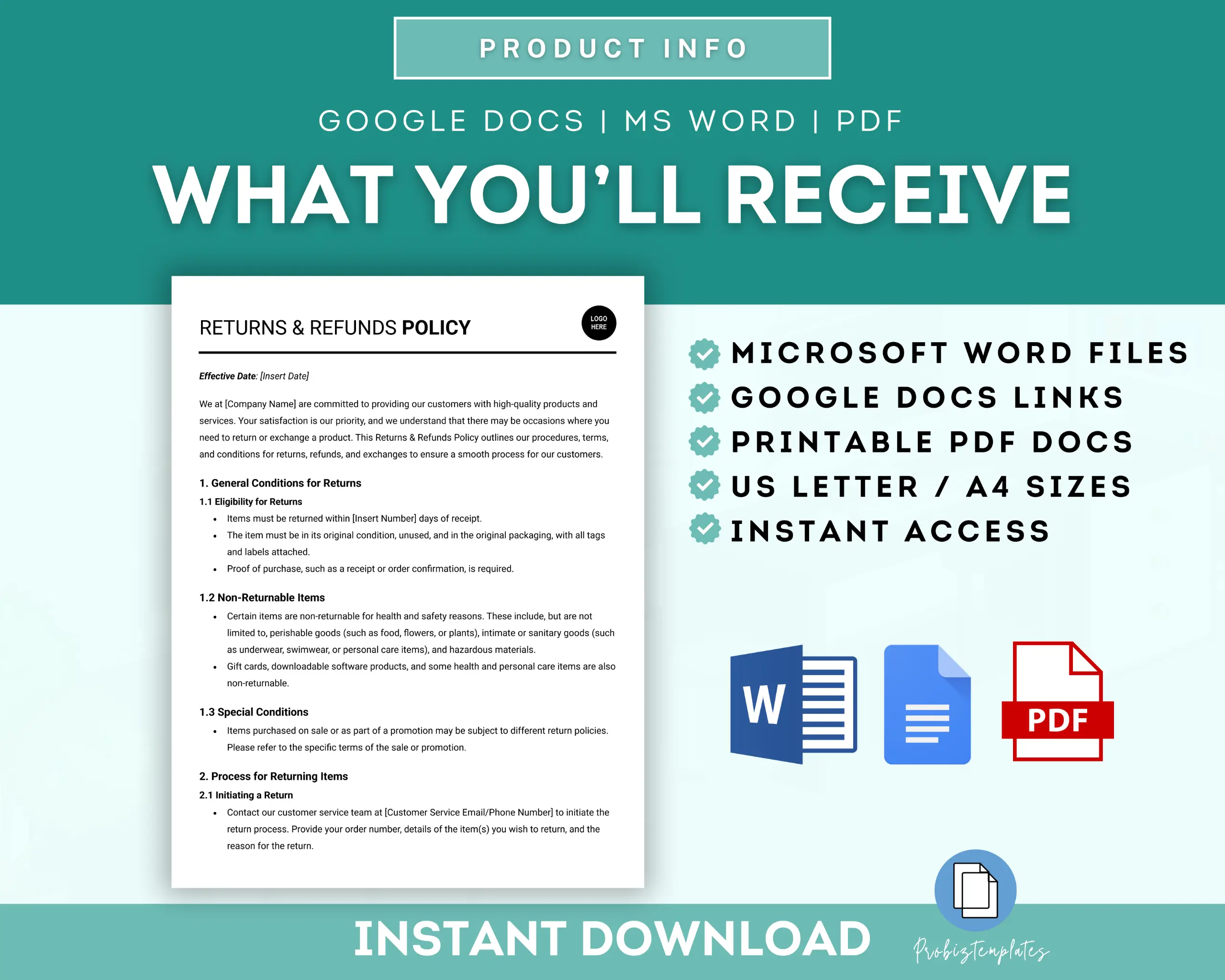 No returns, exchanges, or cancellations due to the digital nature of the product. Our templates are licensed for personal or organizational use only. You may NOT use them for commercial purposes, including resale, sharing, or distribution to others. The license is non-transferable and applies to the individual or organization that made the purchase.