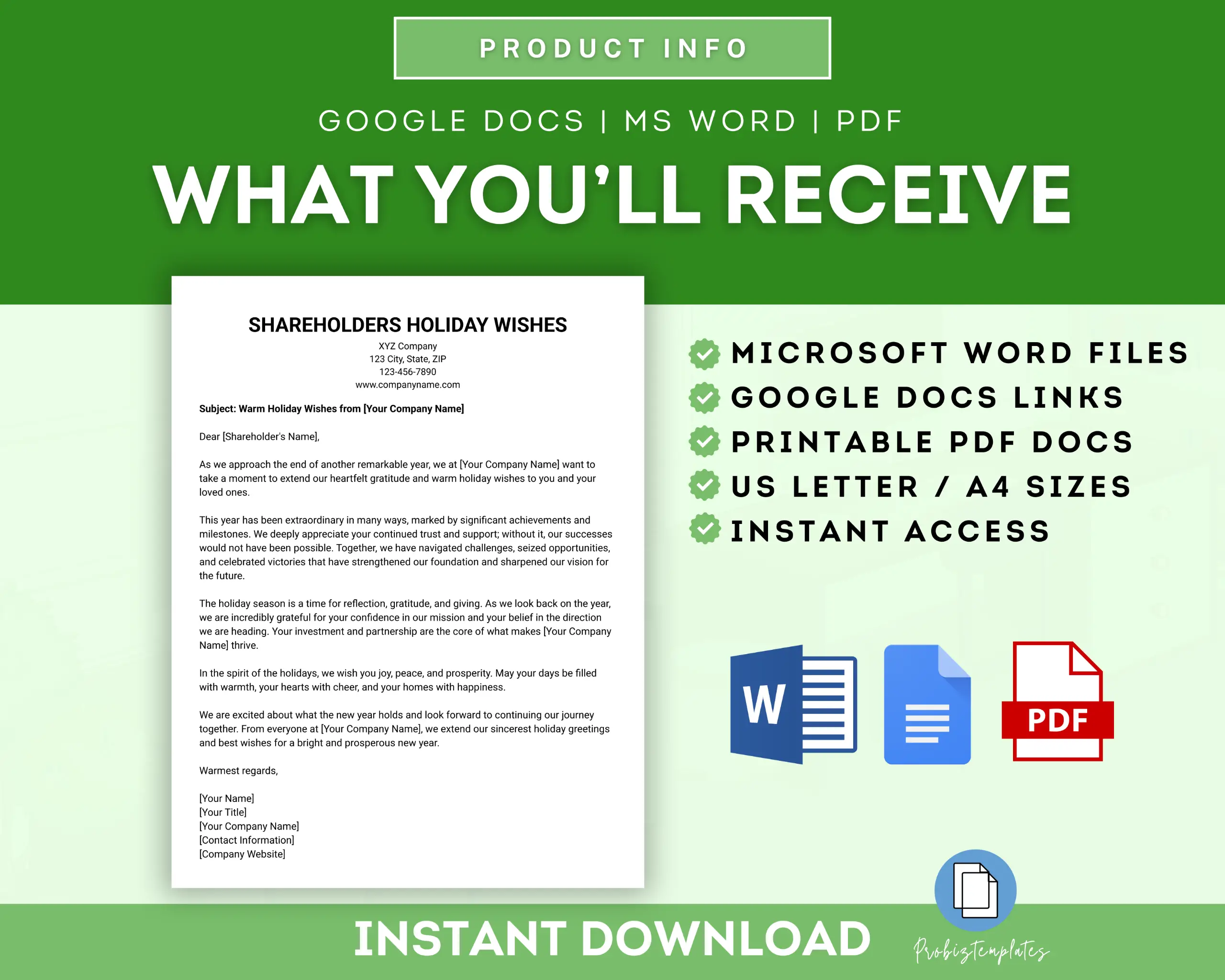 📄 Shareholders Holiday Wishes Letter Template