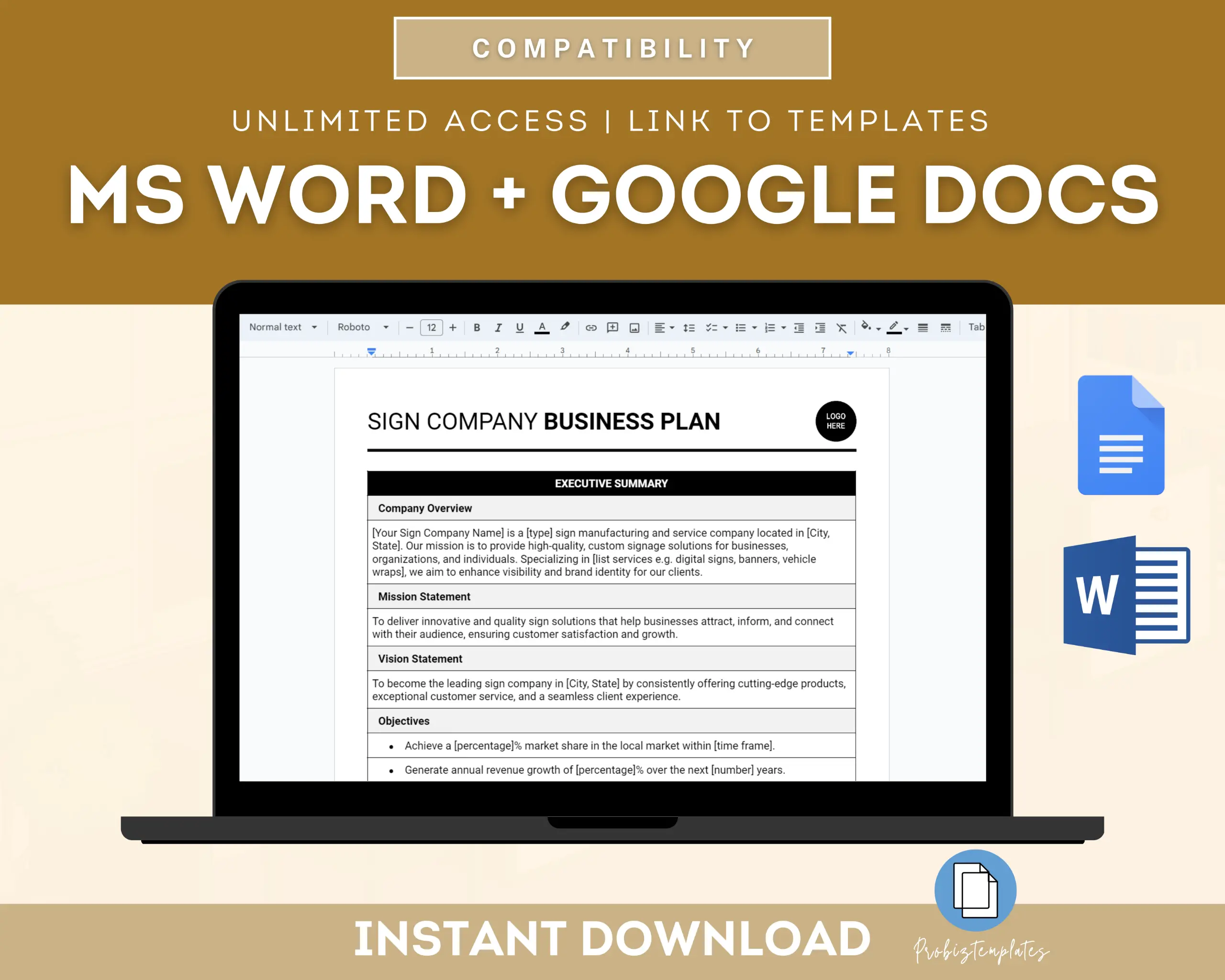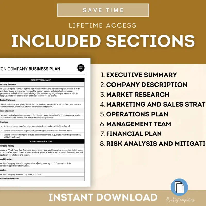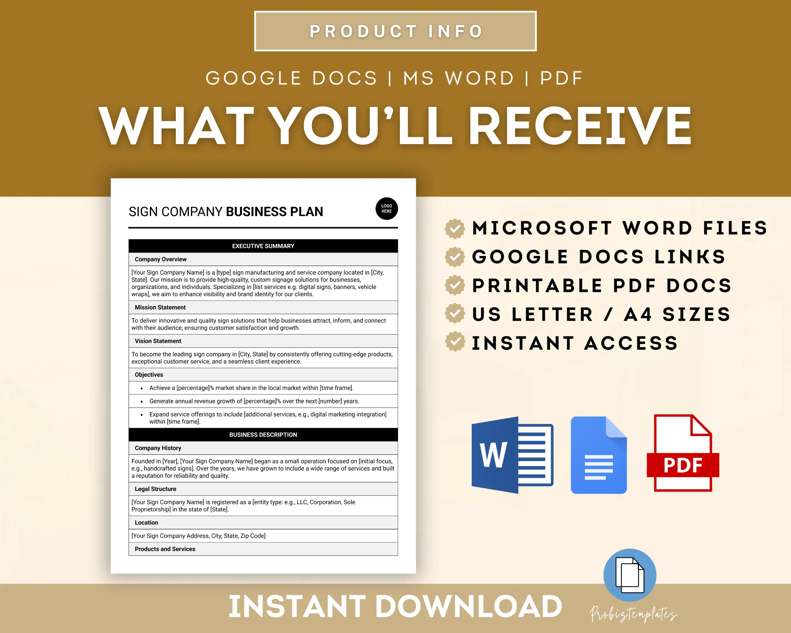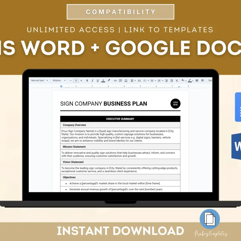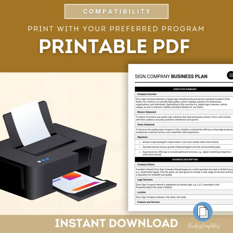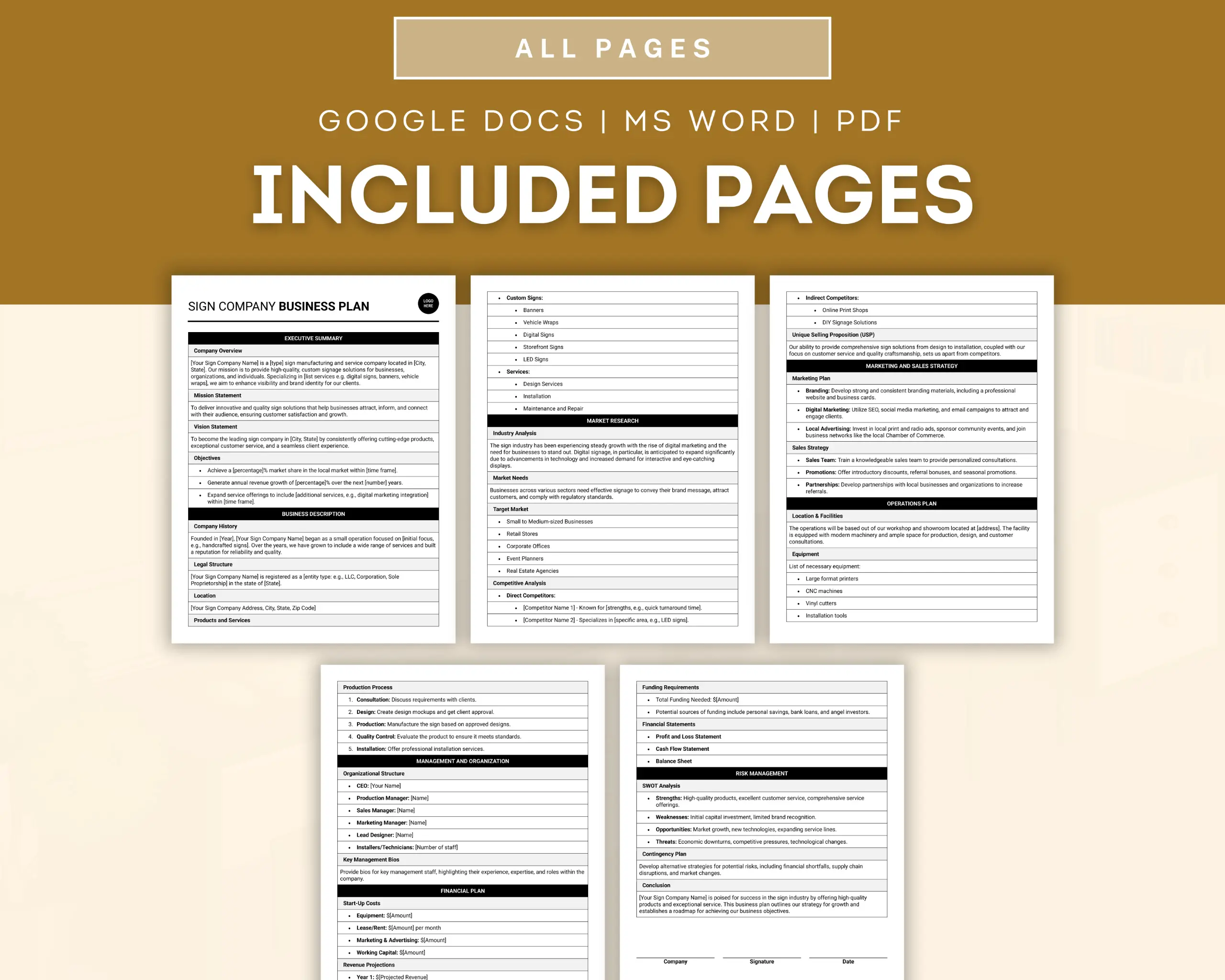 This Sign Company Business Plan provides a comprehensive framework for starting and growing a sign company. It includes sections for market analysis, financial planning, and operations, ideal for entrepreneurs in the signage industry.