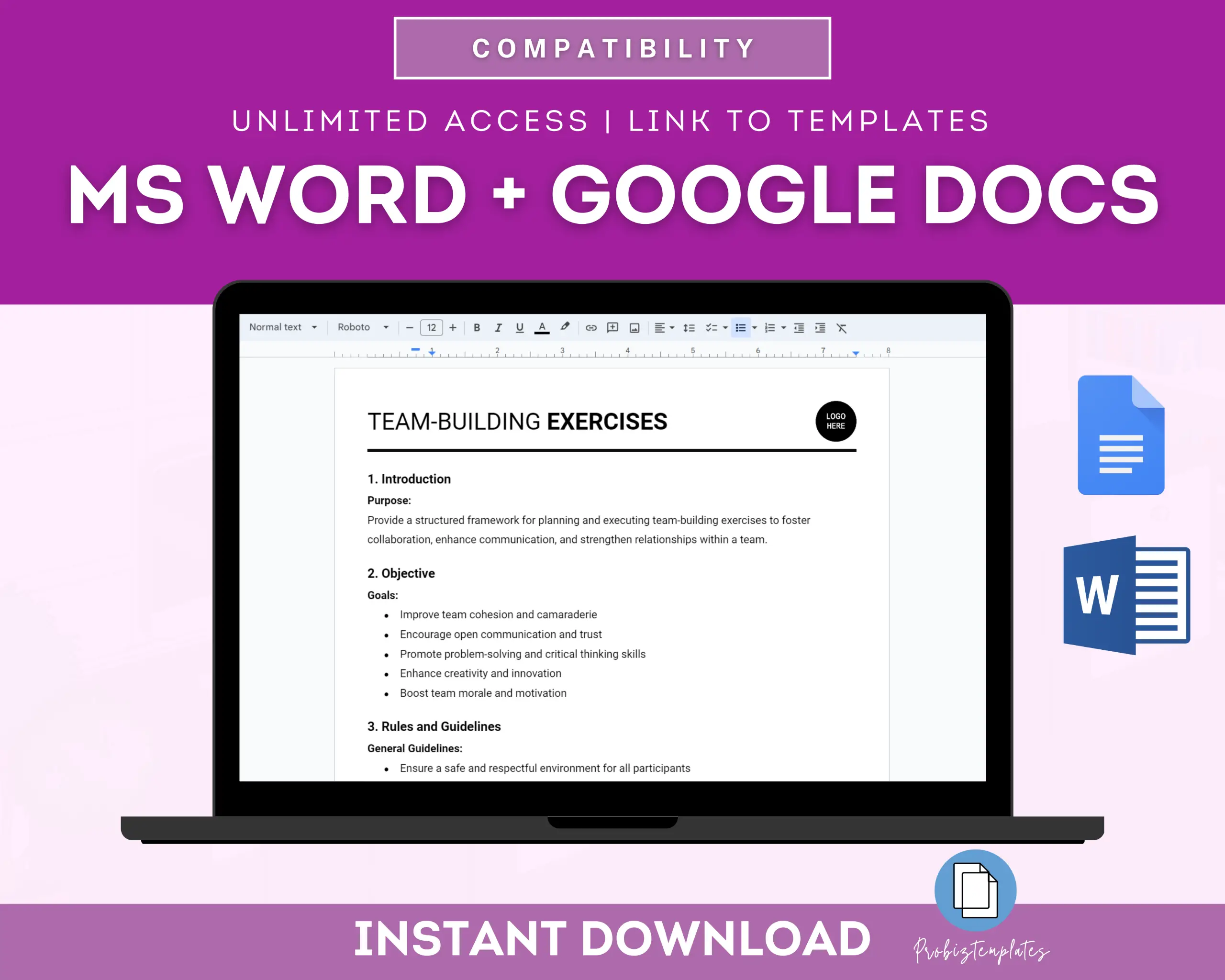 - Fully editable in Google Docs OR Microsoft Word