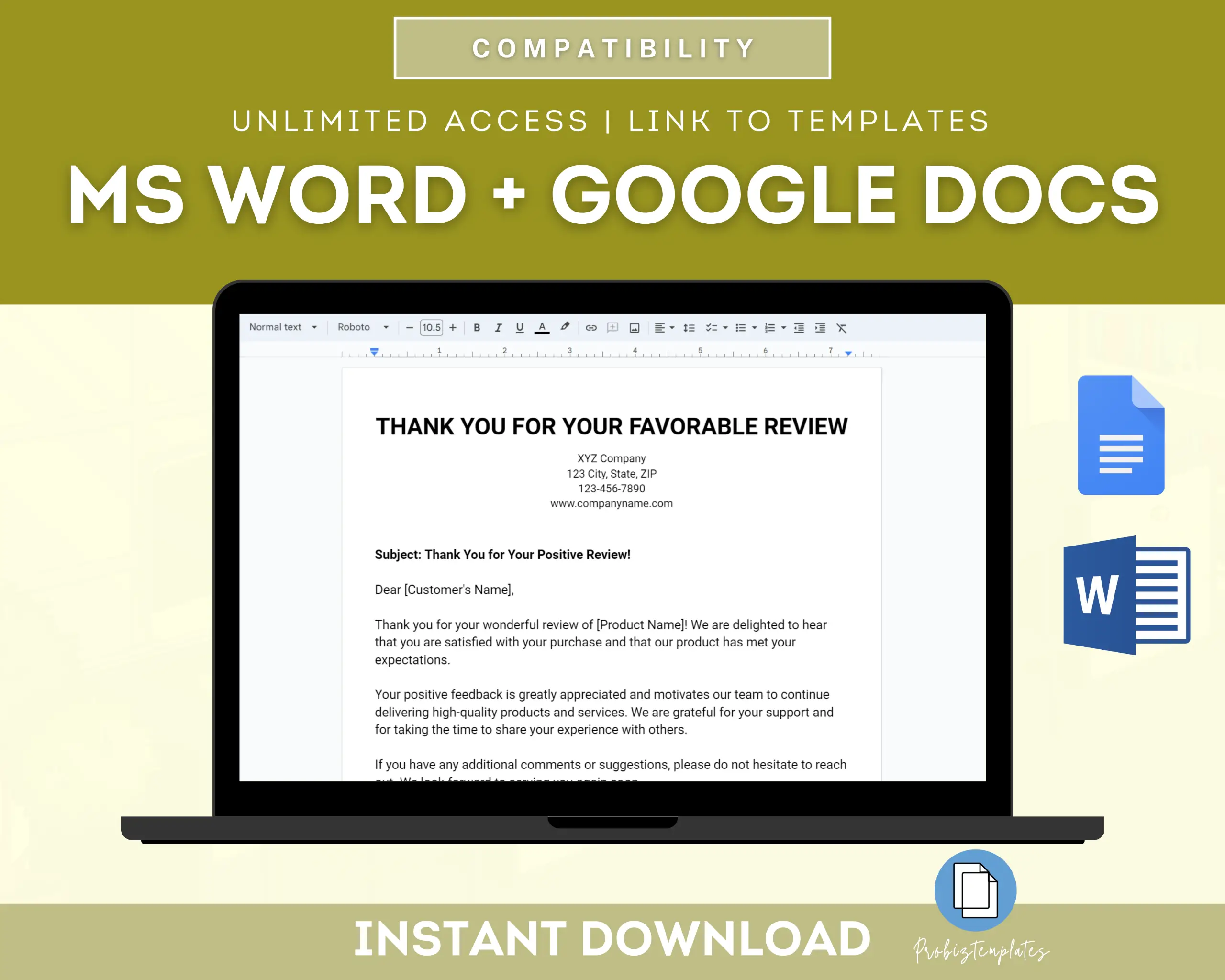 This Thank You For Your Favorable Review Letter expresses gratitude for a positive customer review. It acknowledges their satisfaction and thanks them for their kind words, helping to strengthen customer loyalty and encourage more positive feedback.