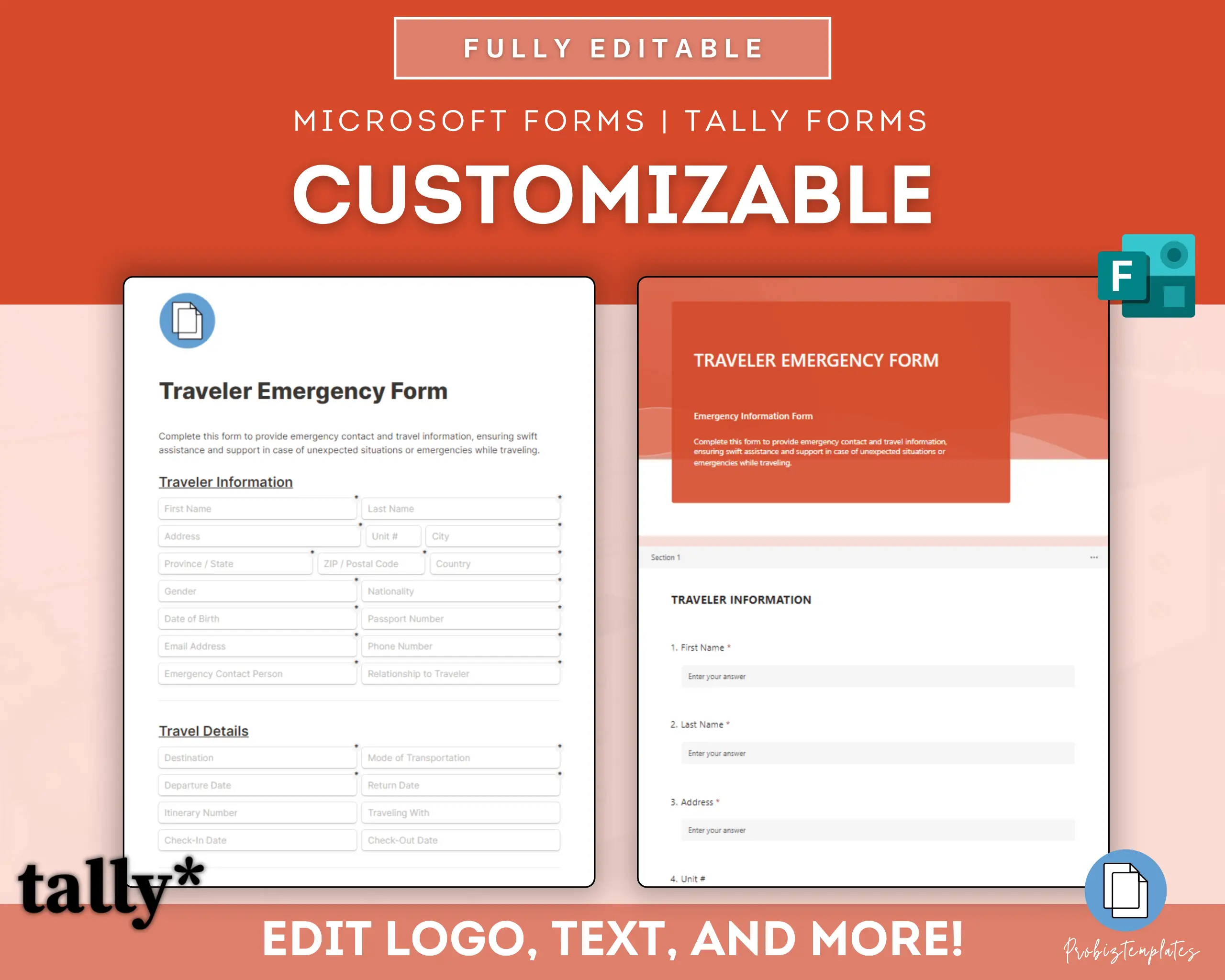 - Fully editable in Microsoft Forms OR Tally Forms