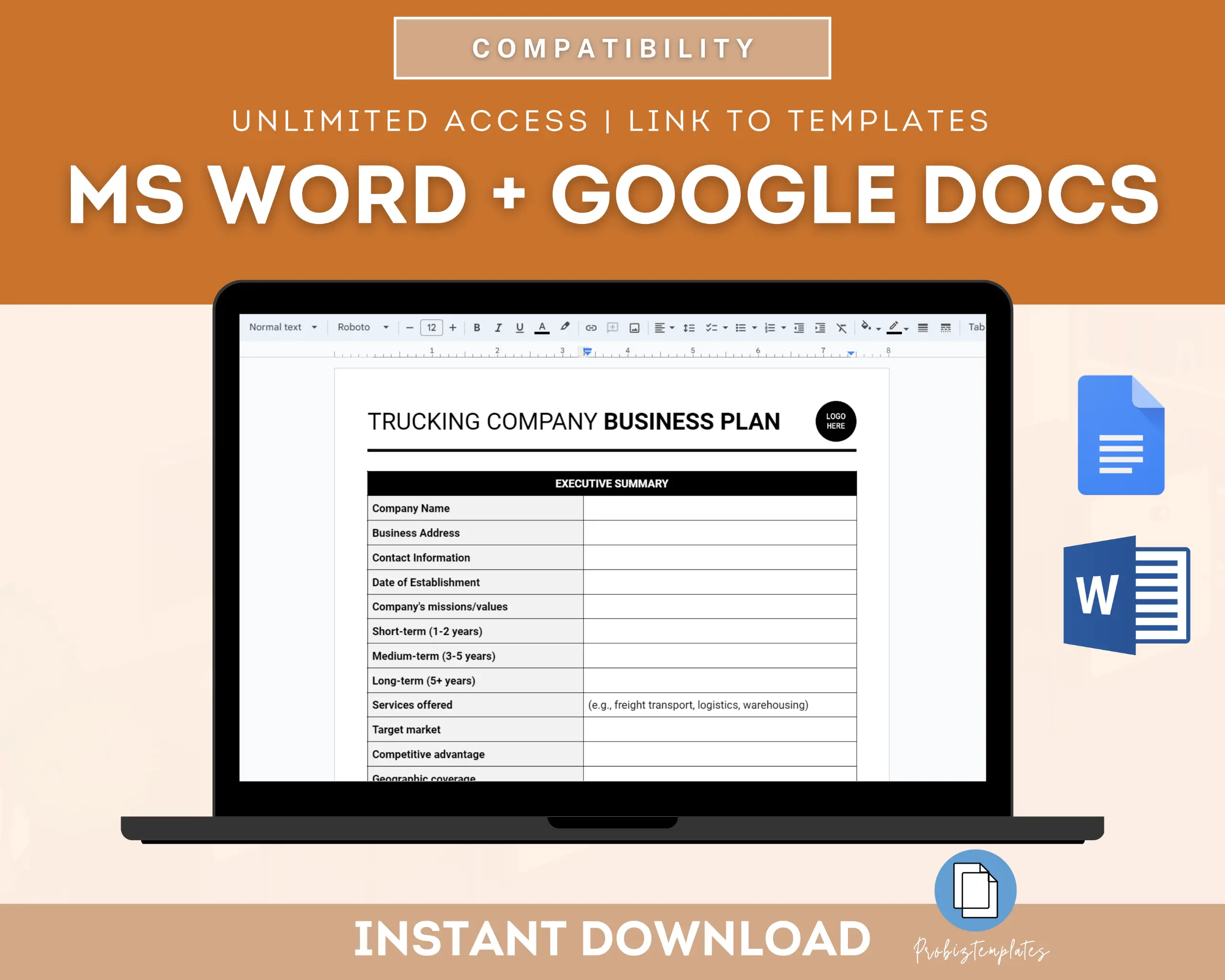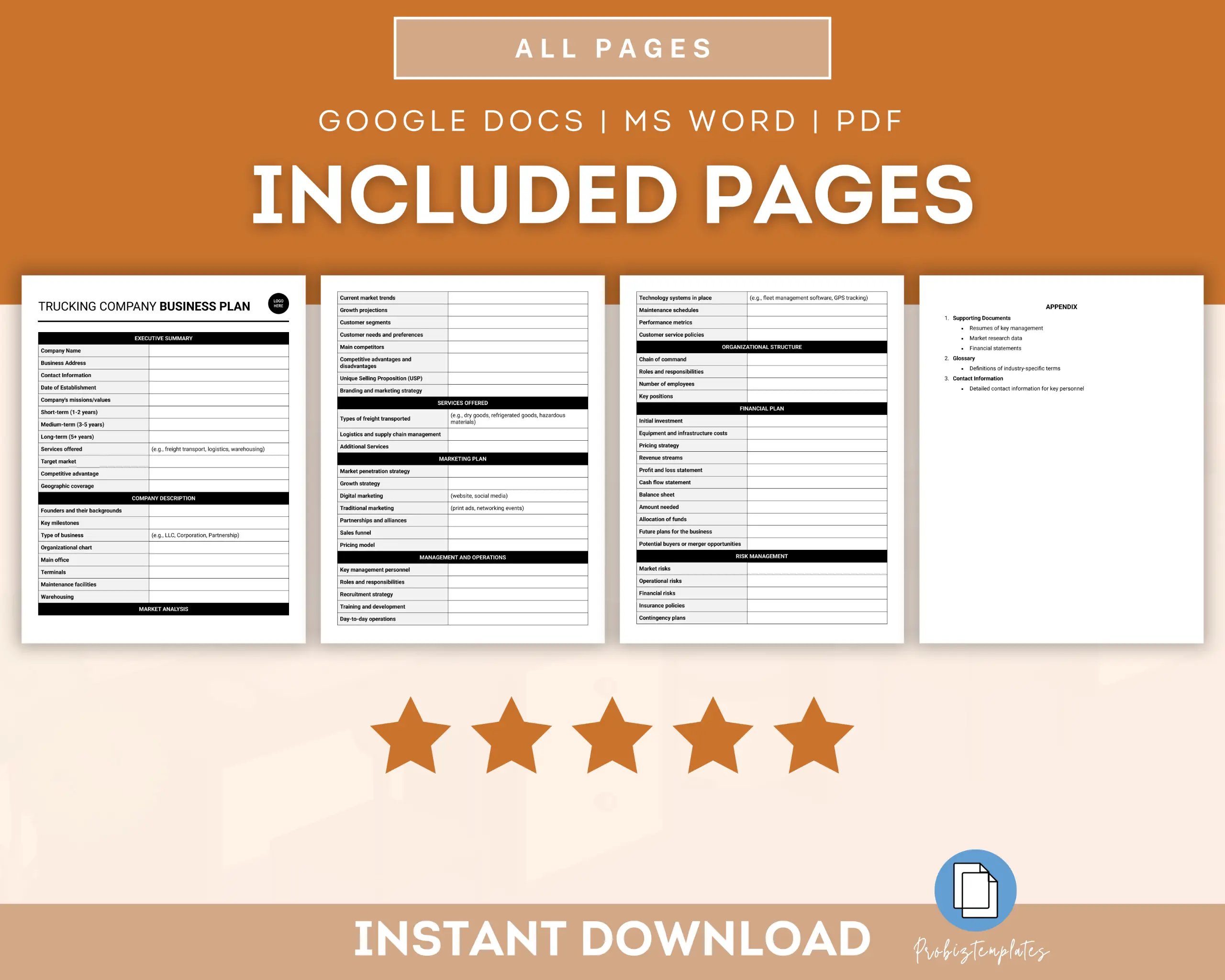 📄 Trucking Company Business Plan Template