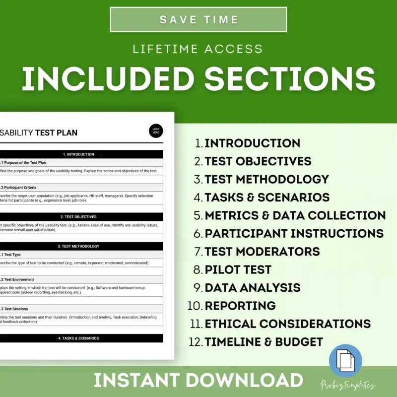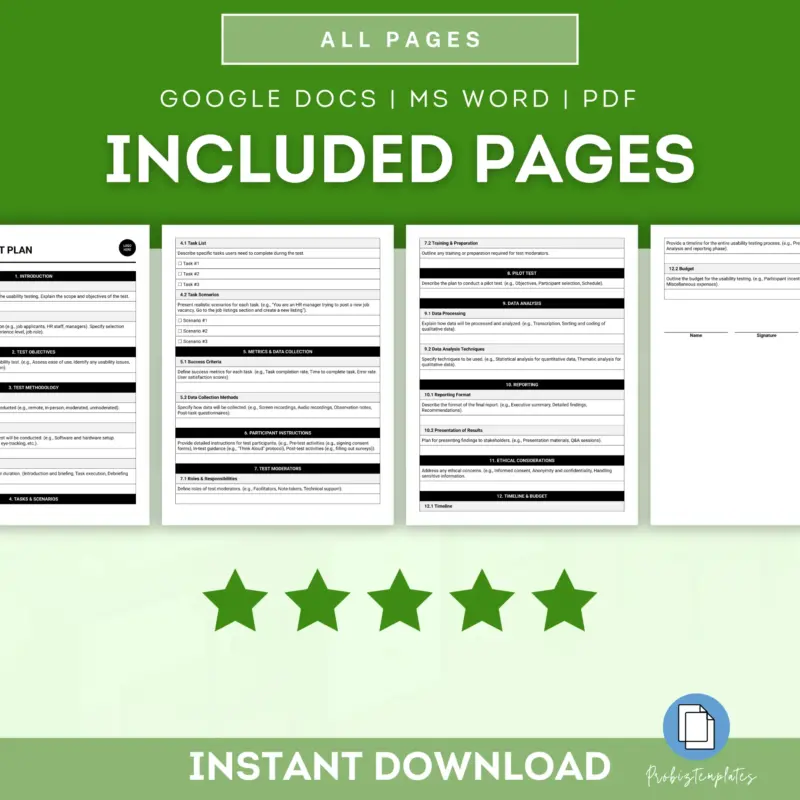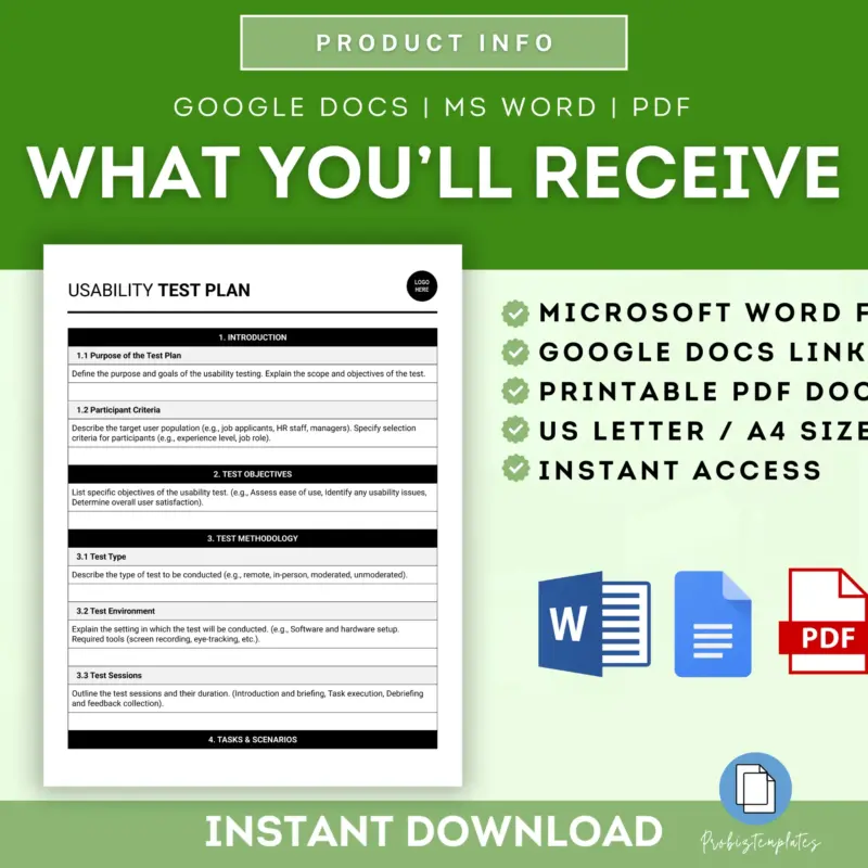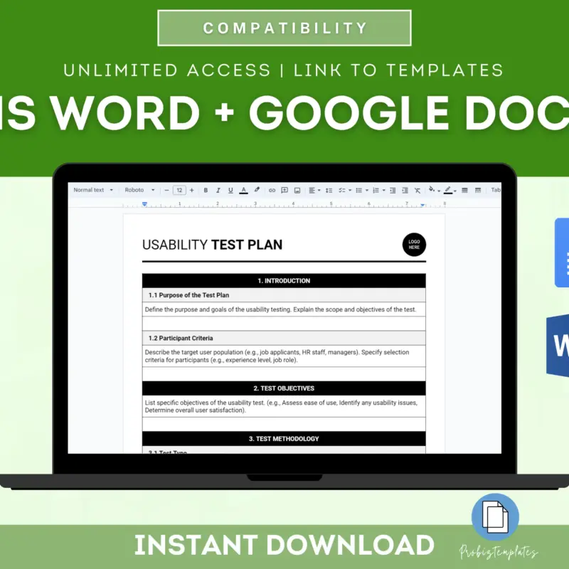 This Usability Test Plan provides a structured approach to evaluating the user experience of your product, website, and more. It includes testing methods, participant selection, and evaluation criteria. Essential for improving usability and user satisfaction.
