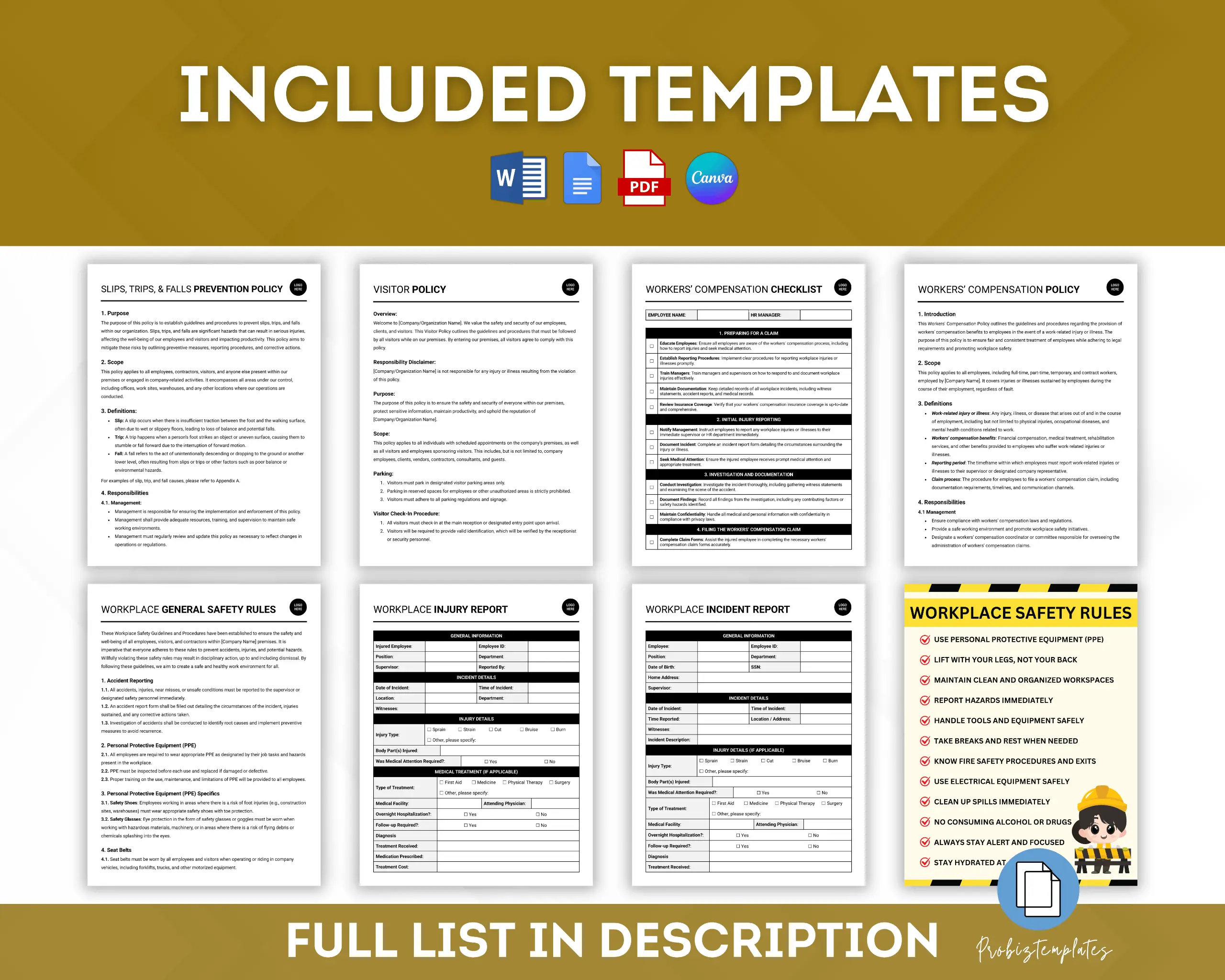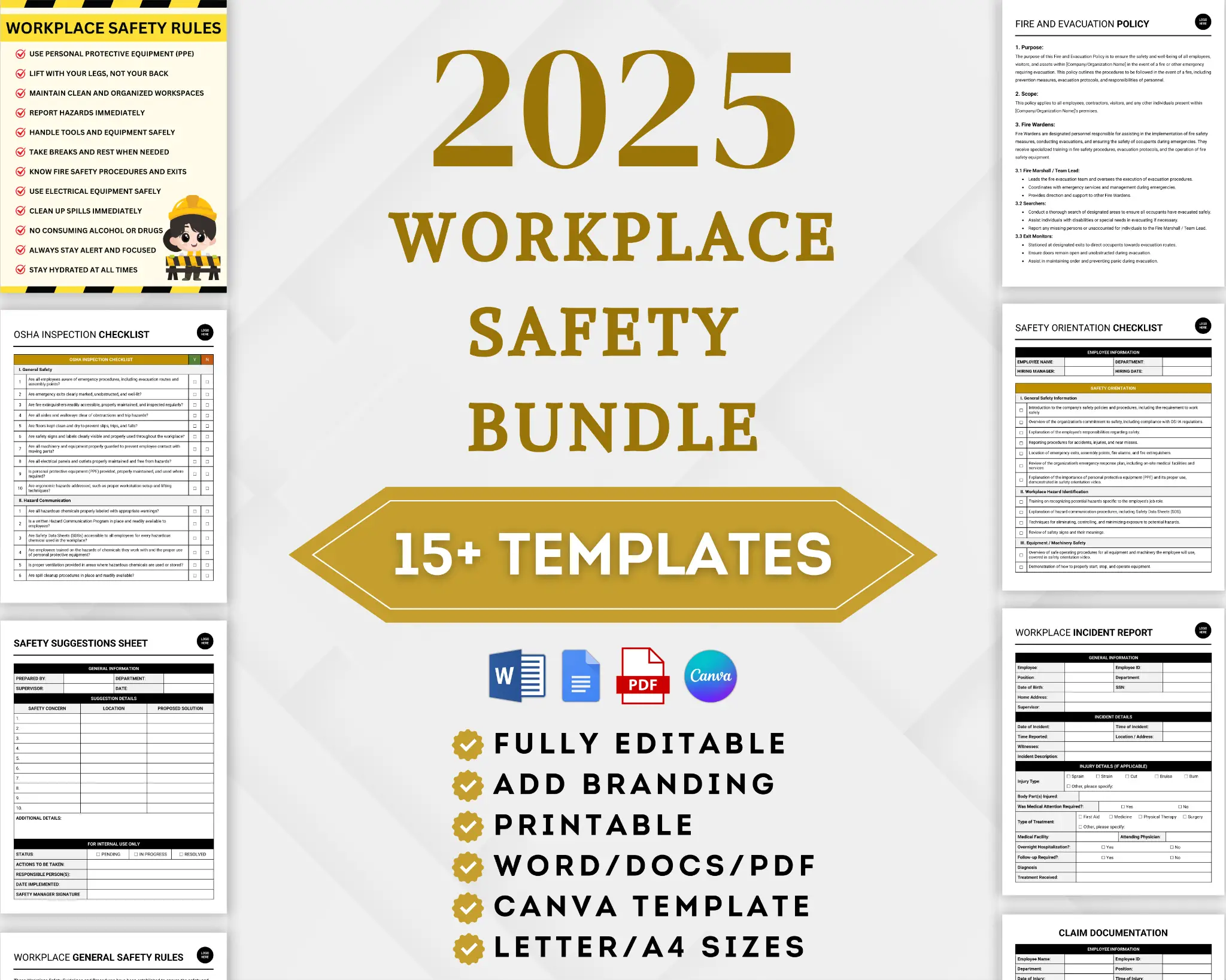 This Workplace Safety Bundle equips you with the essential resources to maintain a secure work environment. From safety checklists to policies, this bundle helps fosters safety awareness among employees. Prioritize workplace safety effortlessly with this comprehensive bundle.